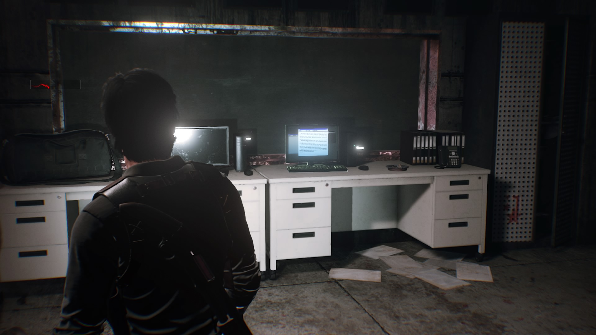 - File #32: An important Anima Event can be found opposite the locked-down red door. Use a Shock Bolt on the broken electrical panel in the first floor of the lab. That opens up to a long hallway with an office at the end. Grab the file to initiate another frightening sequence.