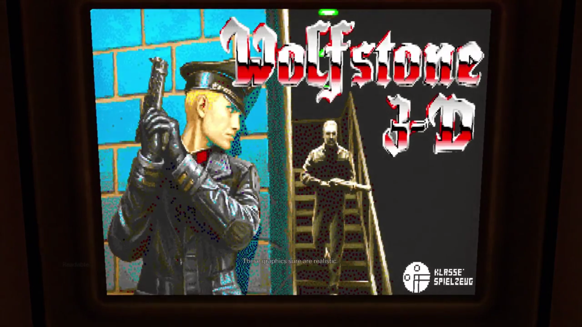 Because the Nazis now rule, this is the alternate universe version of Wolf 3D, produced quite a few years before that game — but then again, this is a universe with giant robots and reanimated dogs, so maybe video game technology took a huge leap forward.