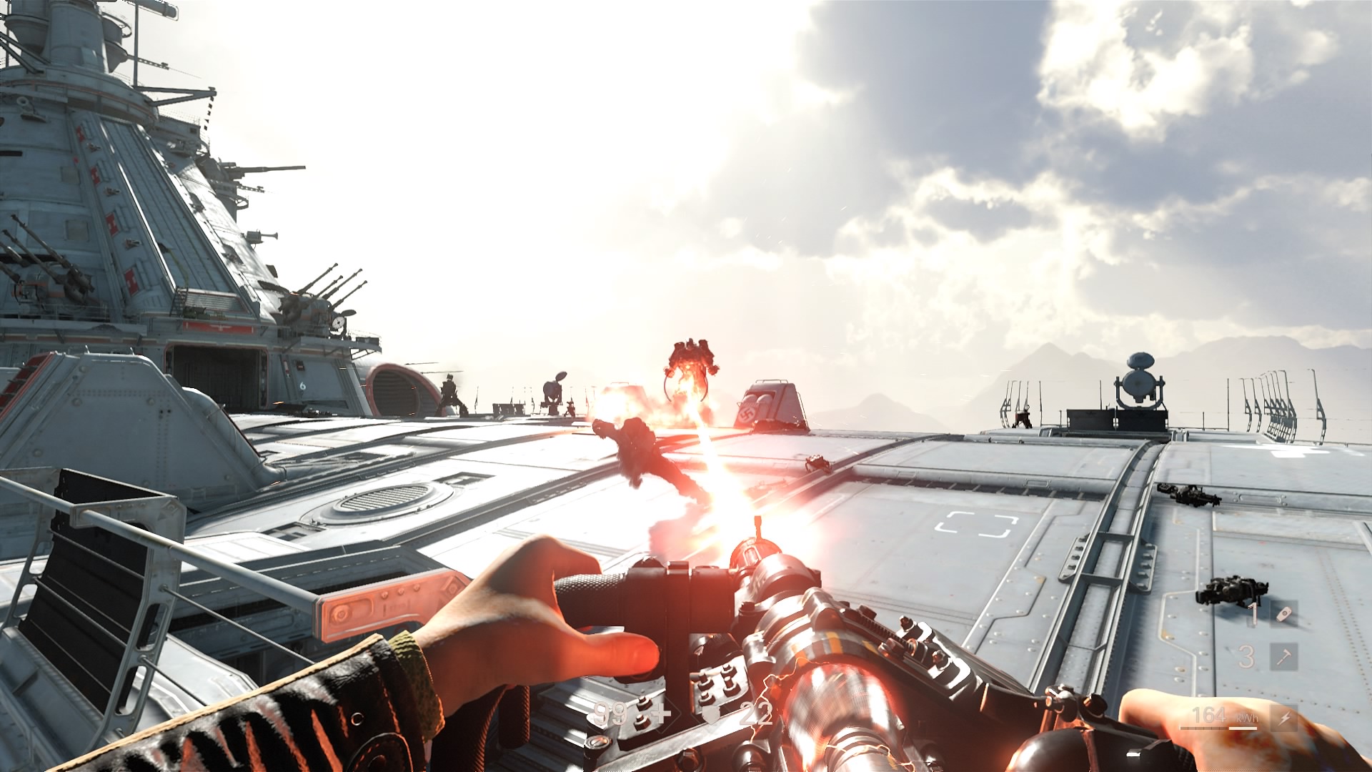The Zerstörer protects the upper-deck of the Ausmerzer. As if one wasn’t bad enough, you’ll have to deal with two at the same time. Each boss robot is armed with a pair of Ubergewehrs. An endless stream of soldiers will spawn into the area, so you’ll need to stay on your toes.