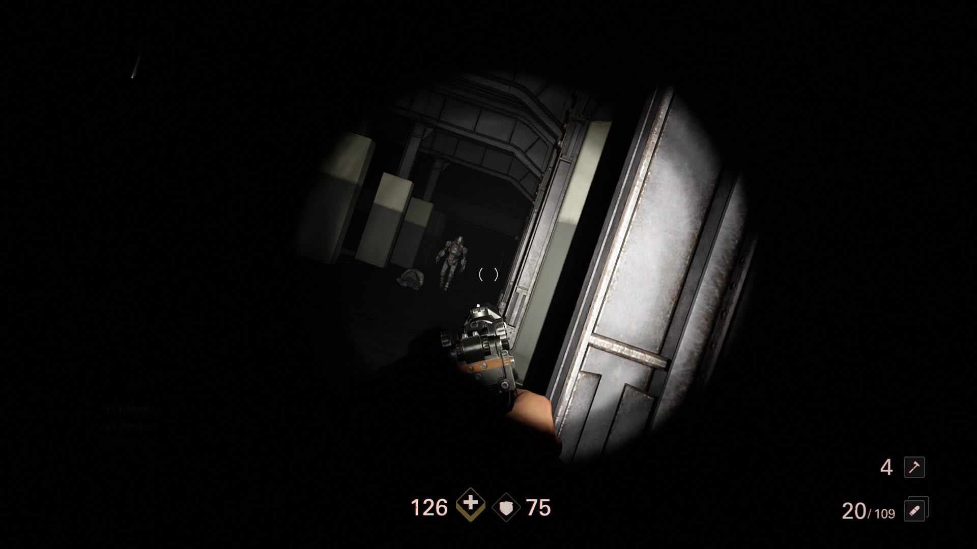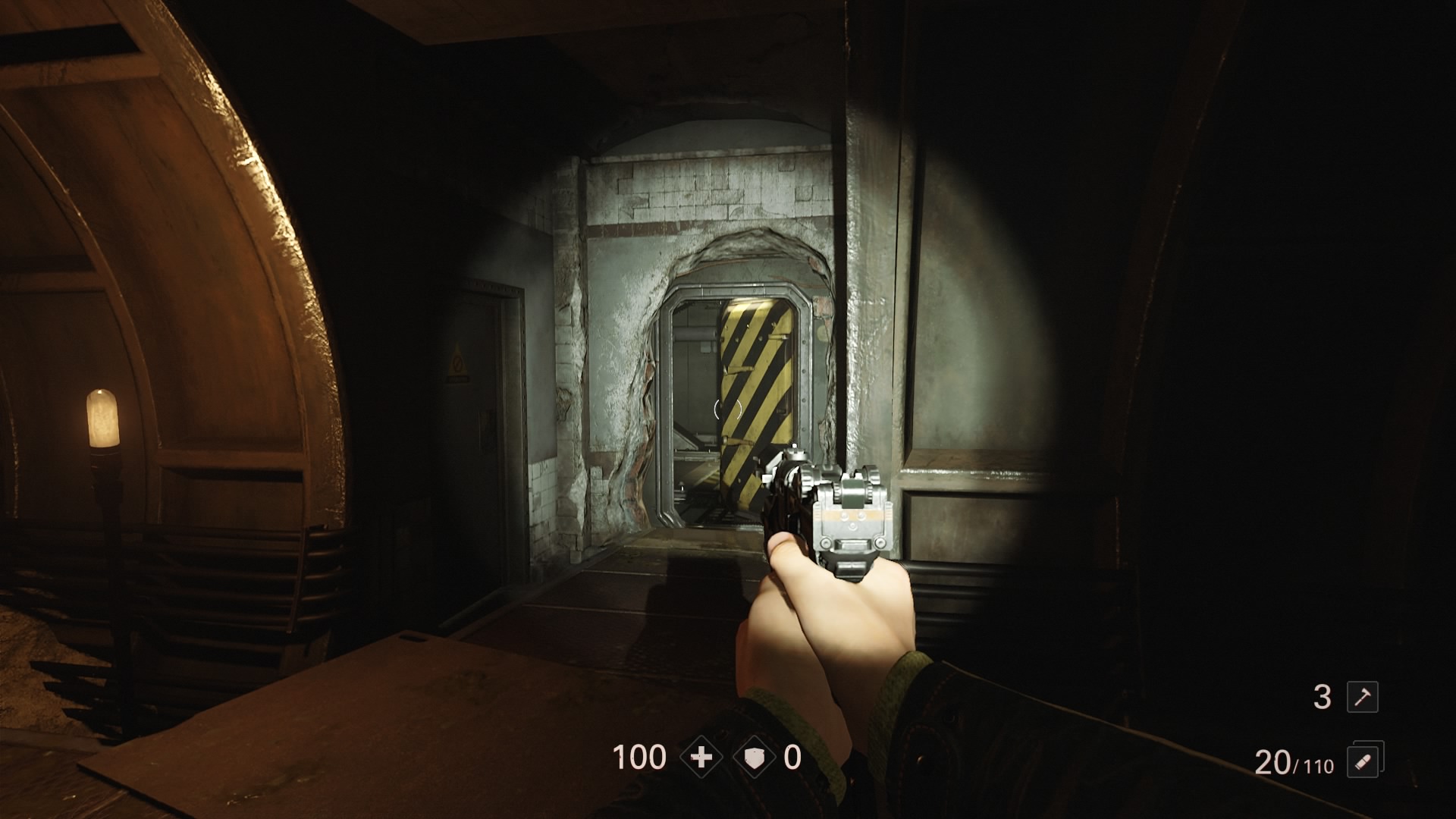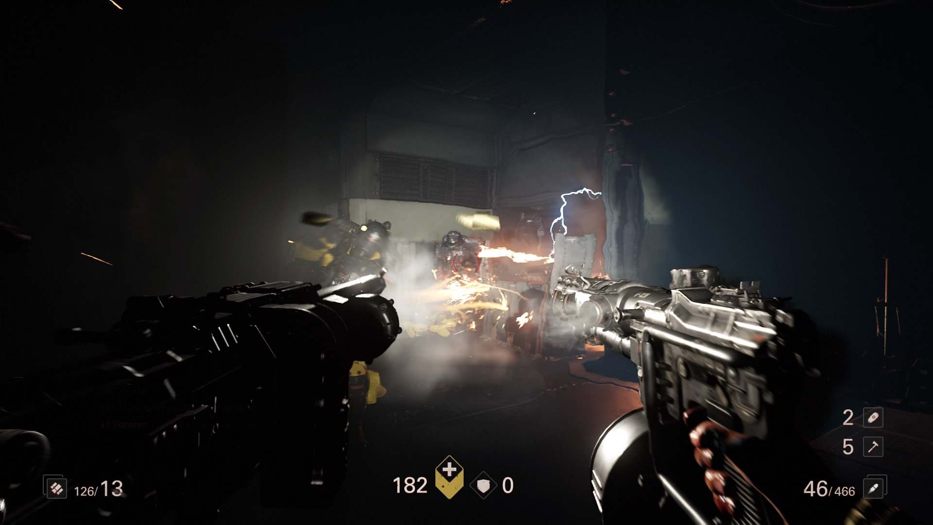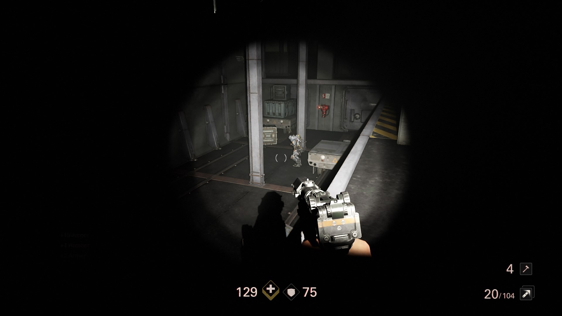 The bunker is also completely dark. You’ll only have your flashlight to illuminate the area, making this one of the creepier levels, especially when it isn’t clear what direction you’re supposed to go. When in doubt, keep going down. There’s a huge army of drones and robo-dogs the further you go, finally culminating in a massive empty room that’s full of soldiers behind a pair of mounted guns.