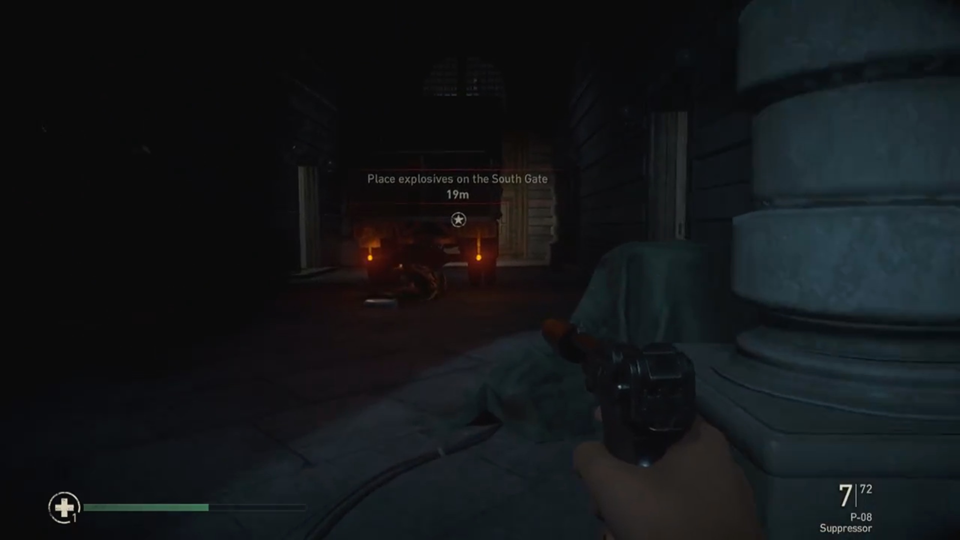 Once you reach the South Gate entrance, use your silencer equipped gun and take out the single guard in front of the truck, preventing you from reaching the gate.