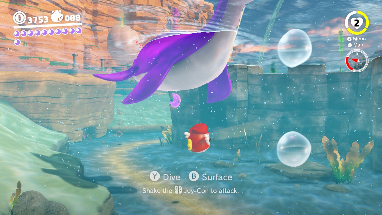 What’s a seaside resort without a gift shop? The ocean-based shopping centers move all around the Seaside Kingdom in Super Mario Odyssey, and you’ll have to track them down to purchase new outfits, souvenirs, extra hearts or a bonus Power Moon. Thankfully, it’s easy to get around thanks to some jet-stream shooting enemies in bubbles of water that like hanging out near the shore.