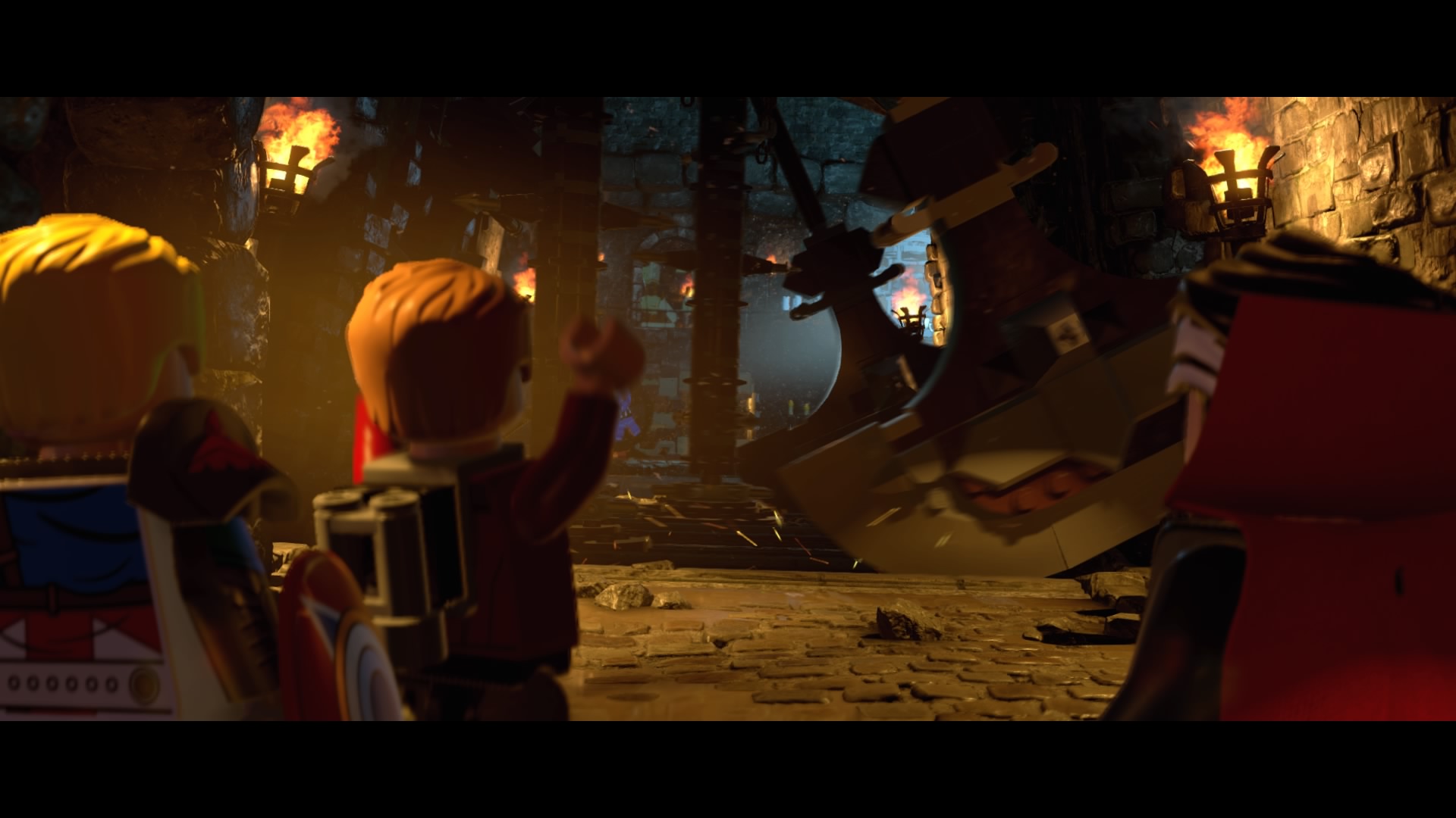 When the gate is open, Enchantress will appear with an army of skeletons! Defeat them (Groot is pretty good at that) then approach her. Inside the hall, after she escapes, smash all the LEGO objects and build a battering ram for Groot to use. That doesn’t work when a giant spiked ball ruins the way inside, but it does reveal a path below the bridge, on the right.