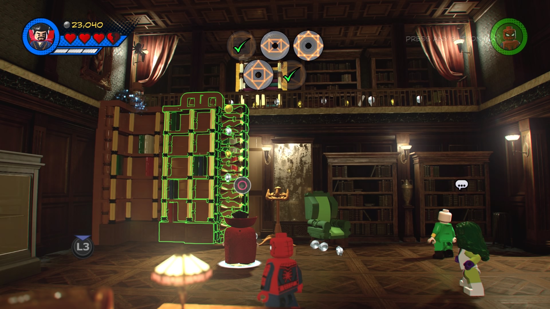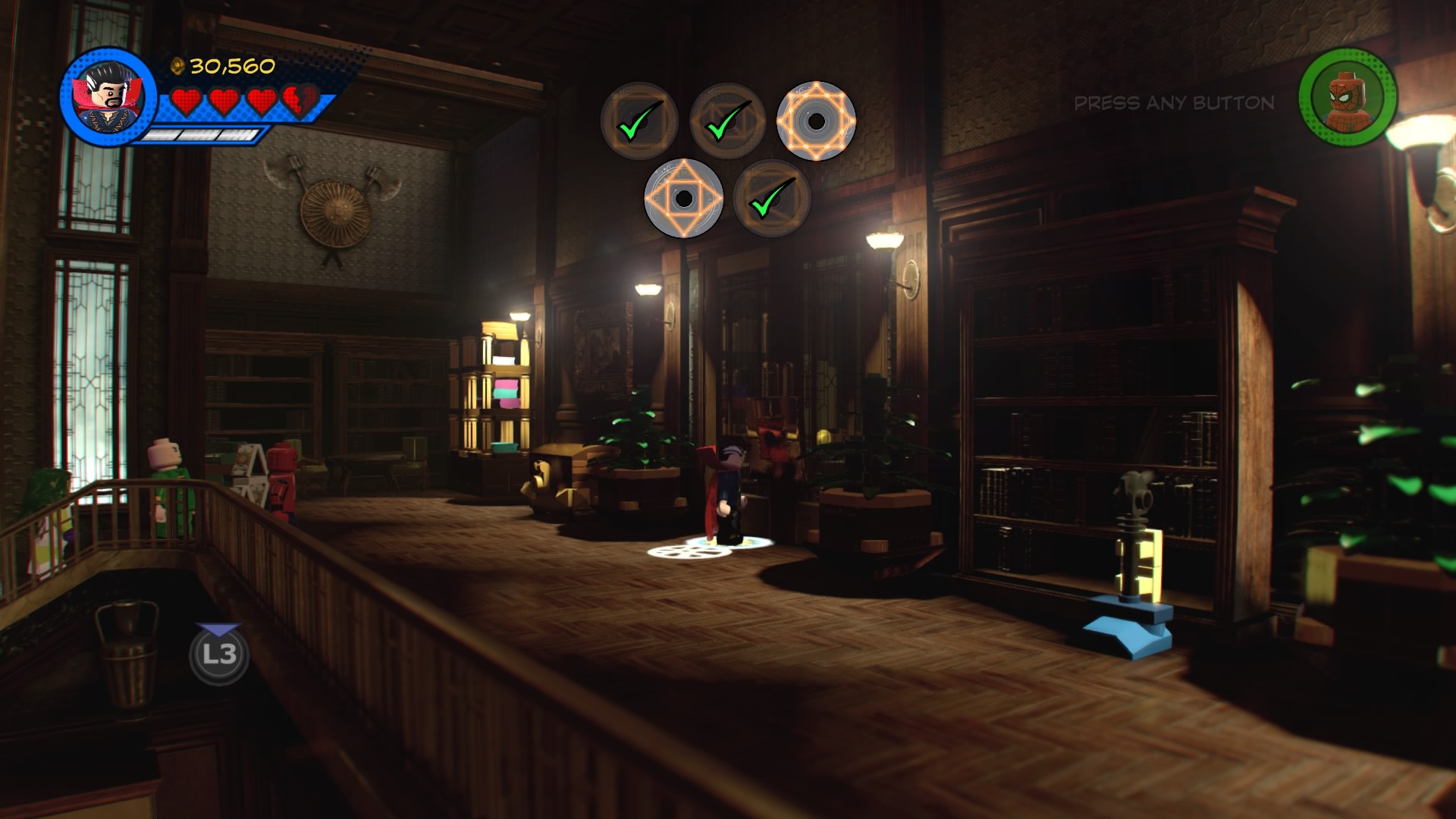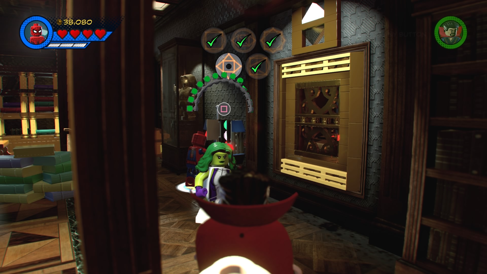 Doctor Strange, Spider-Man, She-Hulk and Wong arrive at the Sanctum Sanctorum to locate a special book Doc Strange needs for the Avengers’ next harebrained scheme. To find it, you’ll need to locate five rune sigils. They’re all over the mansion, so let’s start locating them.