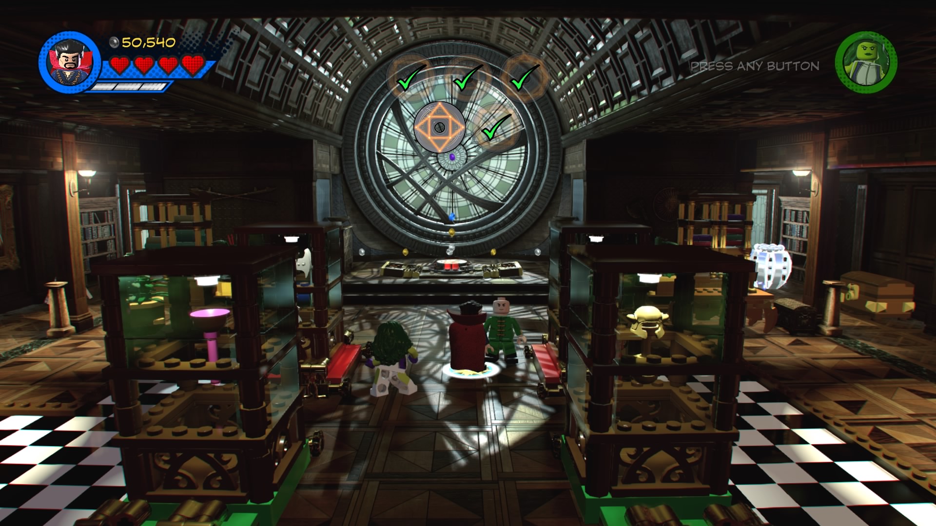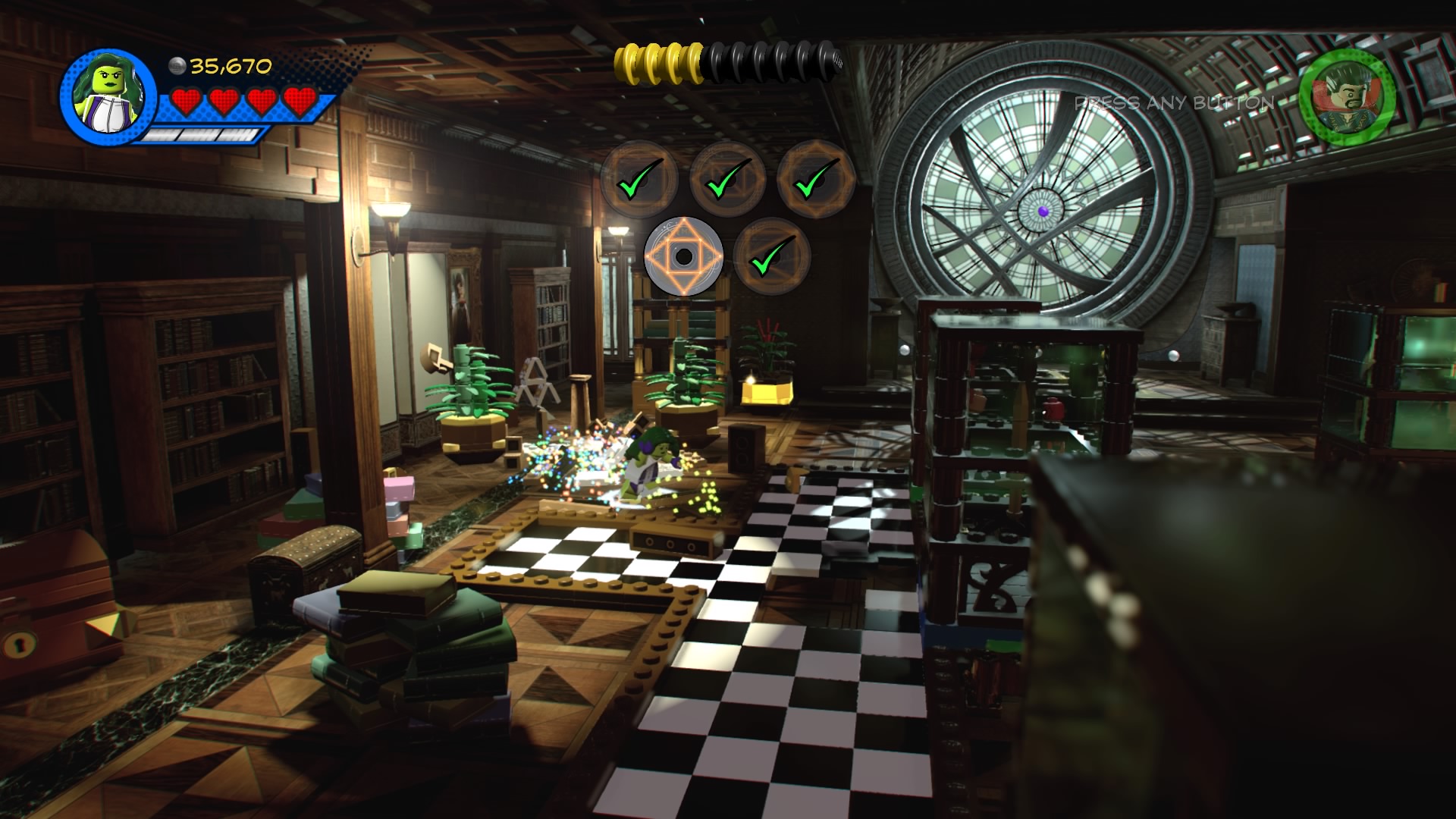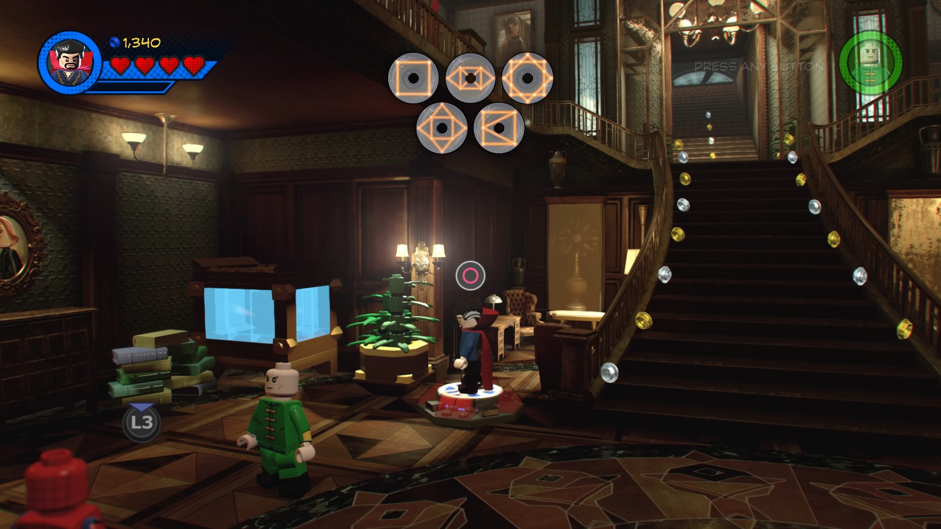Doctor Strange, Spider-Man, She-Hulk and Wong arrive at the Sanctum Sanctorum to locate a special book Doc Strange needs for the Avengers’ next harebrained scheme. To find it, you’ll need to locate five rune sigils. They’re all over the mansion, so let’s start locating them.