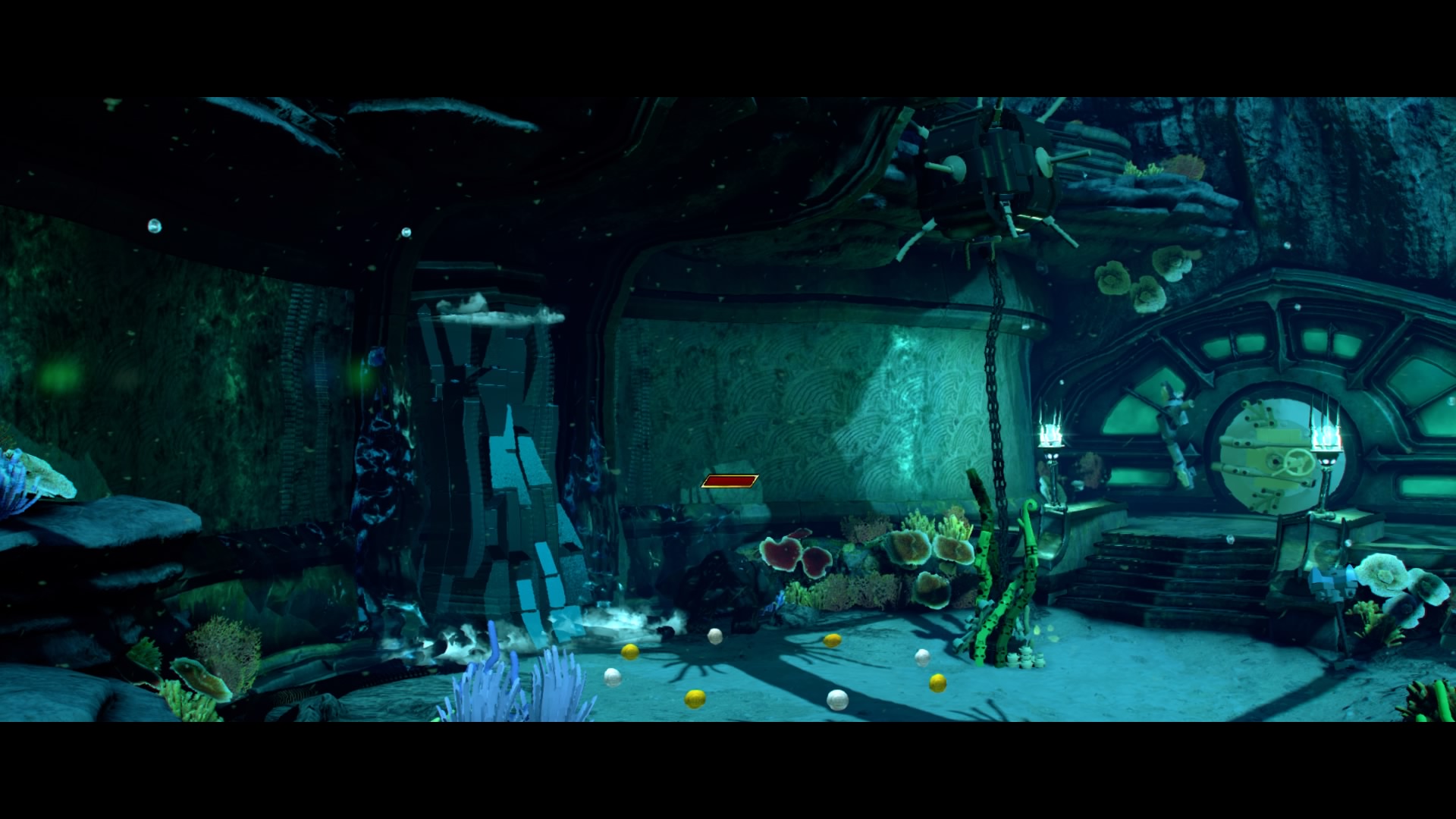 Inside the airlock, swap to Doctor Strange and interact with the LEGO table to block the open airlock door. Now we need to drain the water. To do that, attack the pedestals with clams – you need to make the background (inside the airlock) pearls match the same colors outside the passage in the foreground. When the colors match, the clams will sink into the floor and a valve will appear in the center. Turn it to drain all the water!
