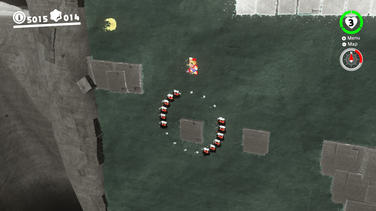 - 3 Coins: On a platform behind the second football koopa Mario needs to capture near the end of the level.