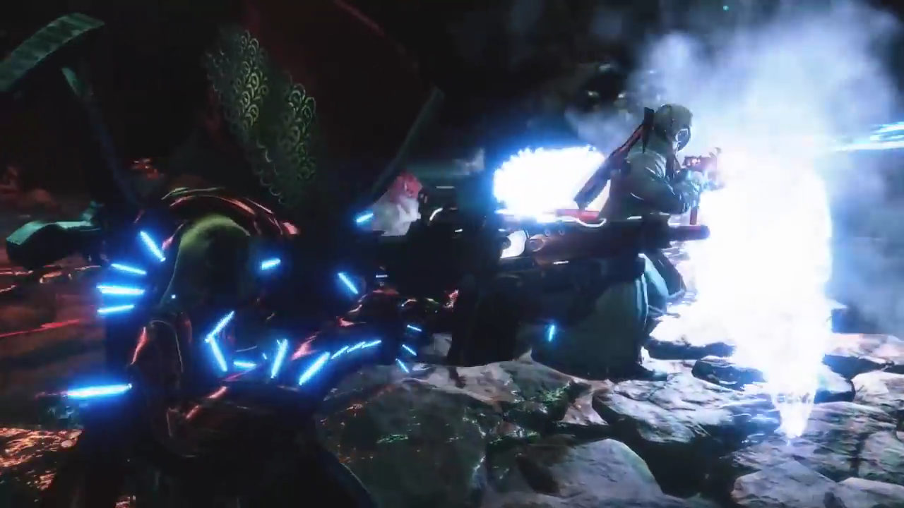 Speaking of Exotics, there’s a brand new Grenade Launcher shown briefly. As the trailer shows, this Grenade Launcher shoots little spider-bots instead of bouncing grenades — the tiny bots grow legs and chase after their prey. There are multiple shown launched, so players might get a chance at shooting them down before they get you, or even allow multiple spiders to track multiple targets.