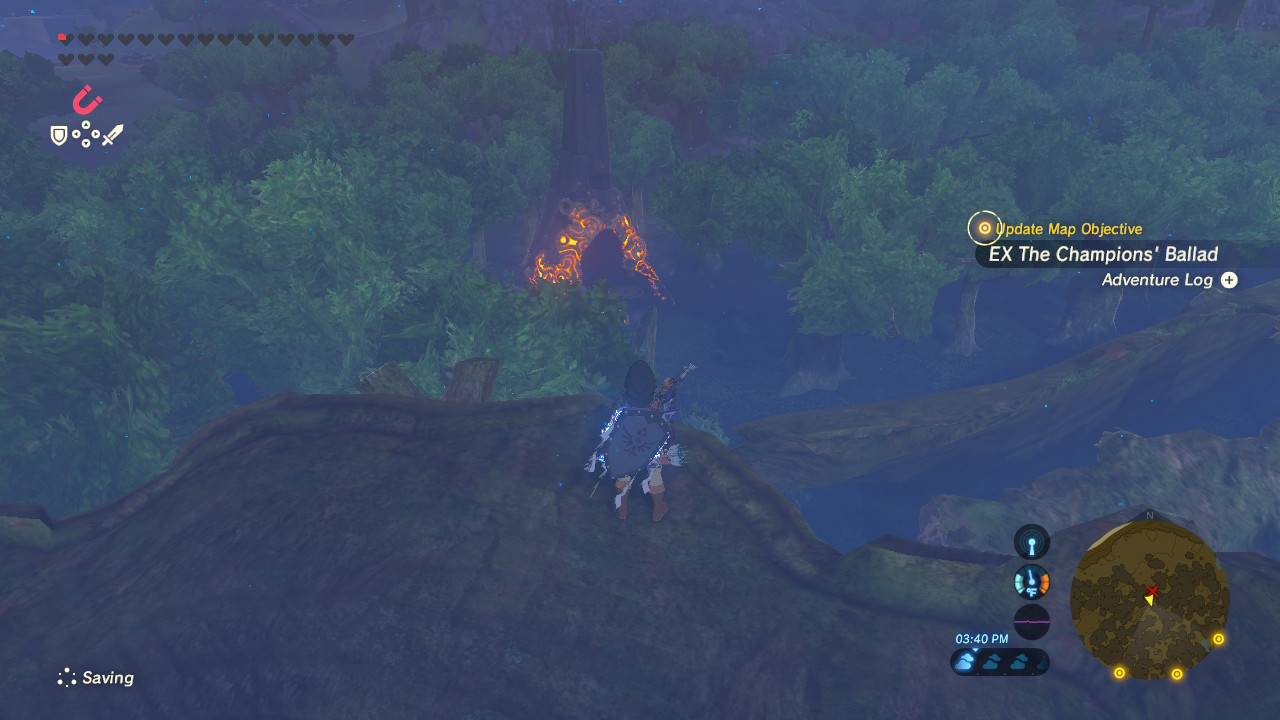 To get started on your quest, you’ll first need to complete all four Sacred Beasts, then you can begin the EX The Champions’ Ballad quest. Go back to the Shrine of Resurrection on the Great Plateau — that’s the very first area where Link awoke. Place the Sheikah Slate to begin.