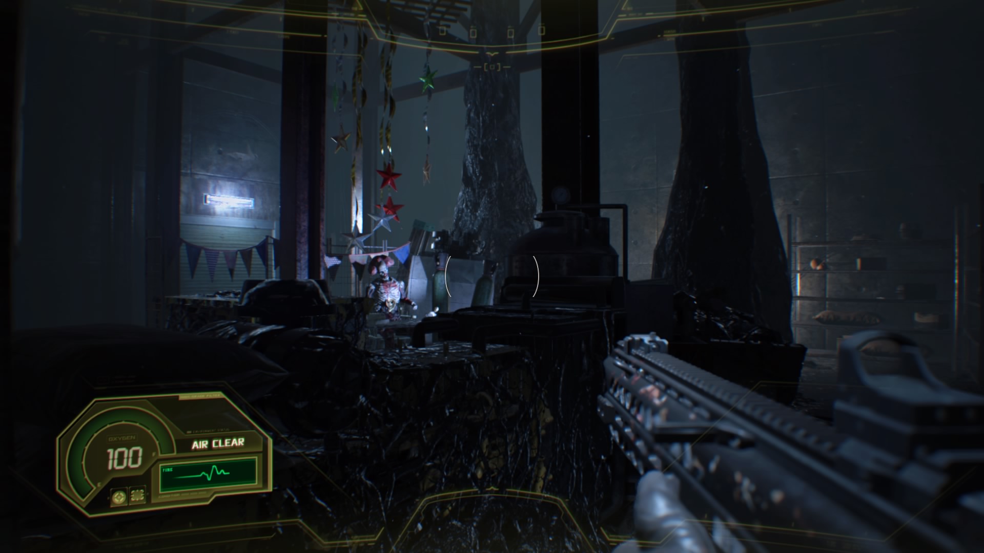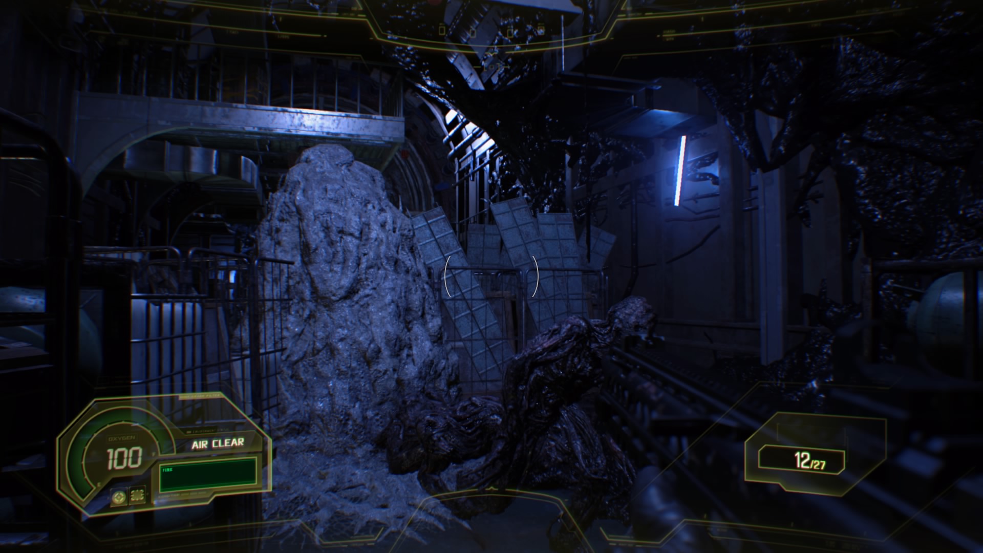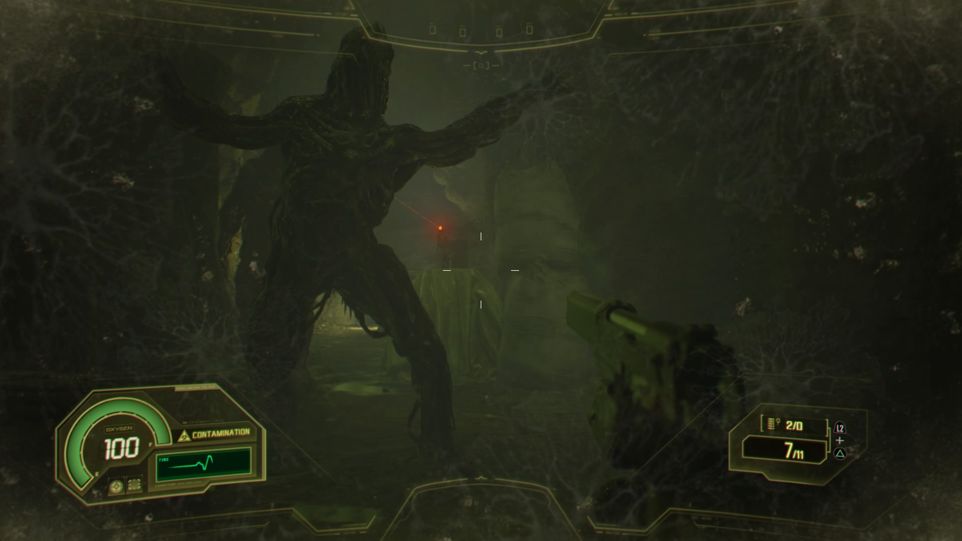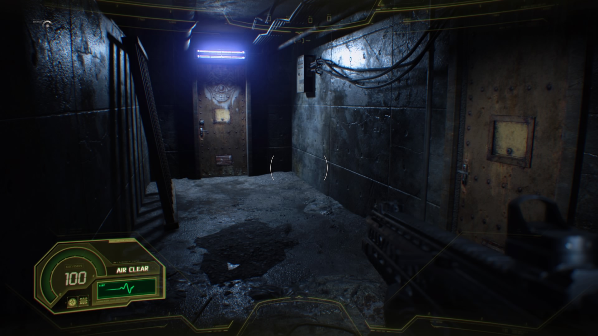 Now, follow Lucas down the hallway behind the Clinical Lab. The turret is out of ammo. Enter the Cultivation Lab, and smash all the crates and scrounge for ammo / items. Lucas will ambush you here – use everything you’ve learned so far, and carefully manage your oxygen supply during the second phase of the fight, only recharging when you’re low, and you should come out of the fight just fine. Remember; aim for the head, then aim for the chest.