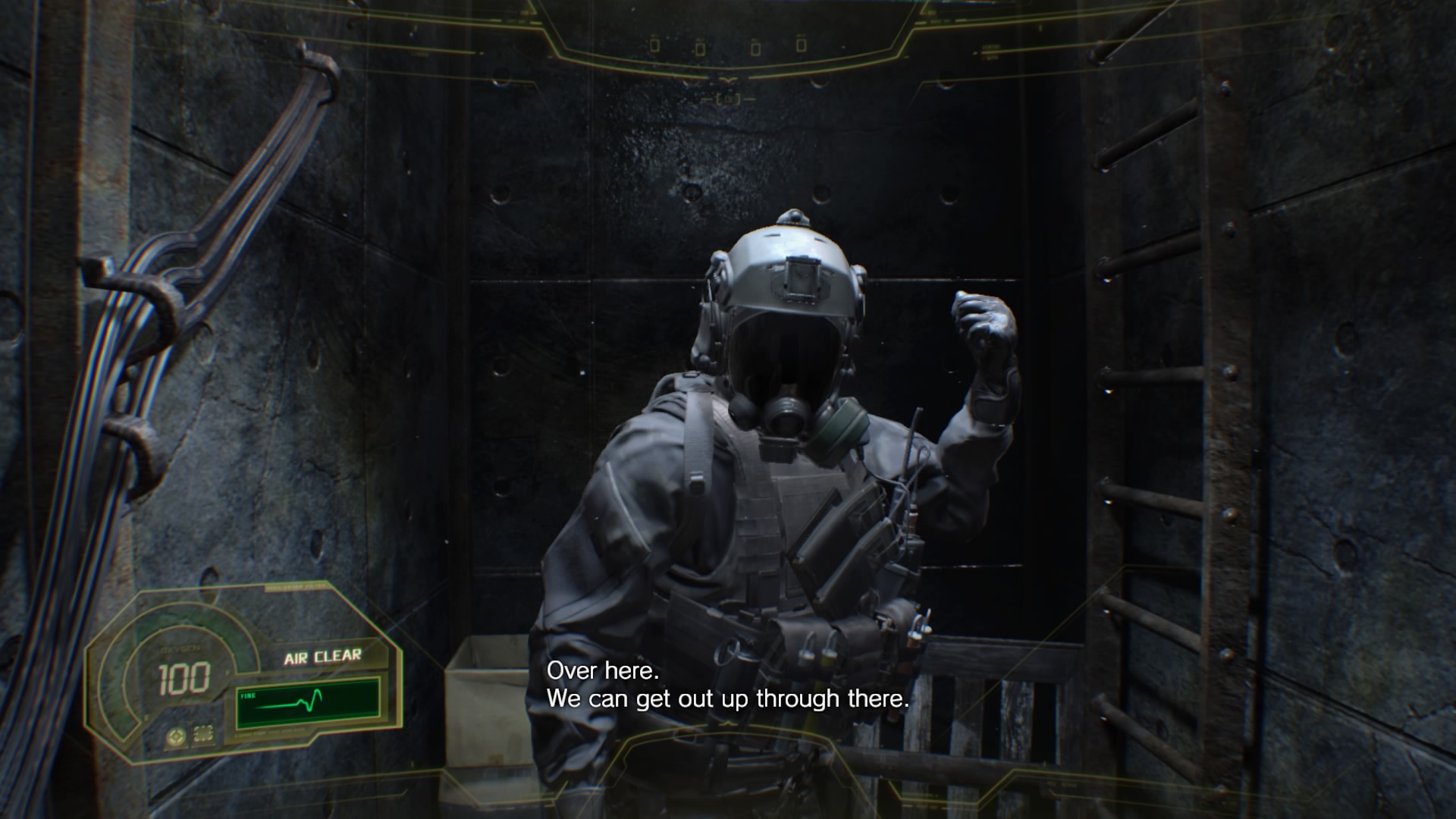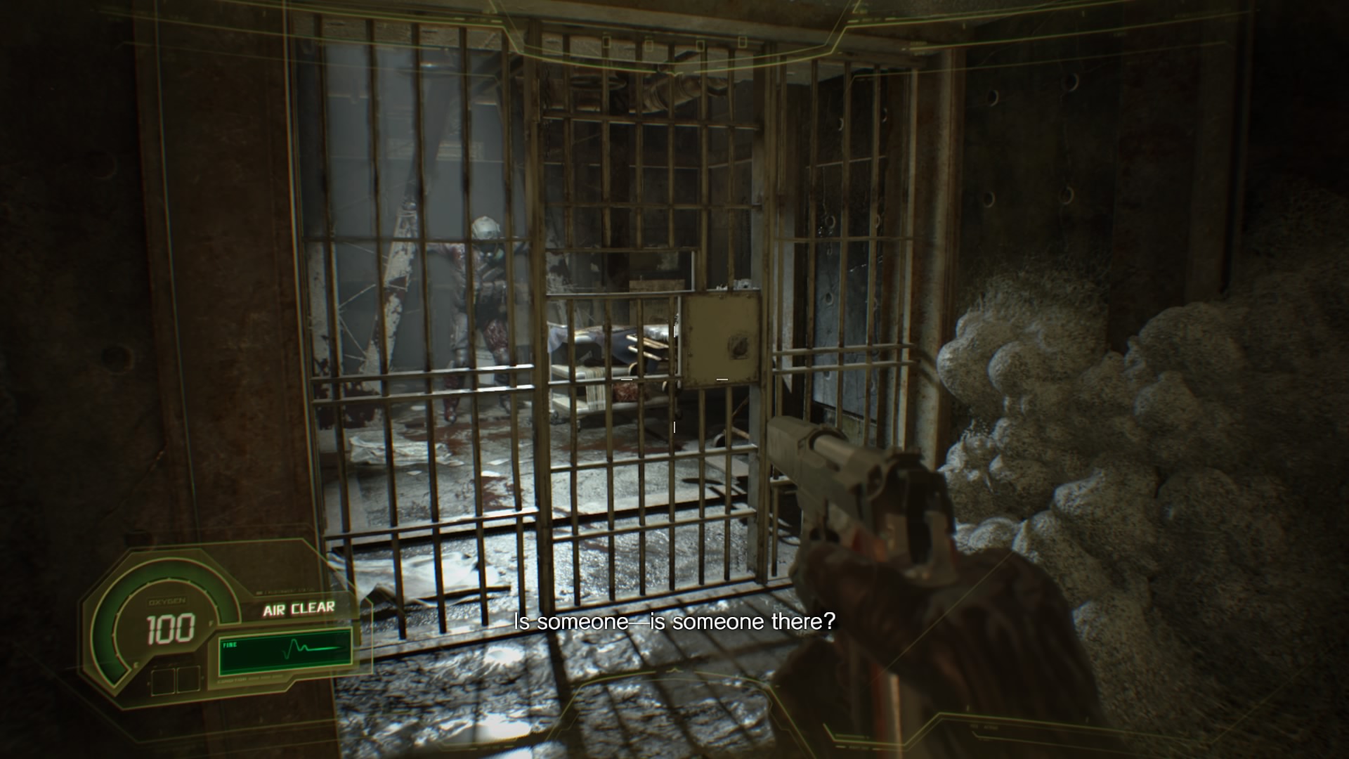 Downstairs, unlock the door to your ally with the Cell Key. Things don’t exactly work out inside – take the filter off the gasmask to unlock the High-Grade Filter upgrade. Now Chris can enter contaminated areas indefinitely.