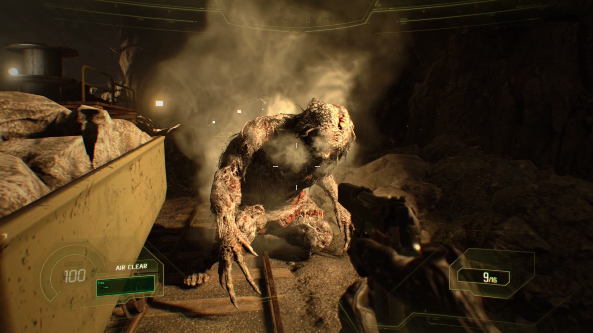 Mixing things up, Chris Redfield’s gameplay style is quite a bit different than Ethan’s. As you’d expect, Chris enters the underground mines with a full compliment of weapons — a powerful pistol and automatic shotgun are in your inventory from the start. Chris is also equipped with a gasmask, and you’ll earn even more upgrades as you progress deeper into Lucas’ lair. Even better, Chris retains his RE5 powers of punching. Stagger a Molded, and Chris can punch its head off. That’s straight up awesome.