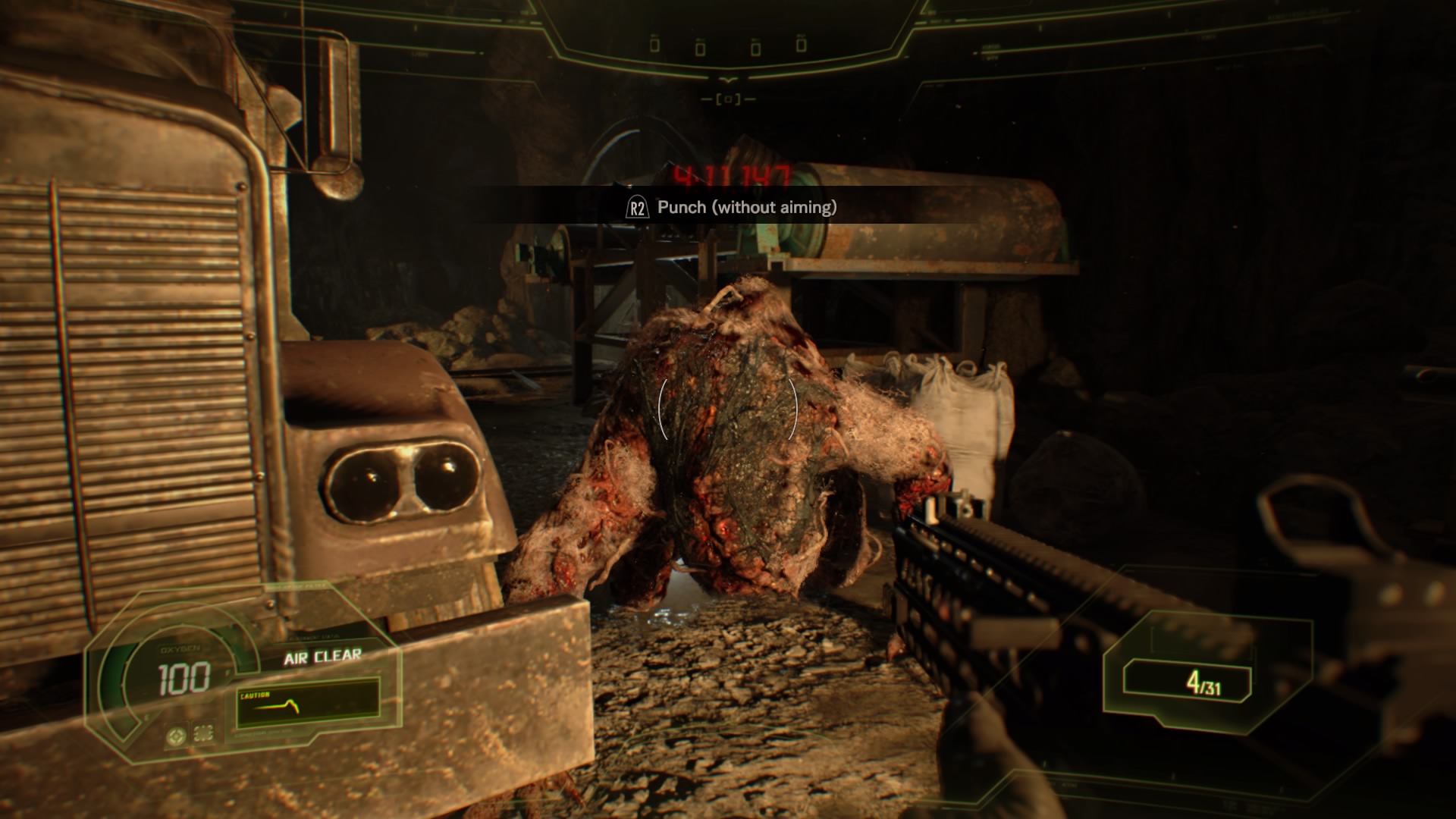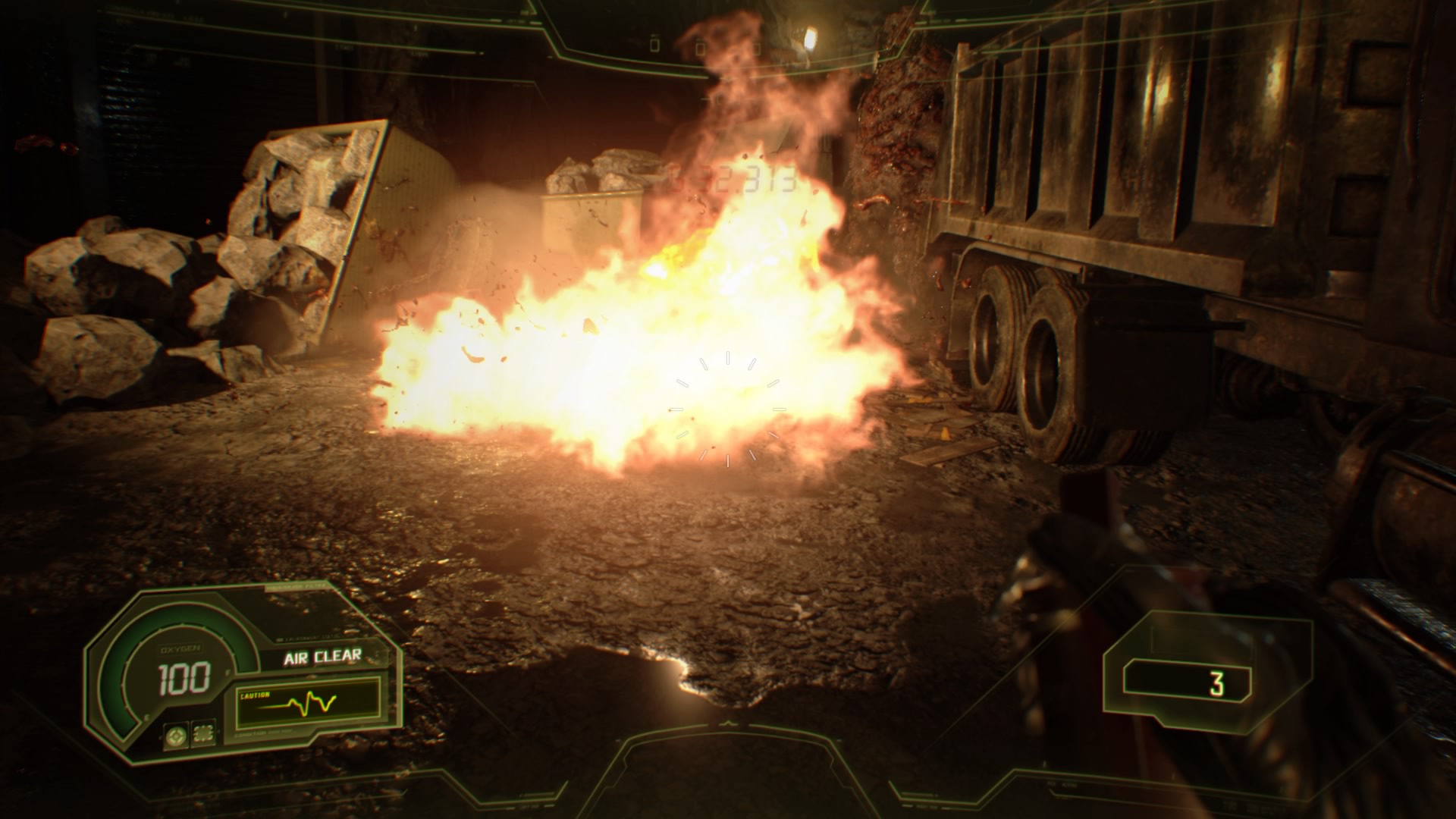 Continue moving down the path toward the garage area with the parked mining machinery. When you’re about to reach the Liquid Nitrogen, a Fat White Molded will spawn. Use a RAMROD shot to stun it, punch the weakpoint, then finish it off with grenades and regular ammo.