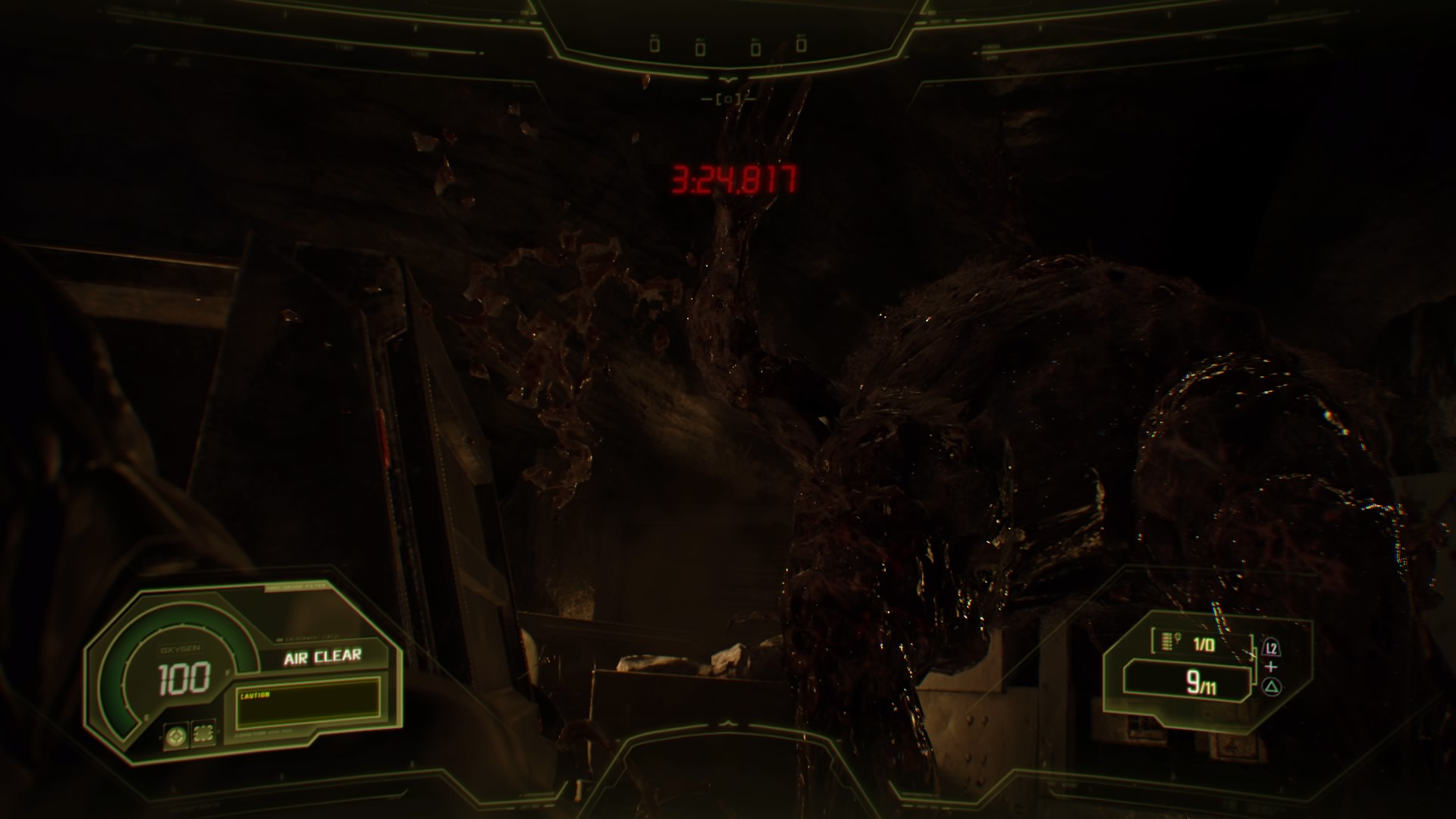 When all three waves are cleared, Lucas will activate a self-destruct in the Shield Machine area. Run back to the vent to the left of the entrance door and interact – eventually, Chris will pull the vent cover off. Crawl to the exit before the timer hits zero and we can continue the hunt. The path ahead leads to the Research Facility.