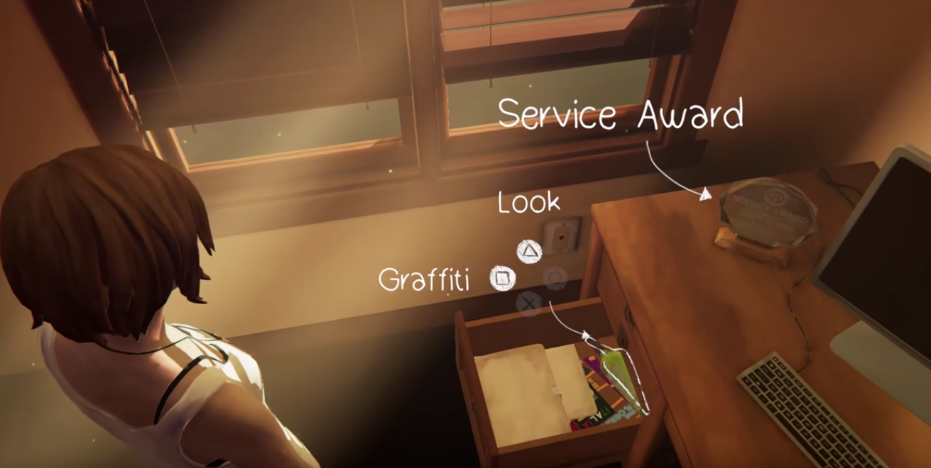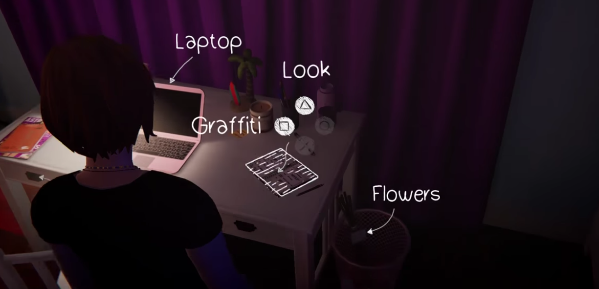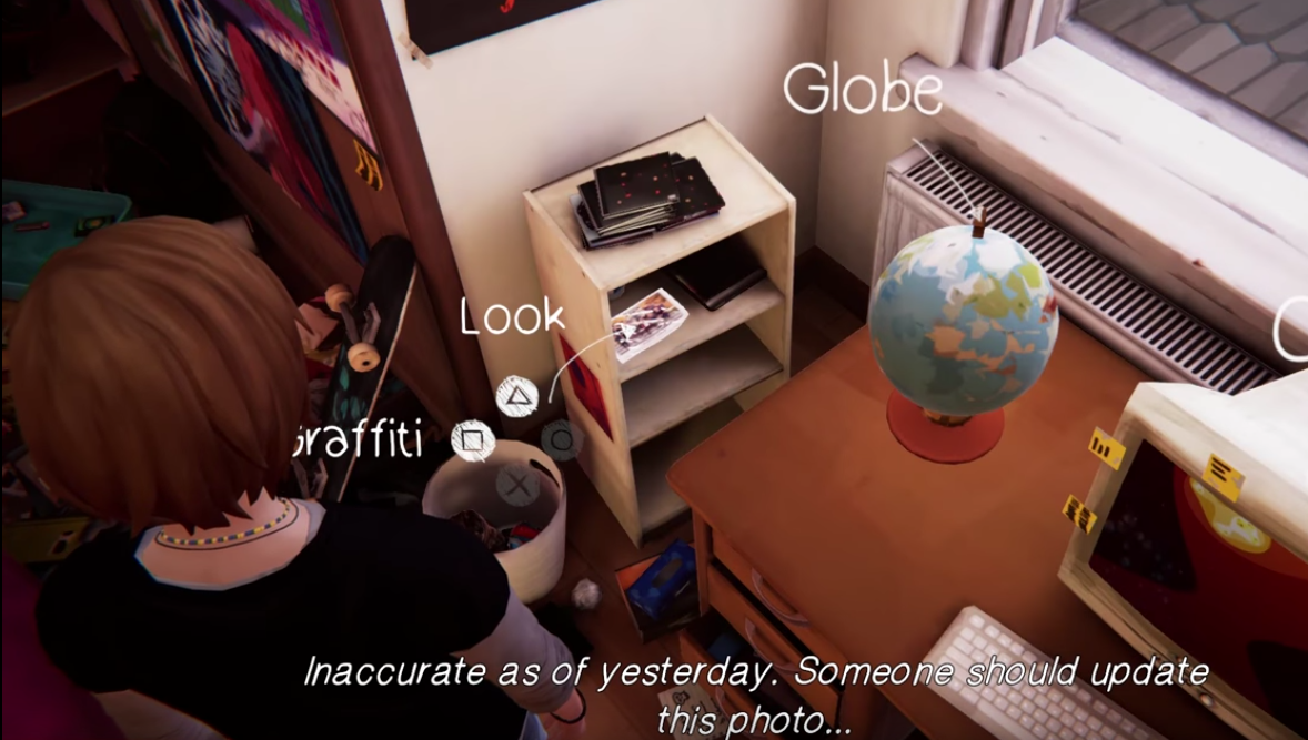 When you head back to Chloe’s room, go to her bookshelf next to the desk that holds her computer. Look at the photograph and then exit out of it. You will now have the option to graffiti on it.