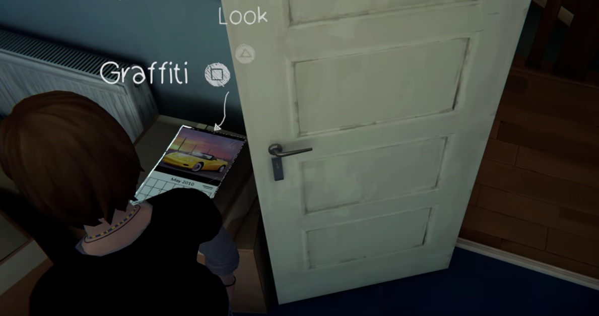 Outside of Chloe’s room, head across the hall into her mother’s room. Right behind the door will be a stack of boxes with a calendar on top. You will be able to graffiti on the calendar.