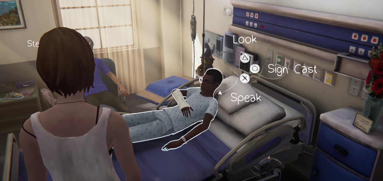 The eighth graffiti location can be found within Drew’s /Mikey’s hospital room. Depending on who is injured within your narrative, players can sign the cast.