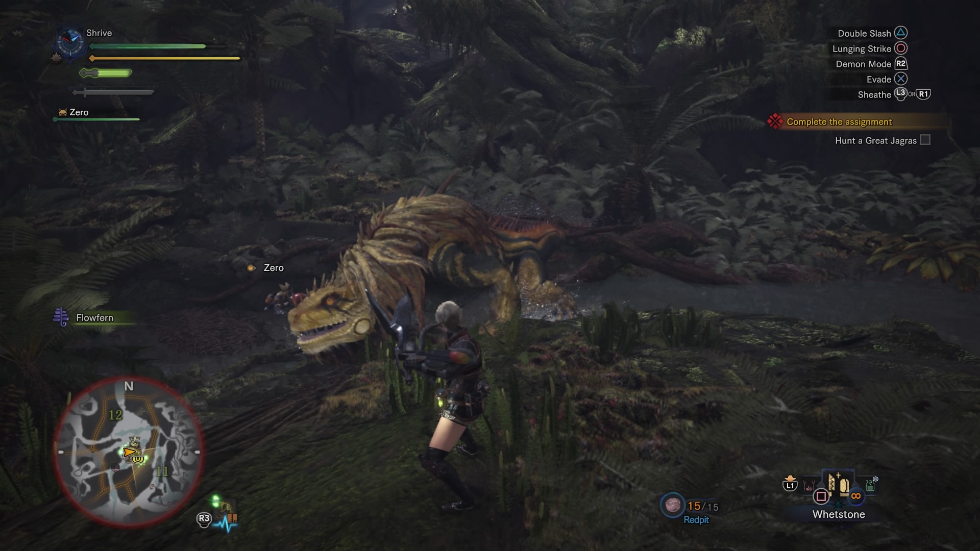On your first encounter with Anjanath, you’ll find it in Area 12. Use the large trees in Area 8 (and other areas) to trap the monster in vines — or, bring lots of traps! Traps will help slow it down, letting you do tons of damage.
