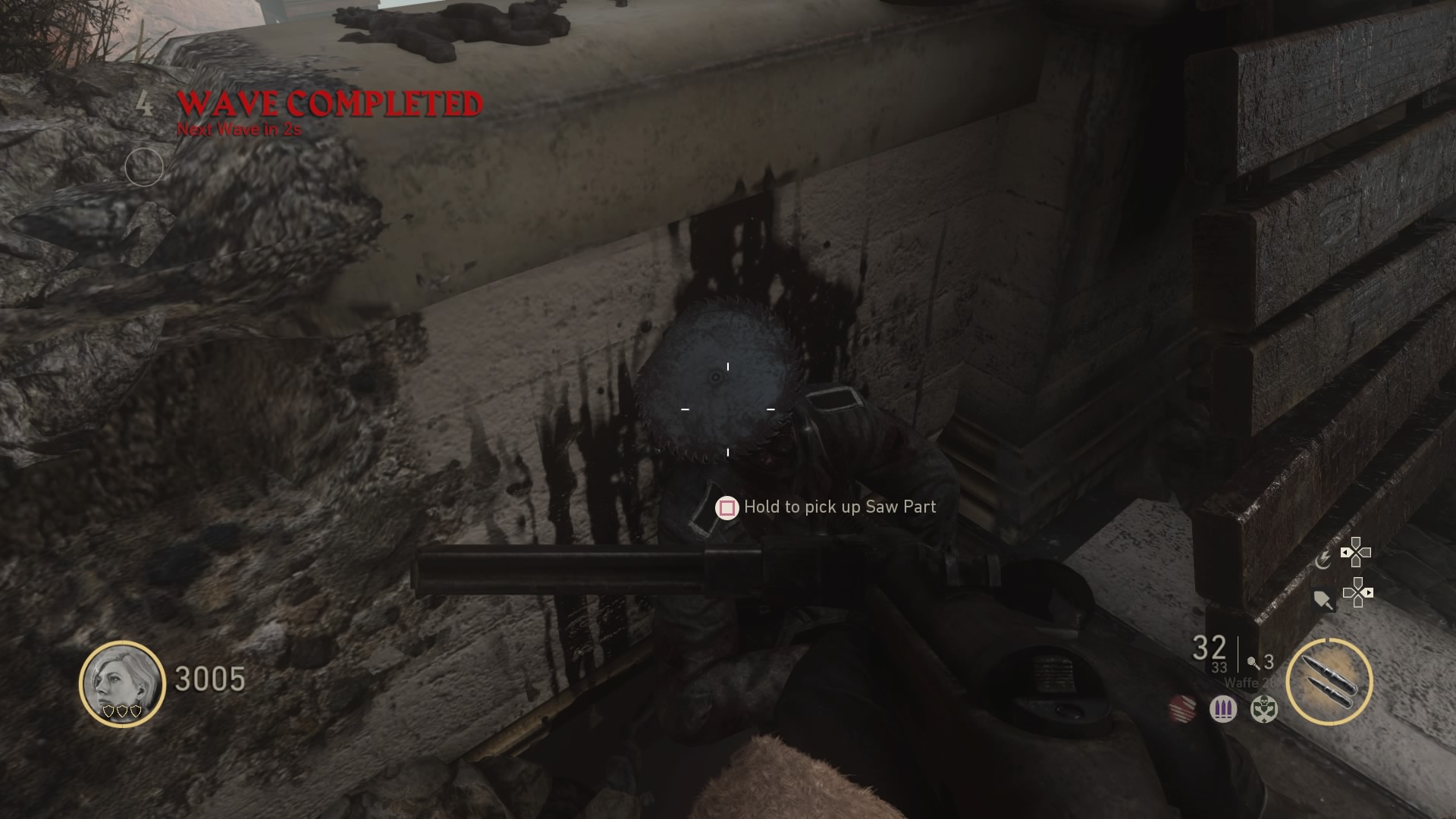 - Sawblade: Found on a soldier’s corpse at Bunker 3, near the Pack-a-Punch elevator shaft.