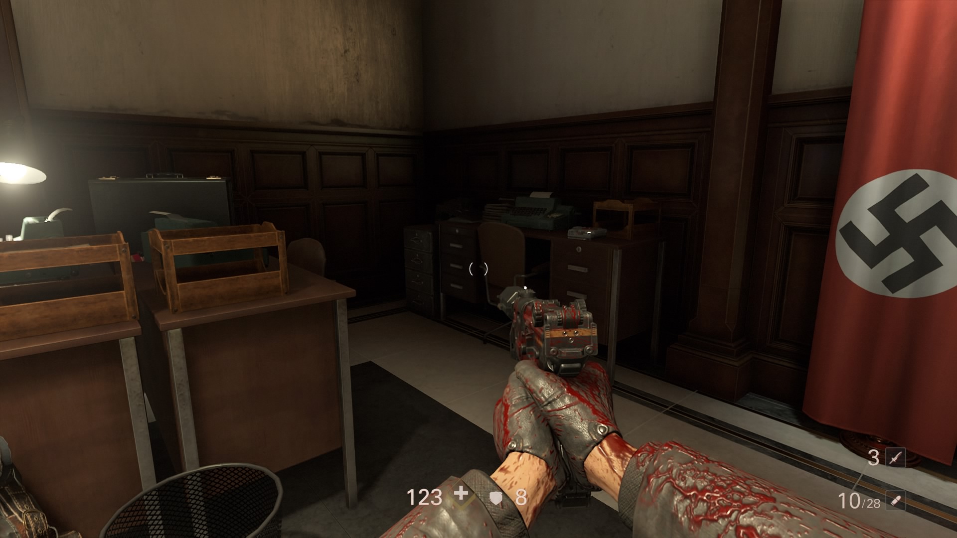 - Note #1: The first note is in the maintenance closet at the very start of the Gestapo Office, on a metal shelf.