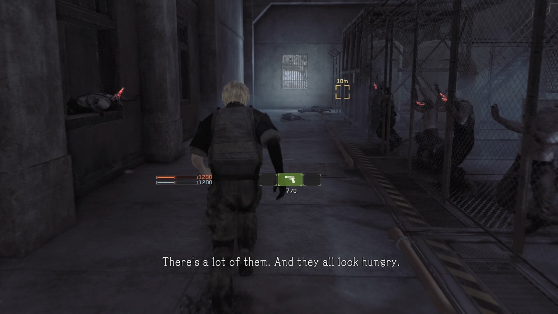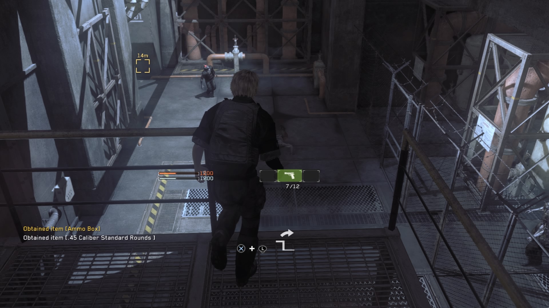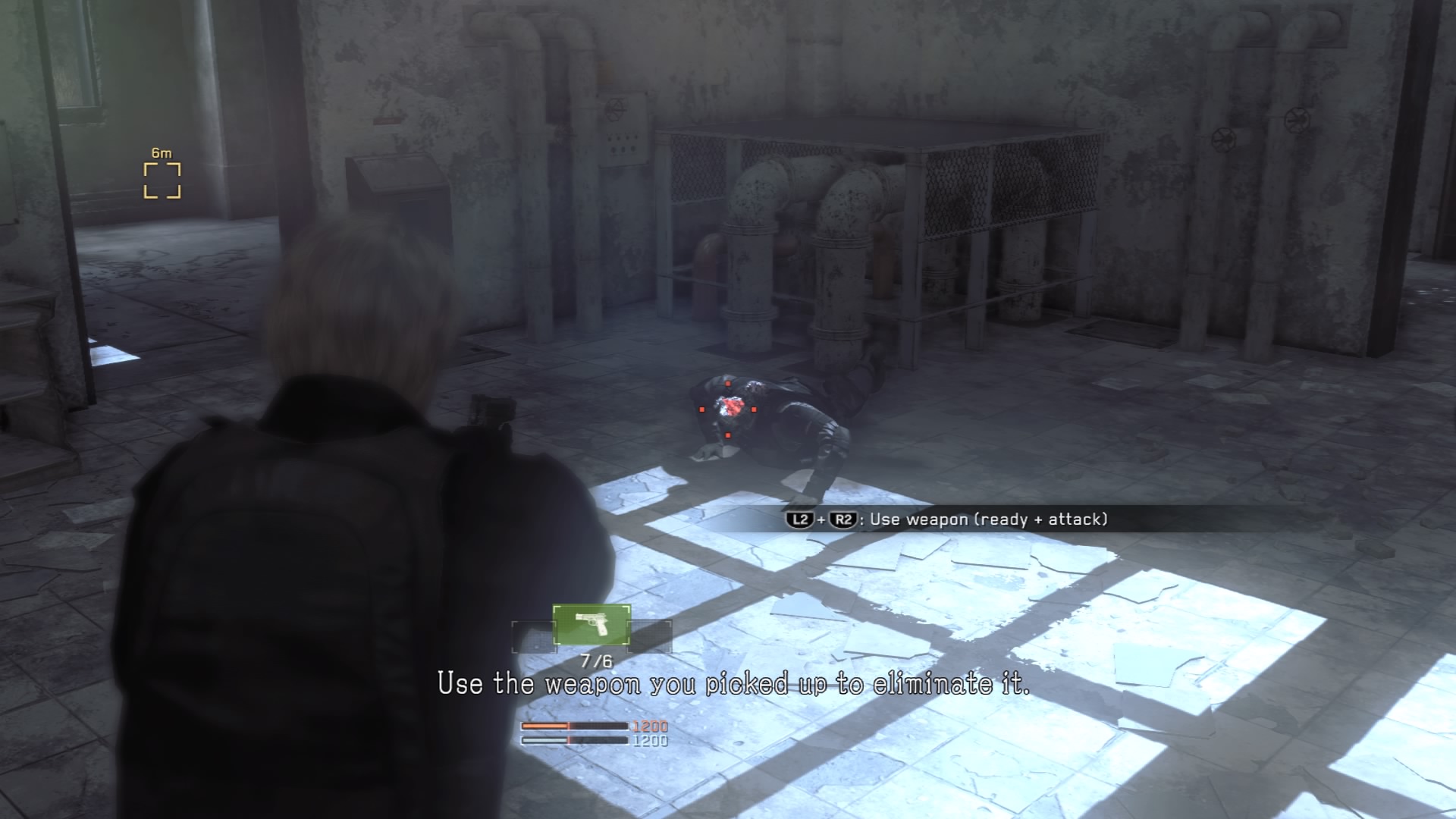 After the cutscene, you’ll get your first gun – a simple pistol. Hold [L2 / LT] to aim and squeeze [R2 / RT] to fire. There are too many zombies to fight, so just run straight ahead! More undead will break down the fences, so you’ll need to move fast. Collect extra ammo on the corpses, and continue up the stairs and back down to escape.