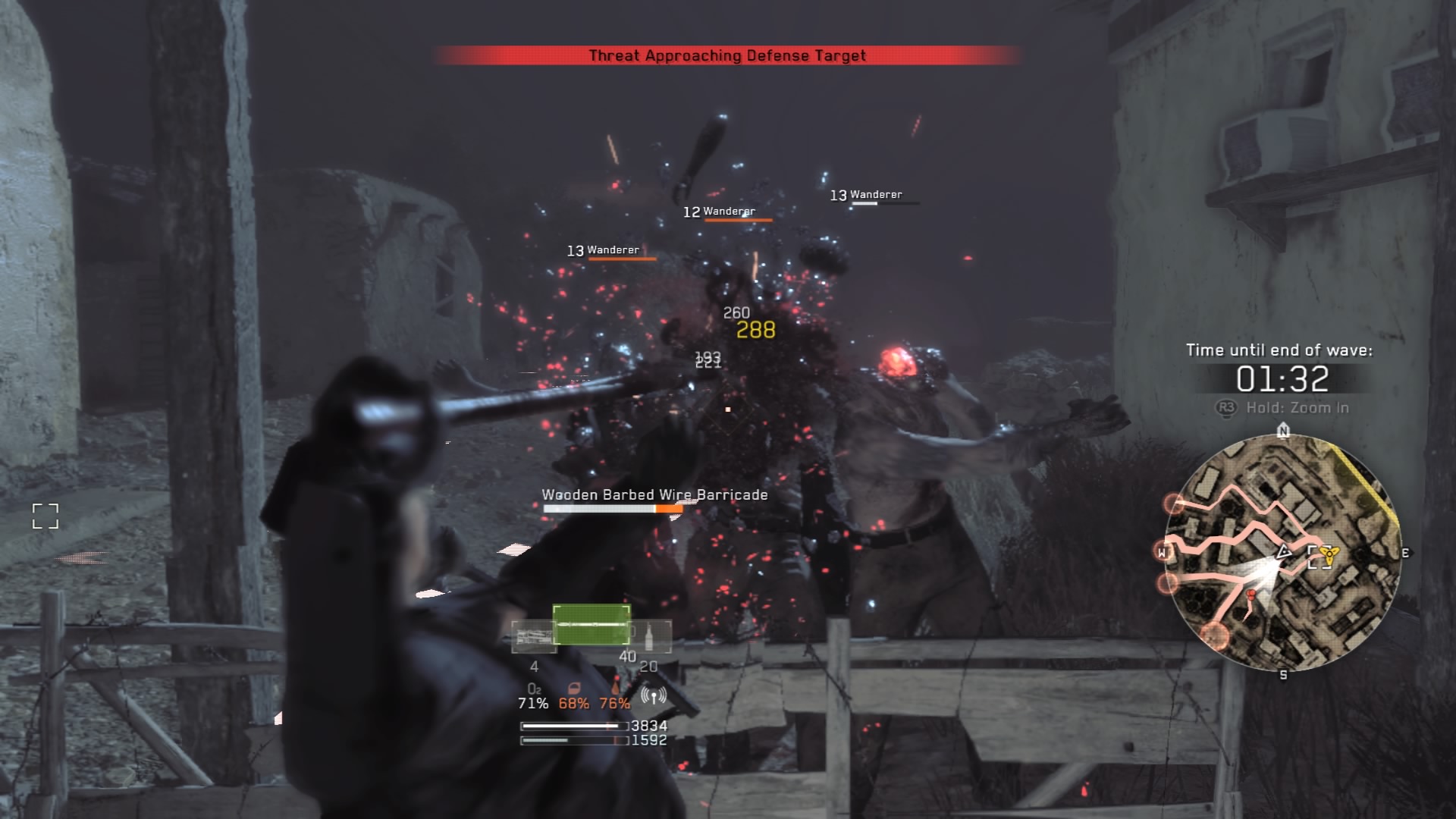 The wanderers in this mission will use the rooftops and building interiors to reach you. Don’t set up defenses until you actually see where the wanderers are coming from. I recommend keeping the fences, walls, and mines ready – just place a mine on the ground when a large group approaches to wipe them all out.