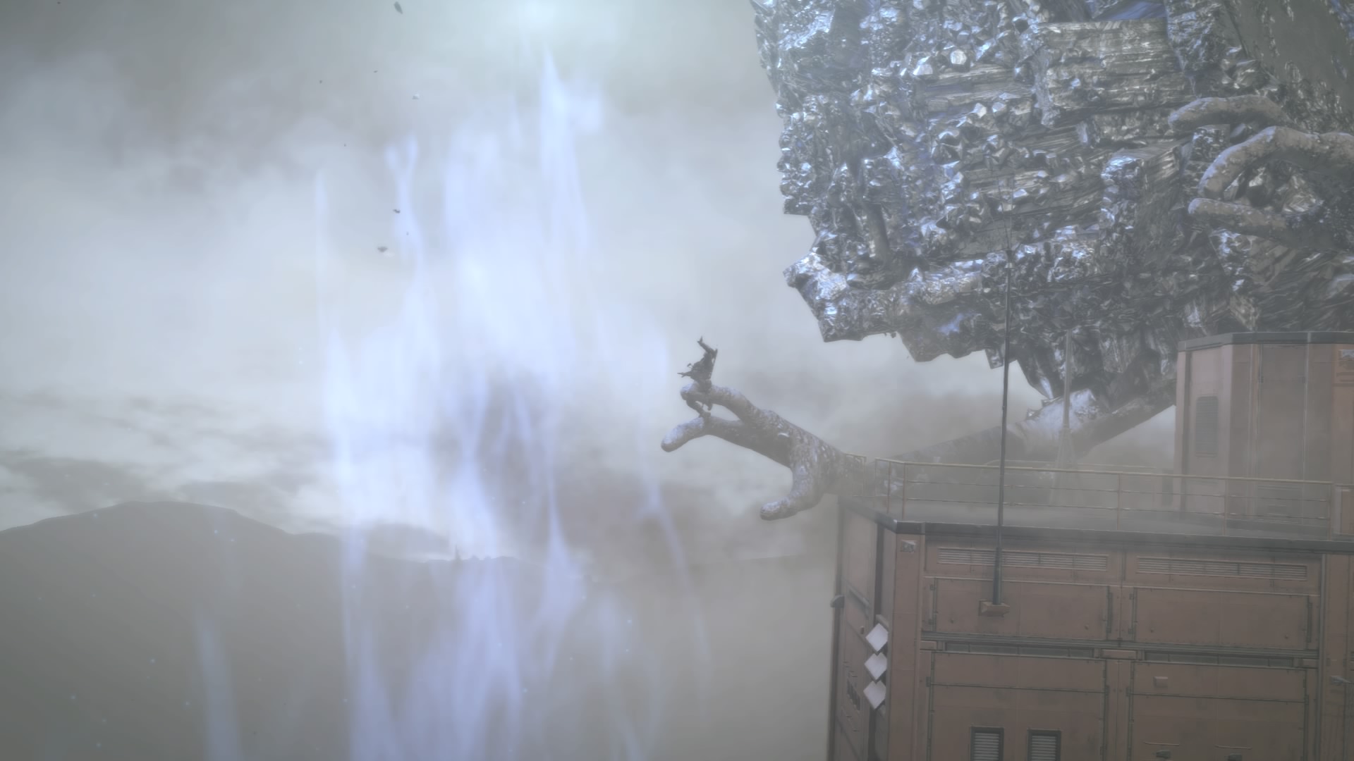 After the timer is up, you and your team will rush to Mother Base to escape via the wormhole. The energy signature from your machine signals the Lord of Dust, and the massive creature makes his first real appearance outside the Dust. When you’re in control, follow the markers up and around Mother Base, picking up Chris so you don’t leave him behind. Watch out for Crawlers and pay attention to bridges – the Lord of Dust will attempt to punch you as you cross. Don’t let that happen! Reach the top, and you’re home free… with a little assist from Virgil.