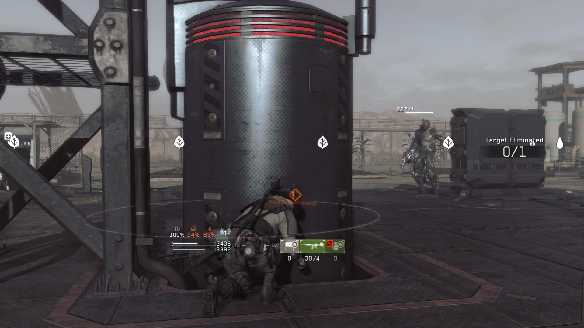 Wait for your chance, then step out of cover and blast him in the head or on the weak point on his back. Guns are especially effective against these weak spots – if you hit the back weakpoint, Seth will stumble, giving you time to shoot him a few more times.