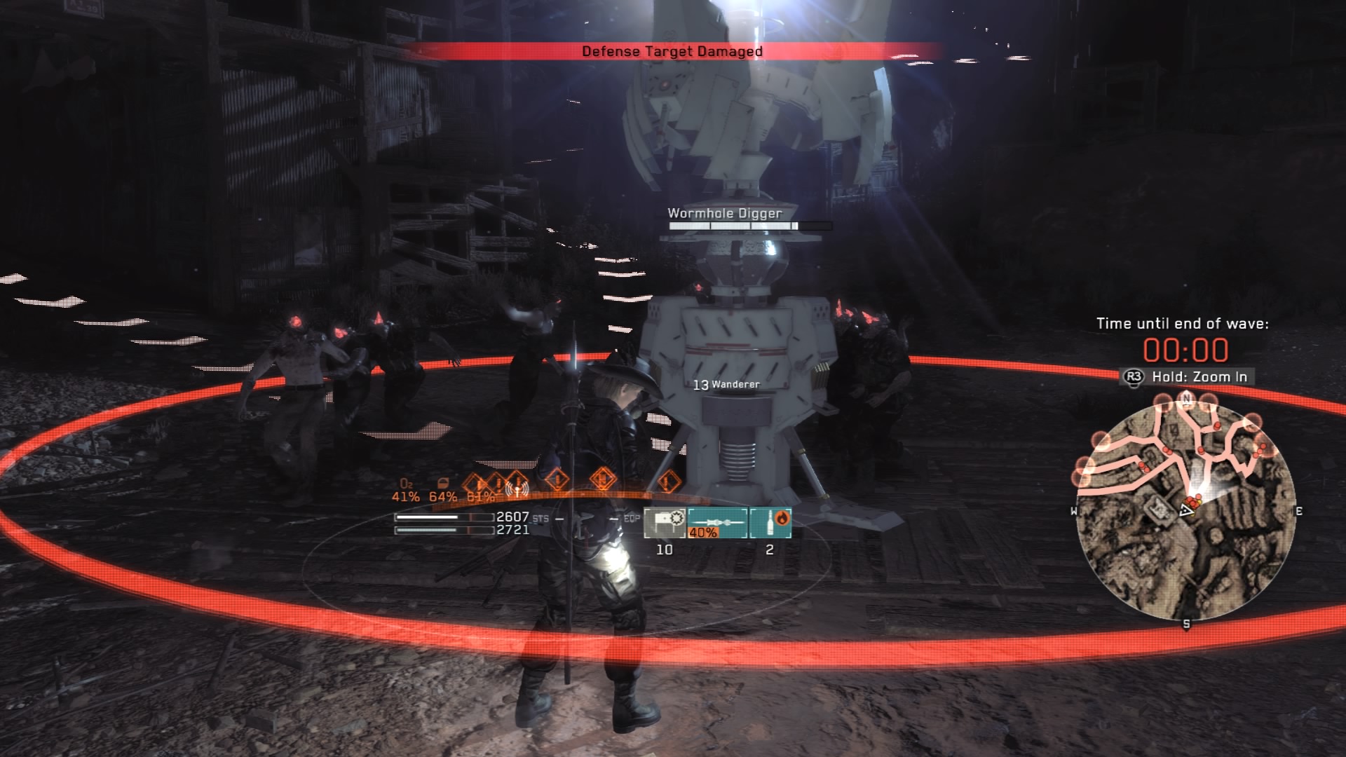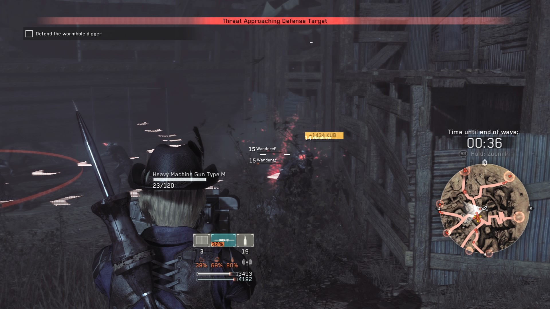 Defeat the Mortars in the area before beginning the timed sequence. This is a tight area, but it’s a much easier defense mission than the previous fifteen minute slugfest. This is, once again, three waves that are about three minutes long each – you’ll mostly have to deal with regular Wanderers, but a few Bombers and Trackers will also appear in the last wave.