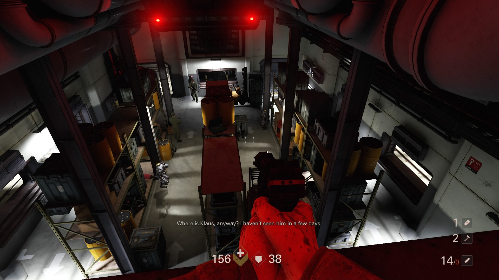 - Weapon Upgrade #1: Shotgun Magazine — Easily visible from the vent exit, when you first enter the warehouse room. It’s on the top of the center shelves — clear the room and the stilts will help you get it.