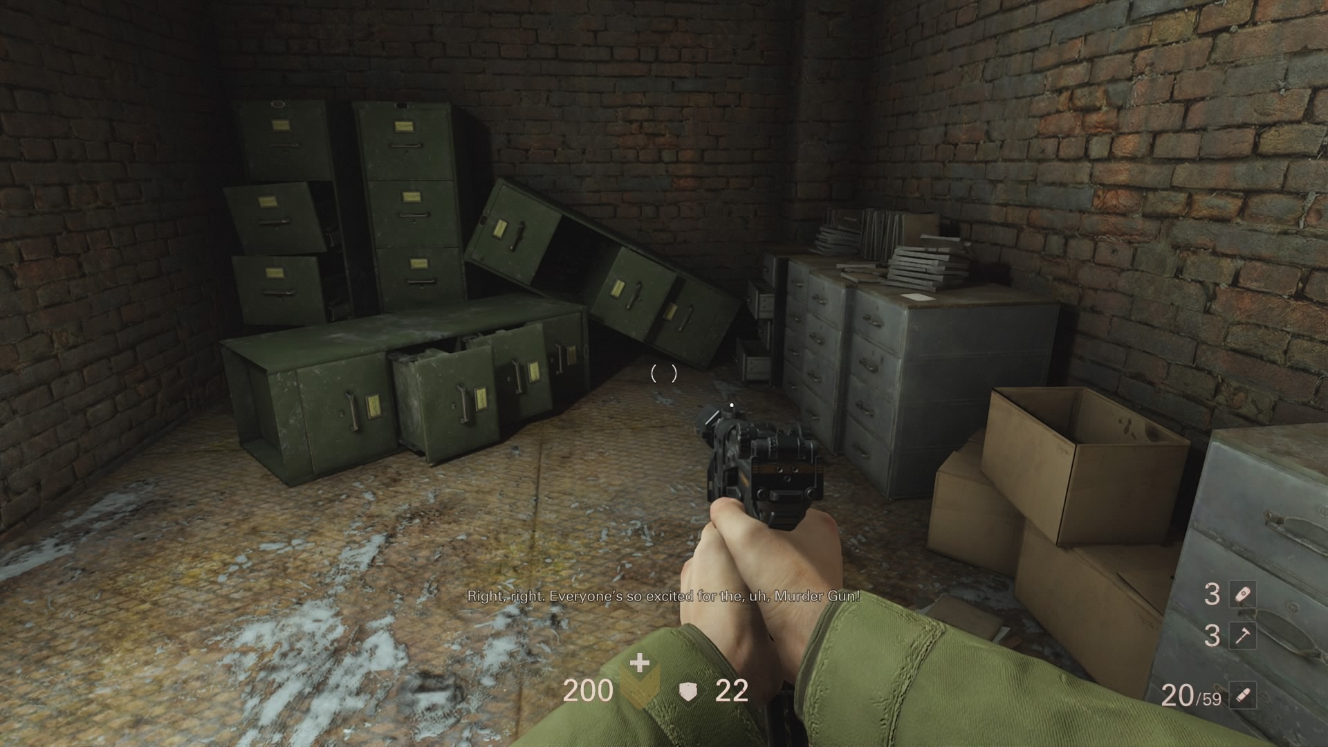 The notes, e-posts, and newspaper articles reveal tiny tidbits on the state of the alternate-reality US. Taken over by the Third Reich, Captain Wilkins joins old (and new) allies in his quest to destroy the Sun Gun, the latest Nazi superweapon. If you read the notes, you’ll learn about mysterious Nazi spy The Owl, the evil luxury-loving general behind the project, and the state of “modern” alternate reality Anchorage. It’s kind of fun! And there’s an achievement / trophy in the mix.