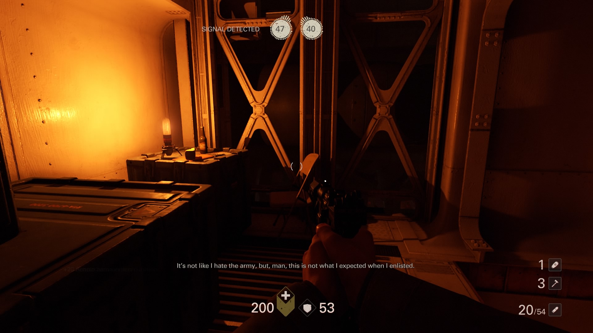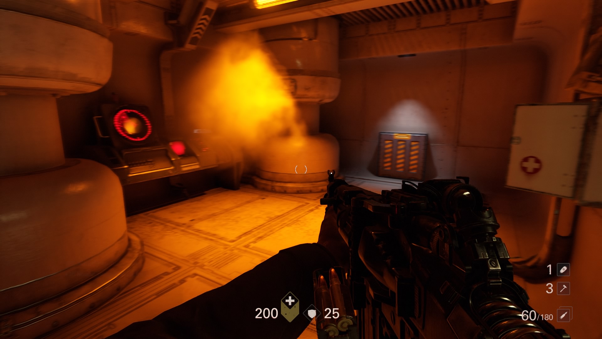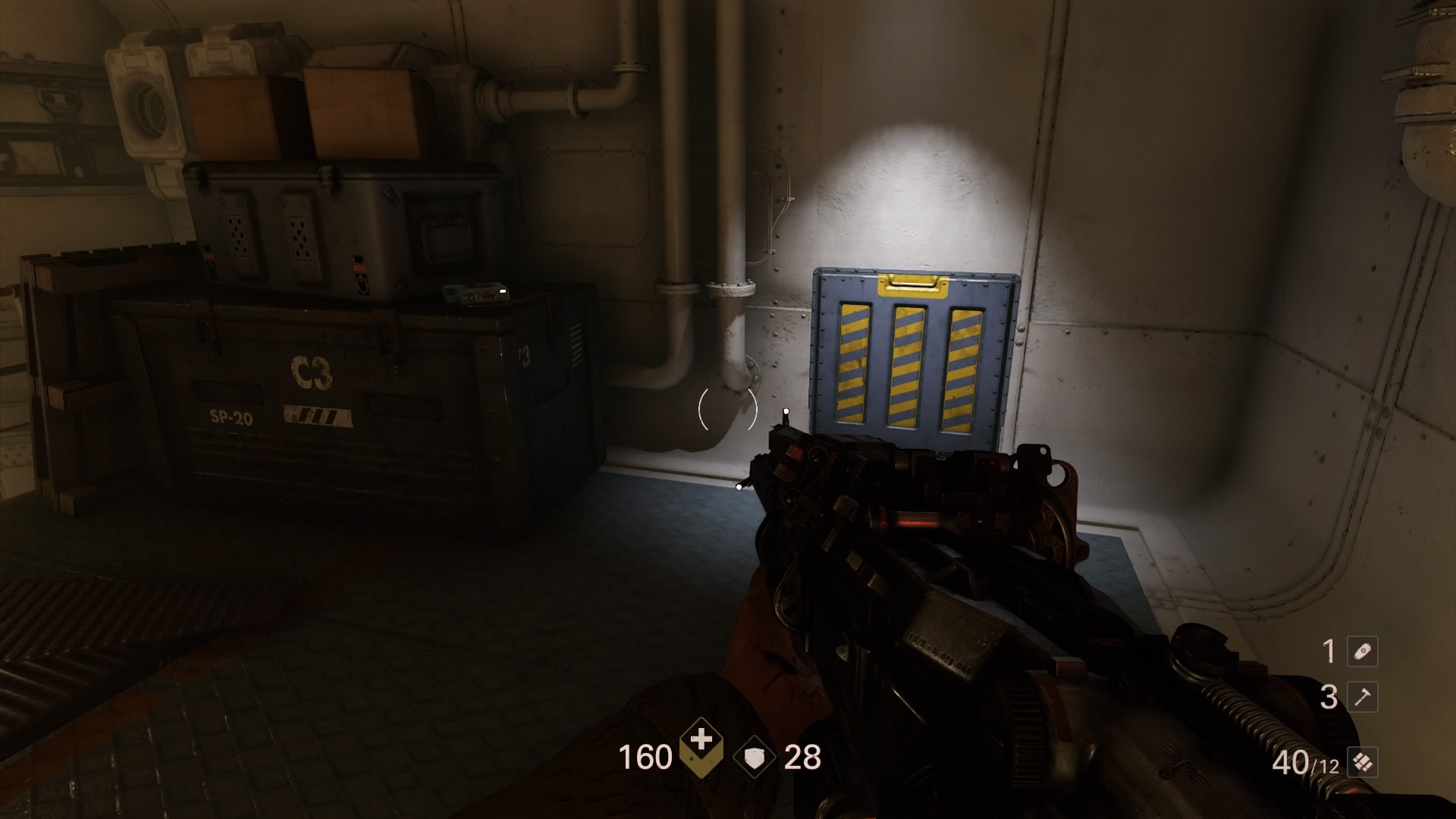 - Note #4: When you first drop down into the hangar area where the first officer is found, stay on the ground floor and look along the right wall. There’s a maintenance tool table under an orange light with a note.