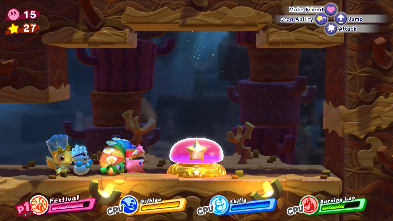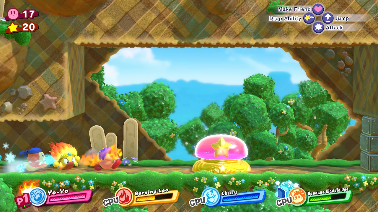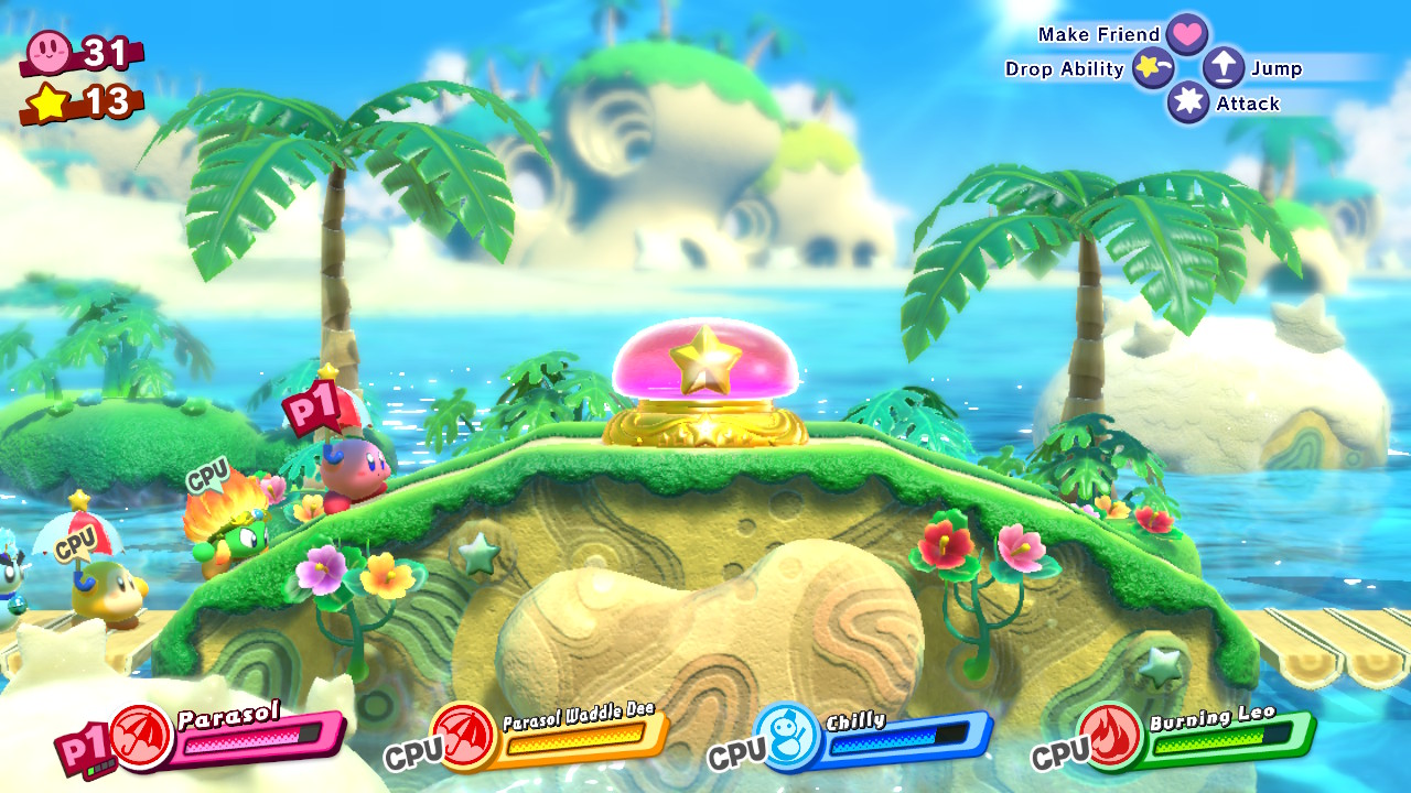 The extra levels aren’t just optional bonuses. You can freely skip them, but they’re full levels filled with classic music from Kirby’s past. You’ll also be able to collect Picture Piece collectibles from these extra stages, and they’re required to complete all the Celebration Art in the game. If you’re looking for more gameplay and want to 100% Kirby: Star Allies, you won’t want to miss any of these Big Buttons.