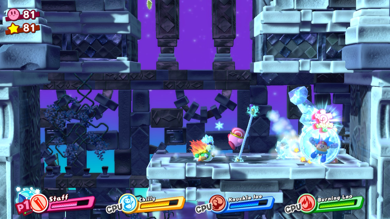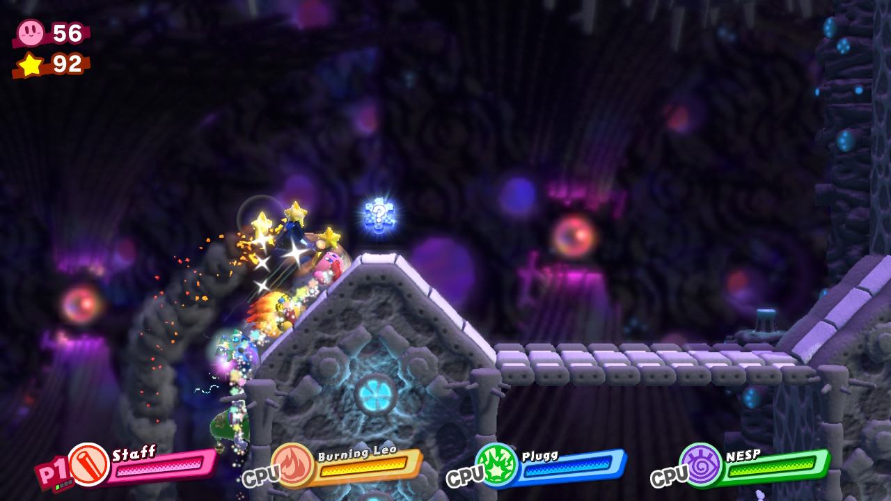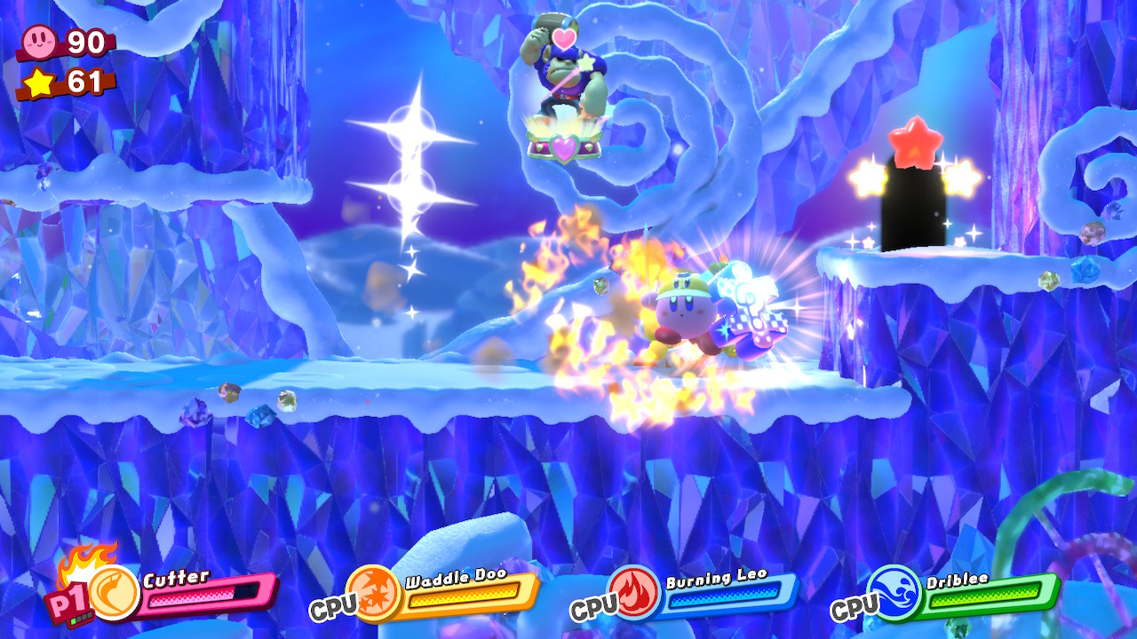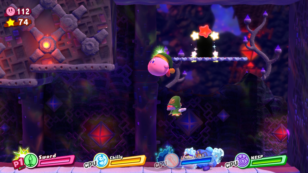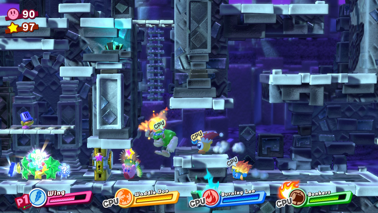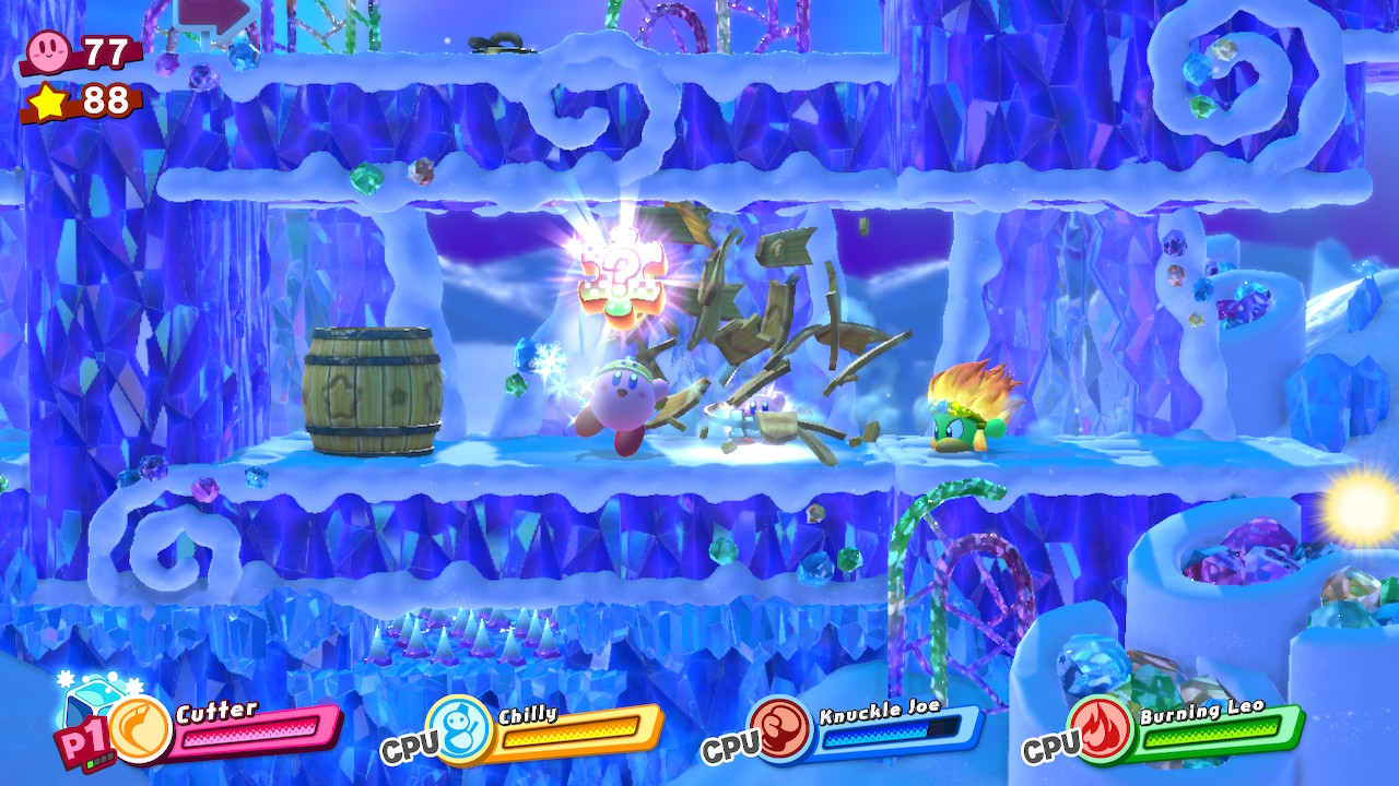 - 4-4B: Blizzno Moon – On the second elevator, break through the barrels on the right and complete the bonus room. Make sure to hit the switch at the end of the bonus room so you can reach the collectible and a Hammer Copy Ability.