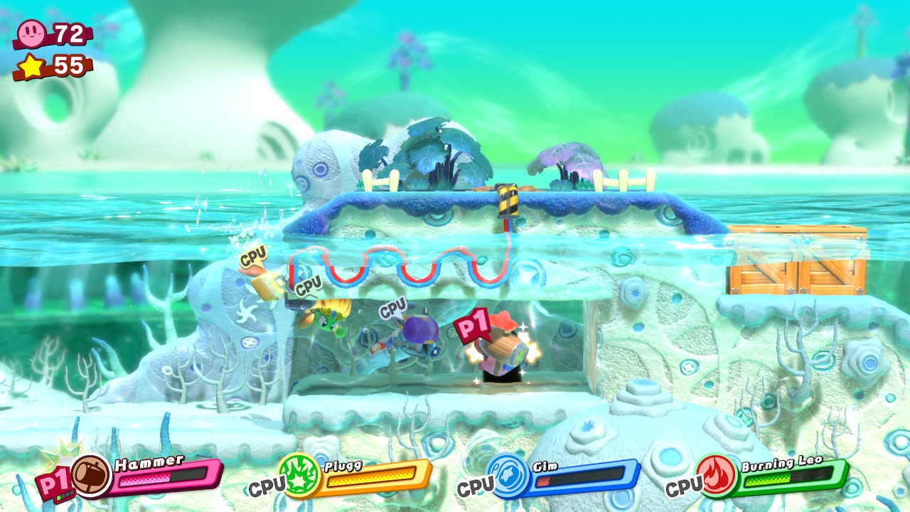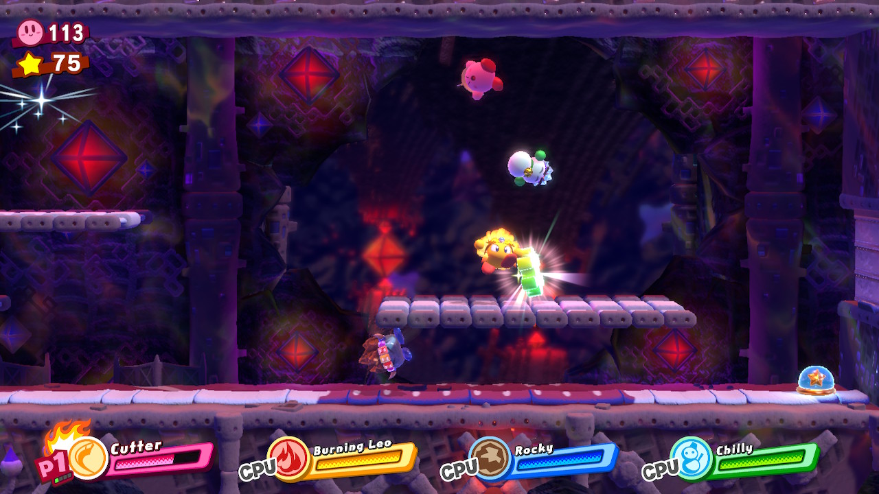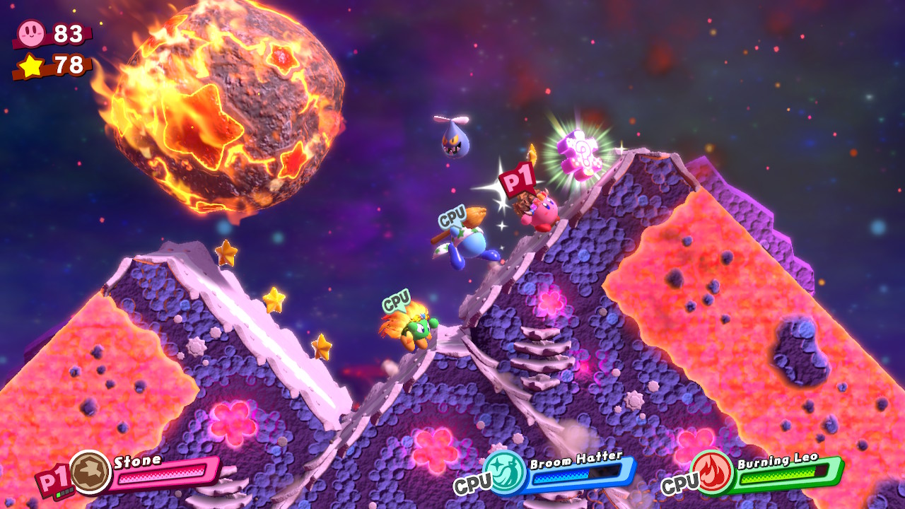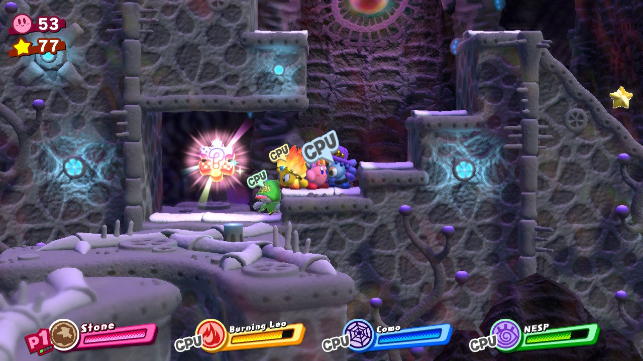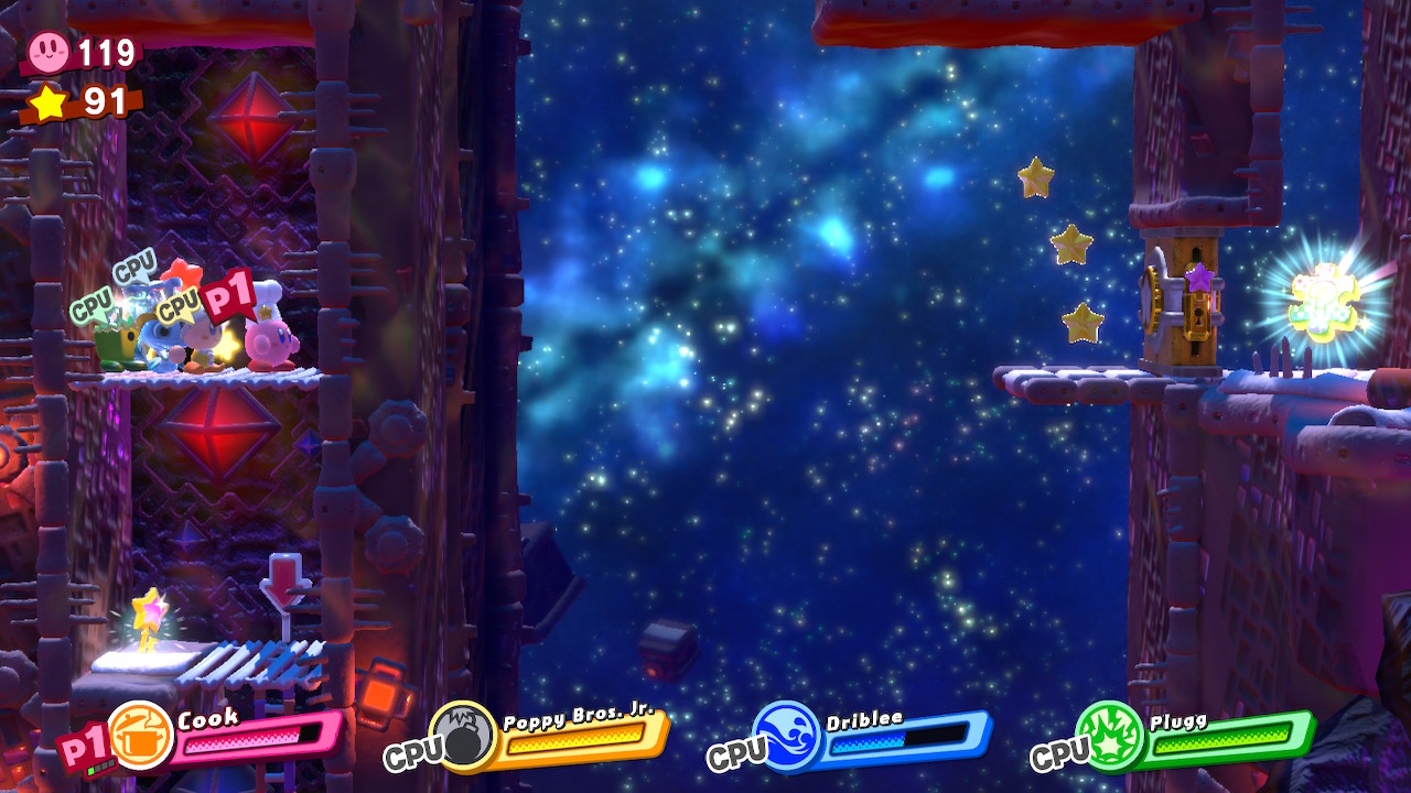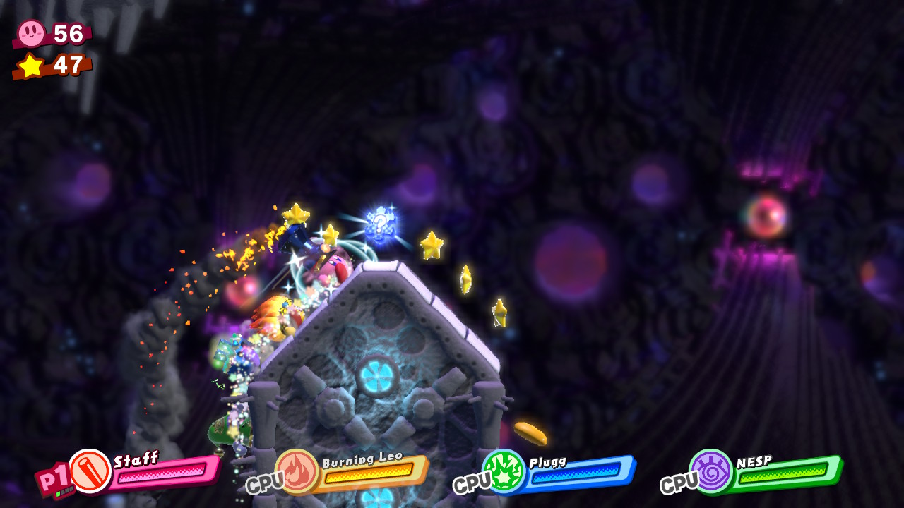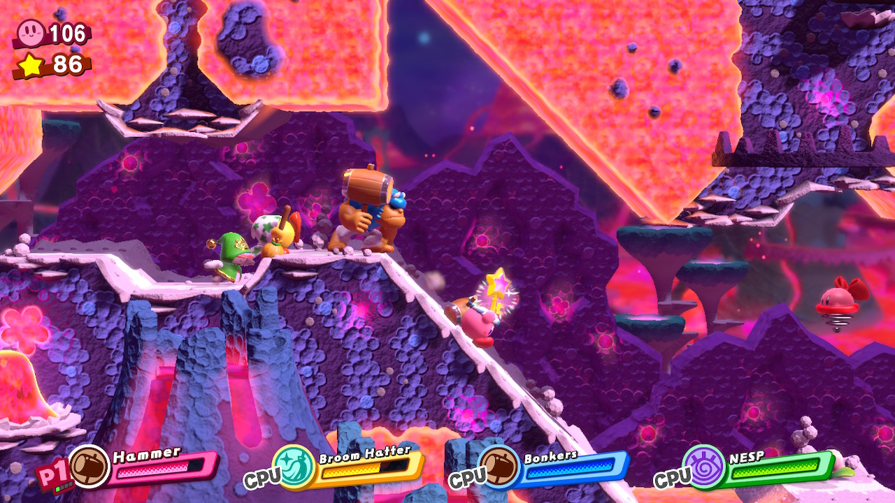 - 4-4B: Blizzno Moon – On the second elevator, break through the barrels on the right and complete the bonus room. Make sure to hit the switch at the end of the bonus room so you can reach the collectible and a Hammer Copy Ability.