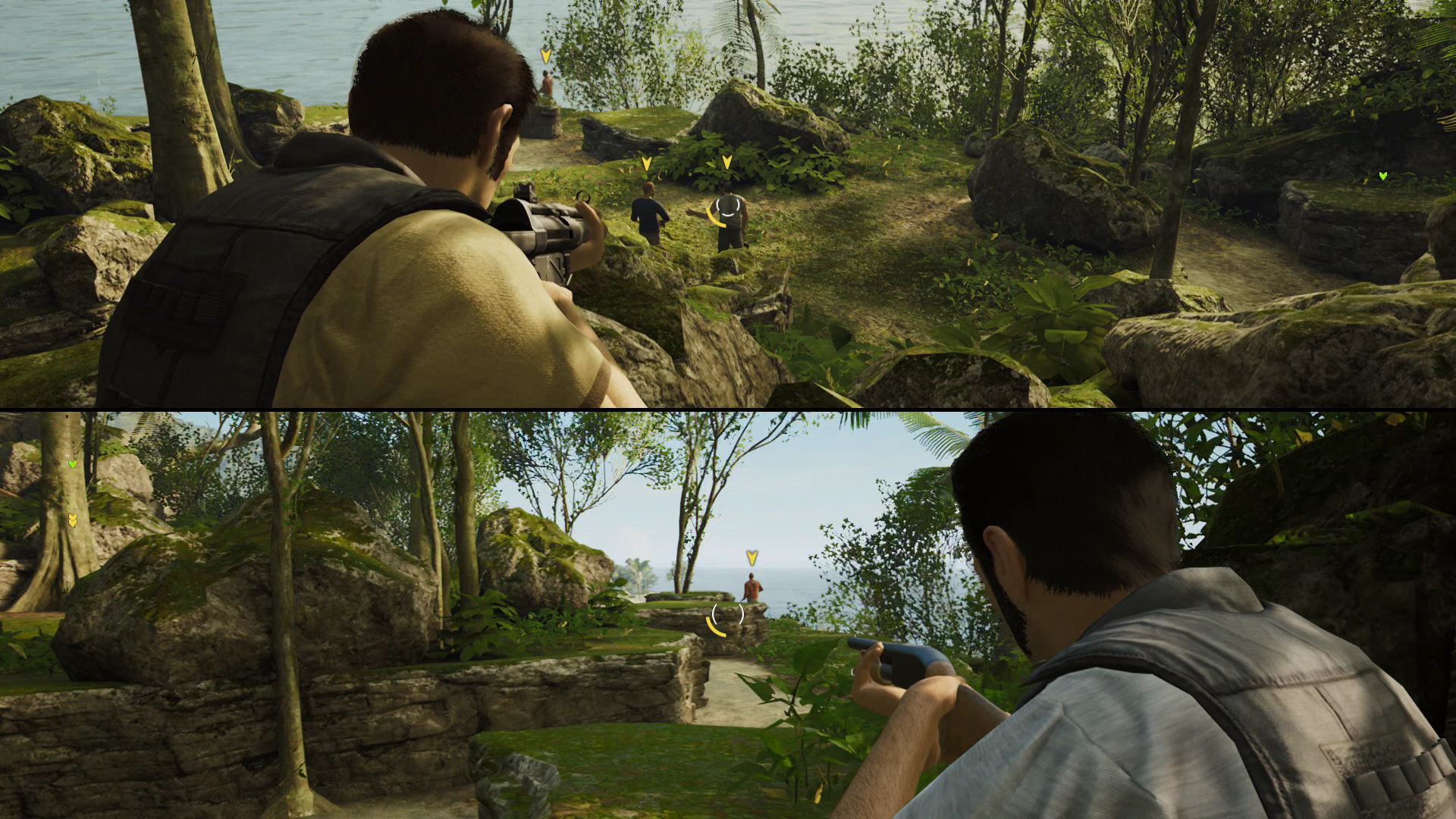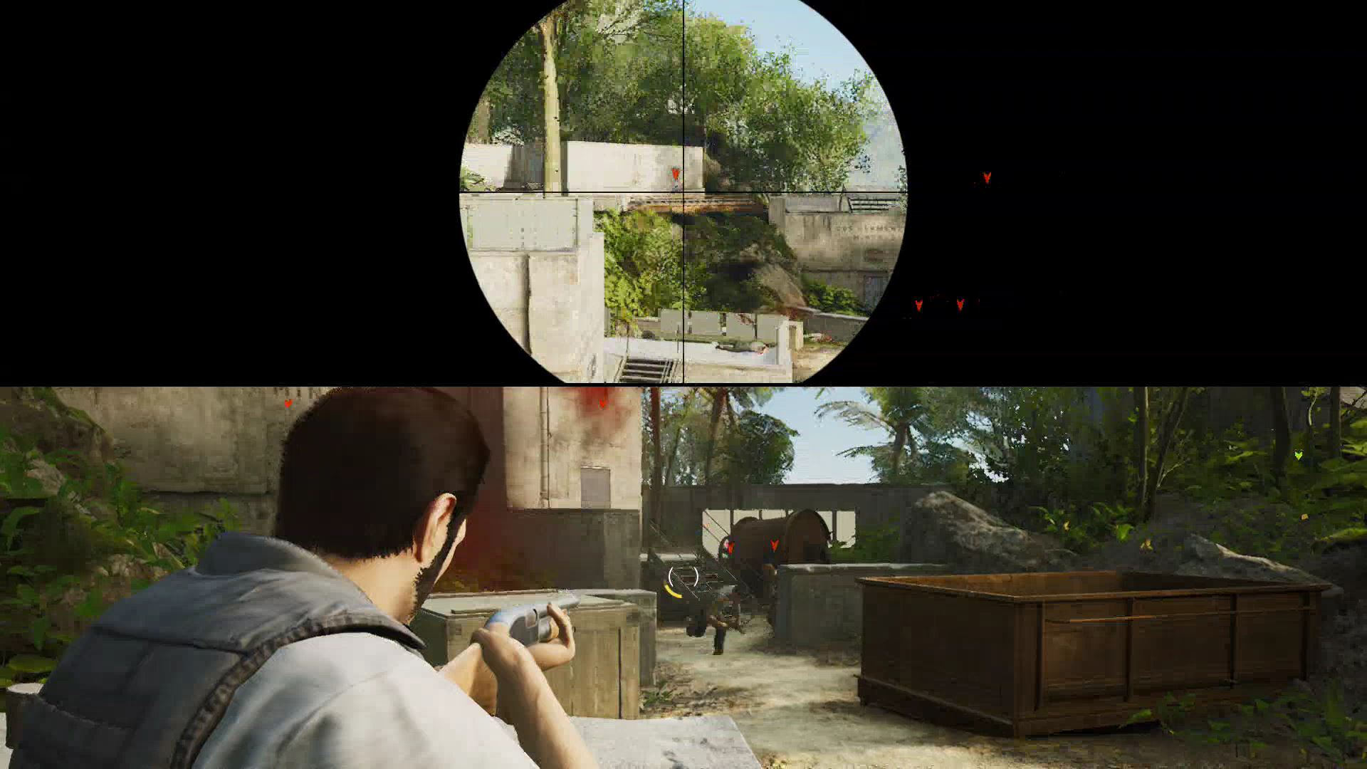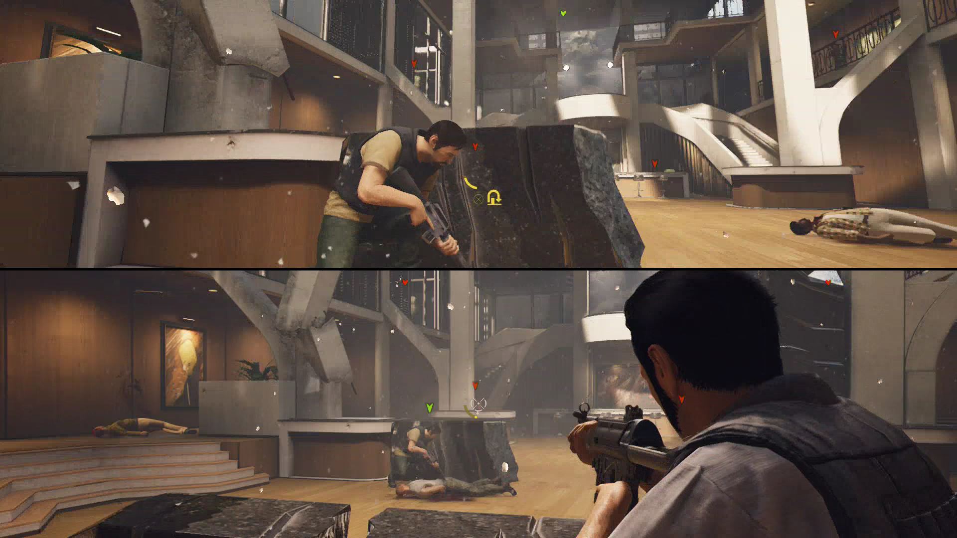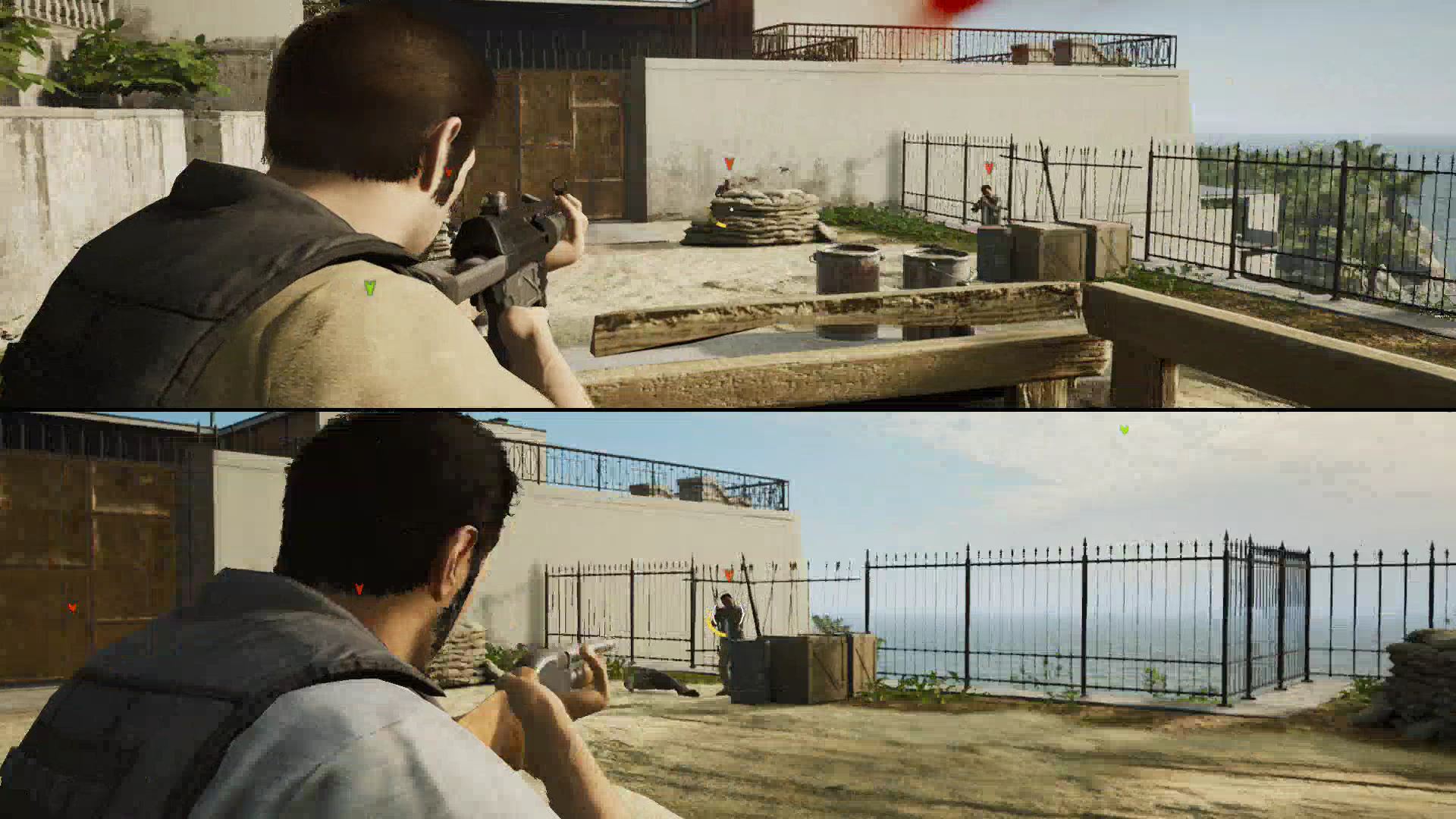- Here, use the rifle to shoot incoming goons and help your friend down below. Zoom in for easier accurate shots with [L2 / LT].