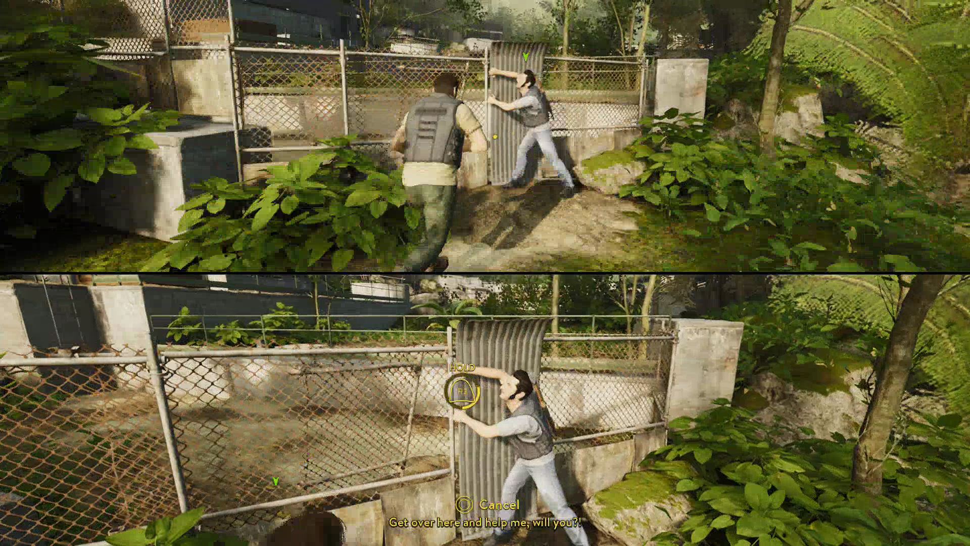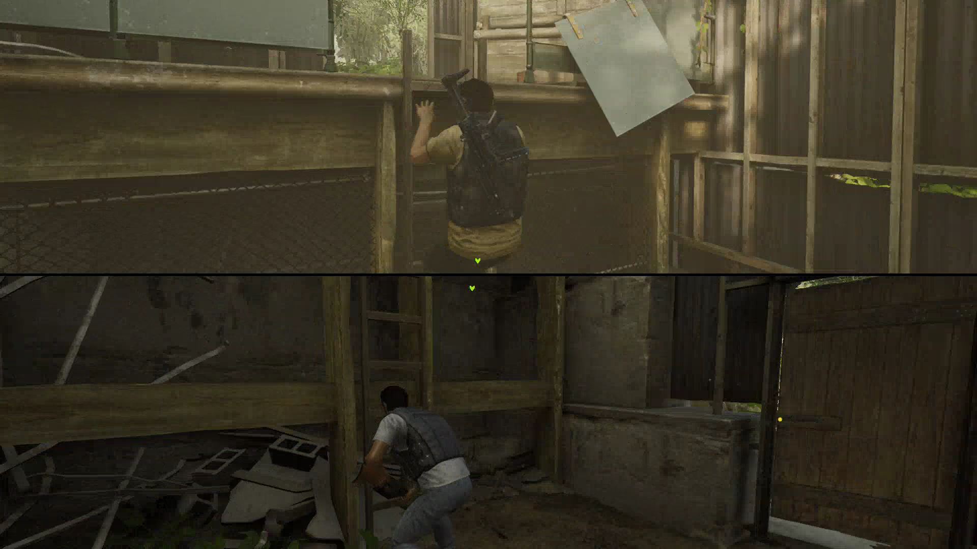 - Eventually, you’ll clear the area and join back up at a garage door. Work together to lift it, then drop down from the broken bridge.