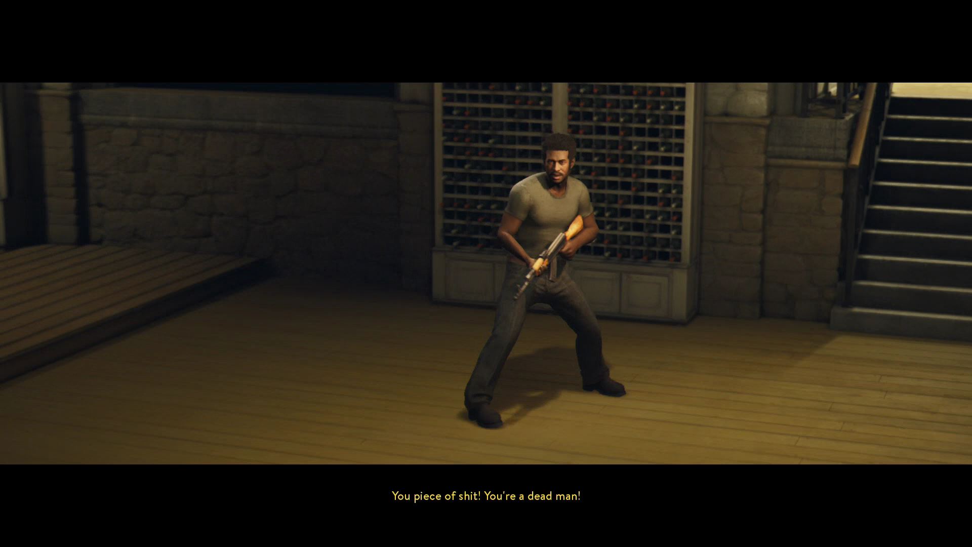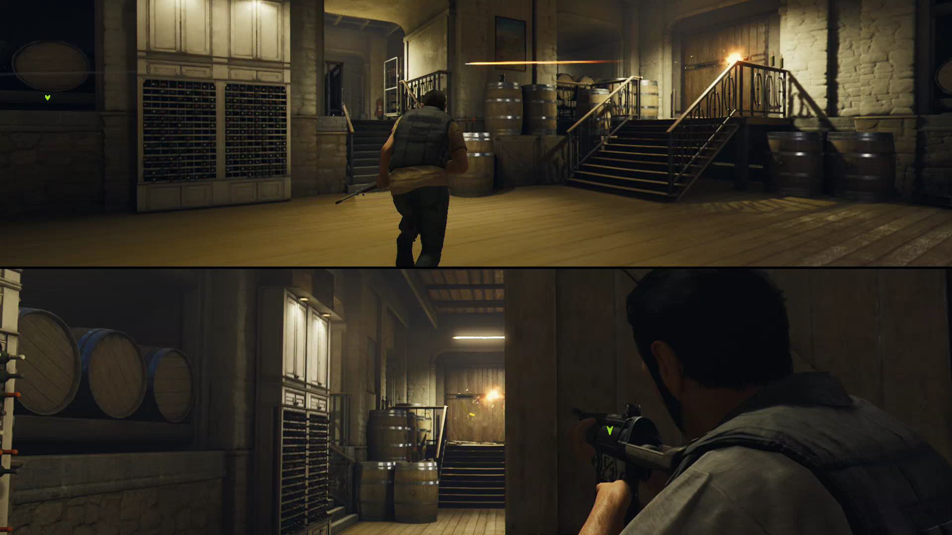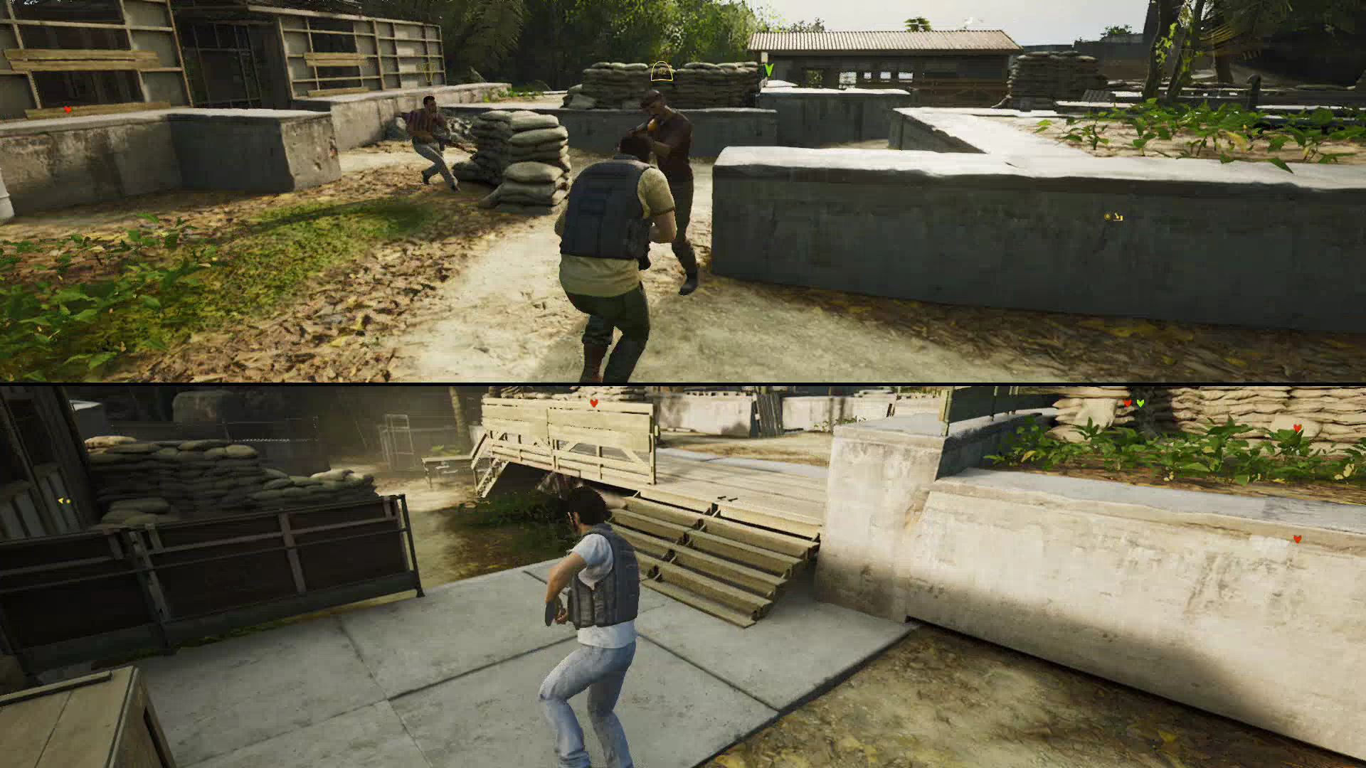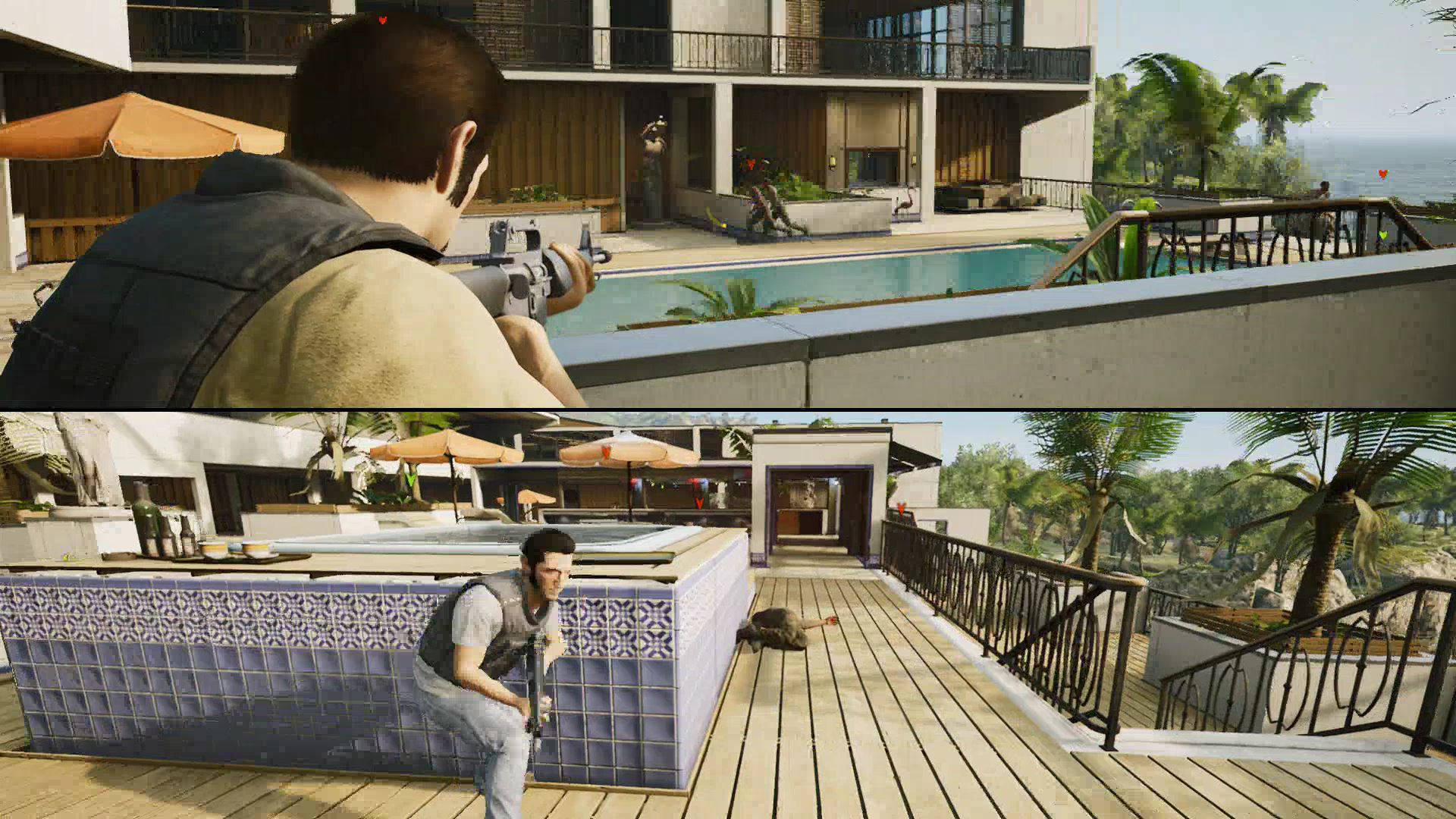 - Outside Harvey’s compound, Leo and Vincent will encounter a group of armed goons. Flank around to the right side and start shooting — you’ll be able to catch the goons in crossfire.