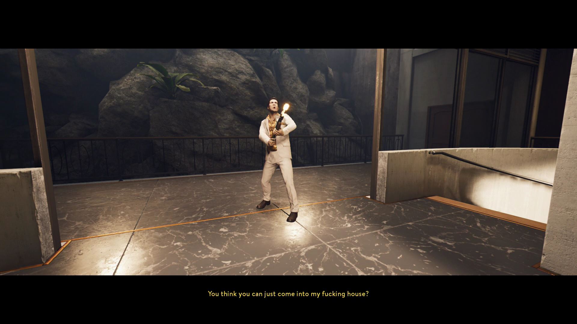 - Fight through the bar area, and past the pool to enter the main area of the mansion.