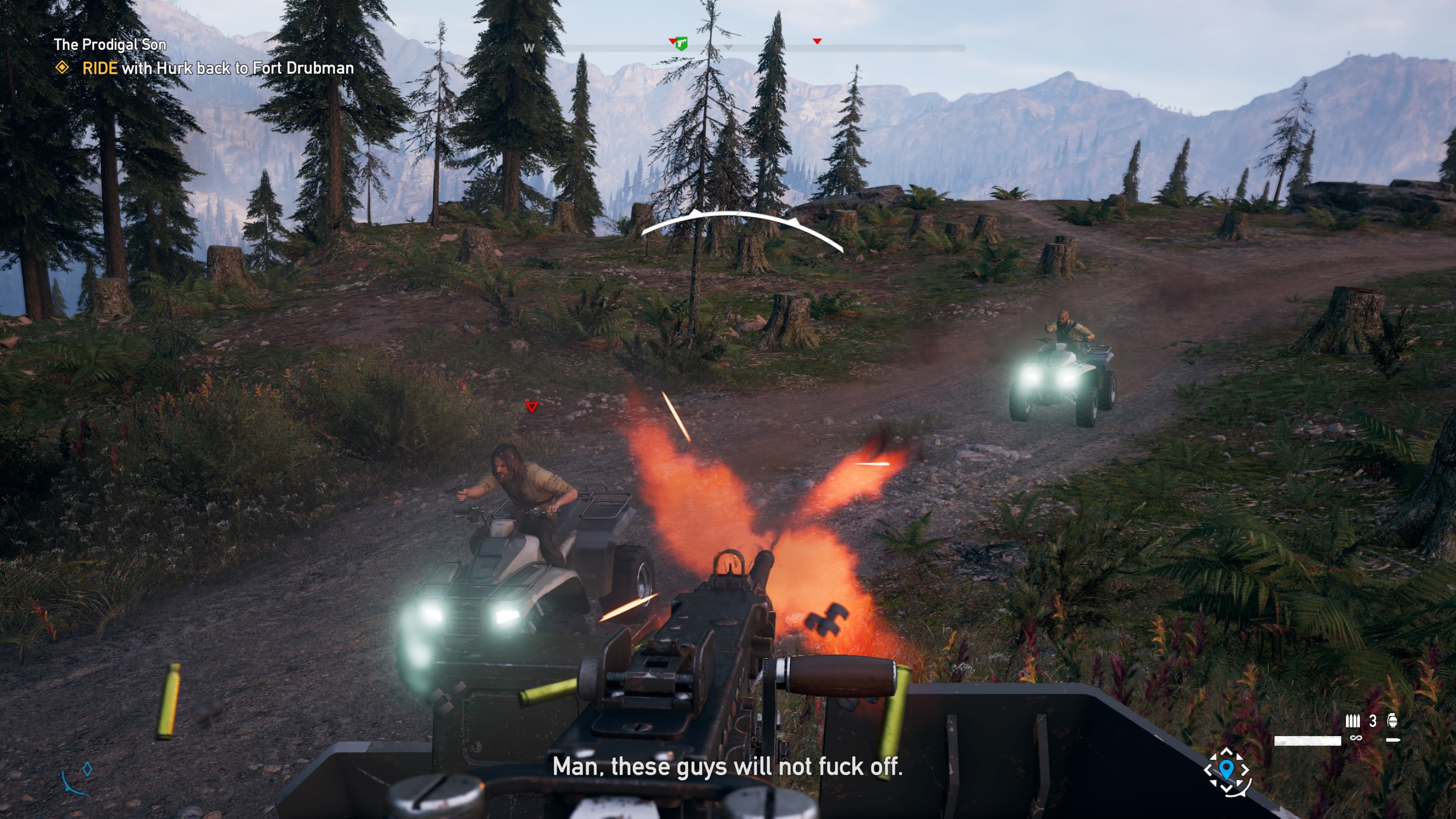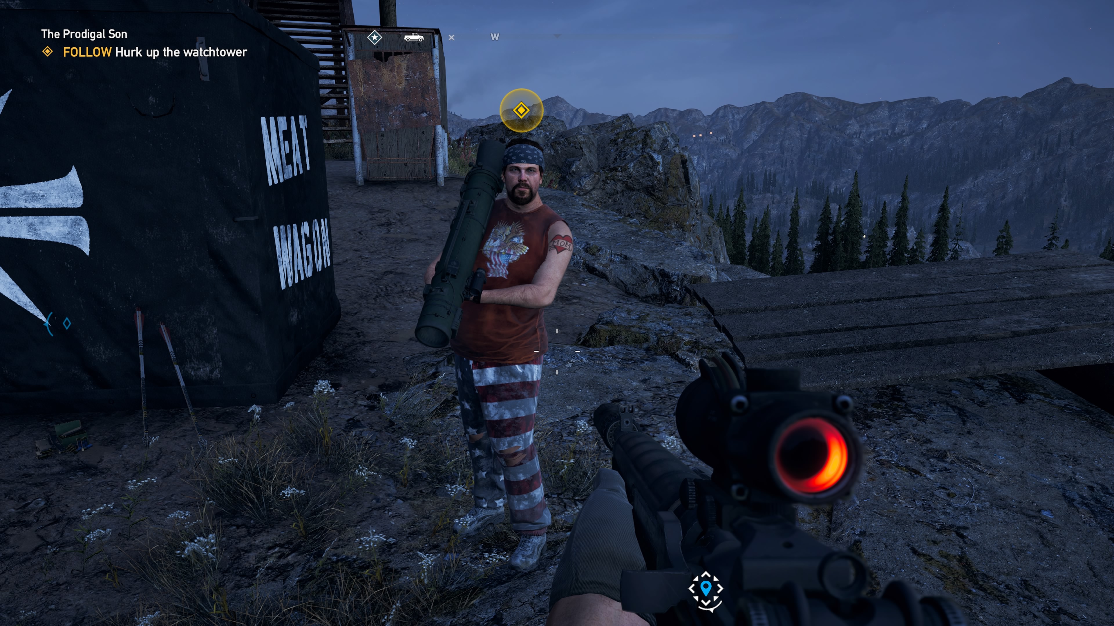 In Far Cry 5, you can unlock buddies (or “specialists”) that you can summon at any time to help you through some of the rougher missions. Each buddy has a special ability, making them more than just random soldiers. Each one is a character, and they’re all suited to different playstyles. You can summon Nick to help you fight airplanes, bring in Hurk to blast vehicles with his RPG, or stay silent with Boomer the dog, Peaches the mountain lion, or Jess Black the hunter.