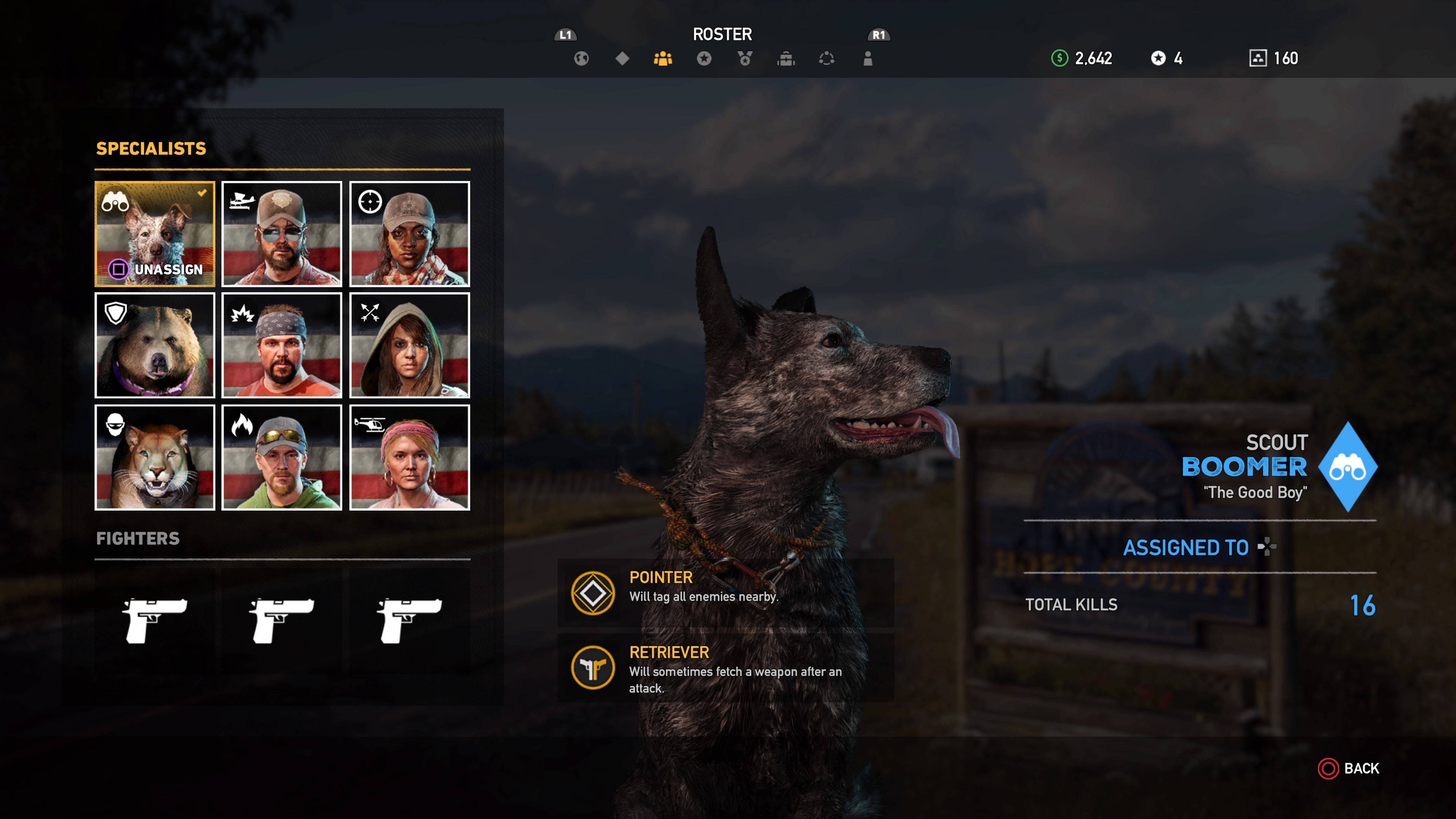 - Boomer: Scout dog that scavenges ammo and spots enemies.