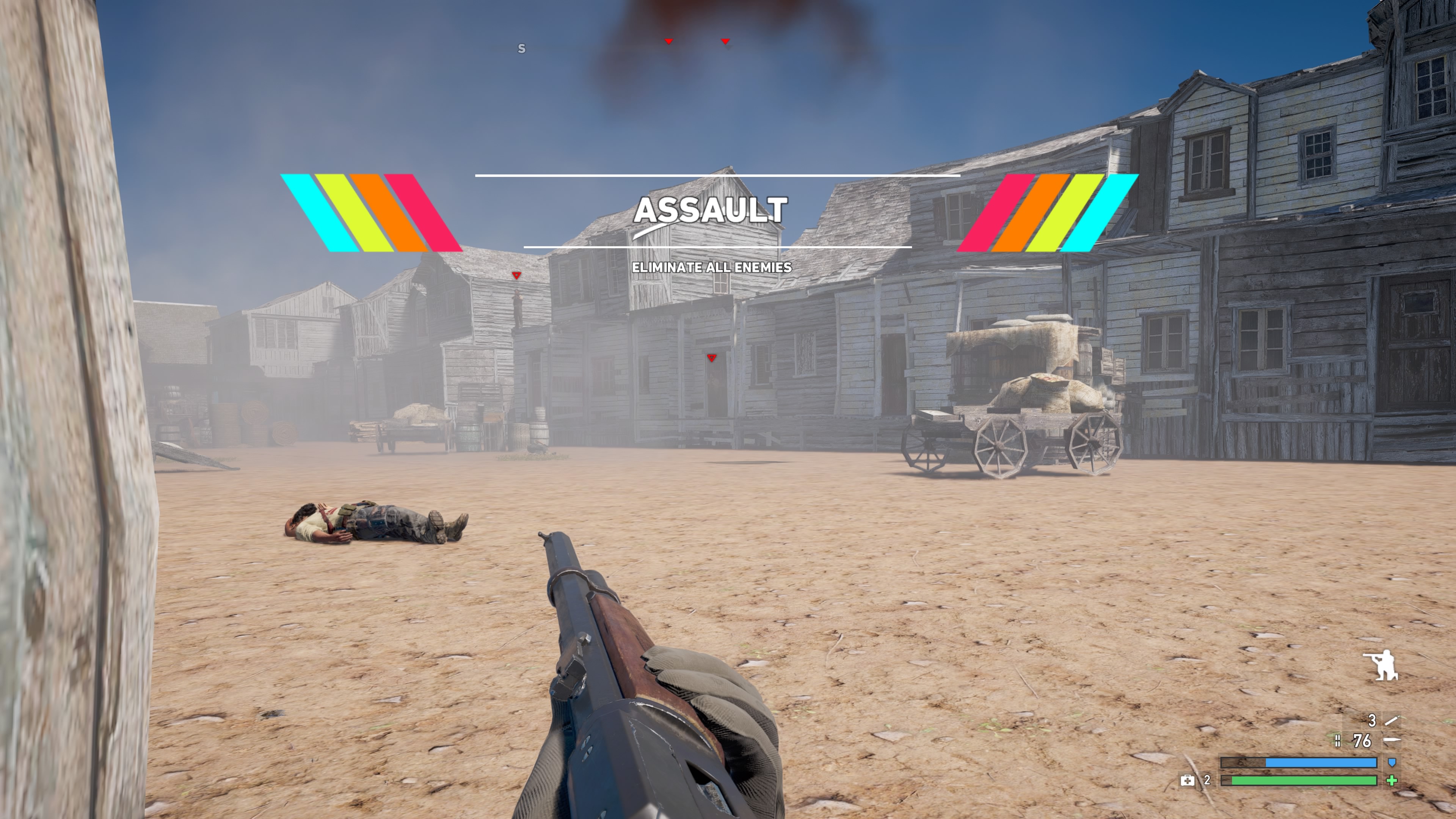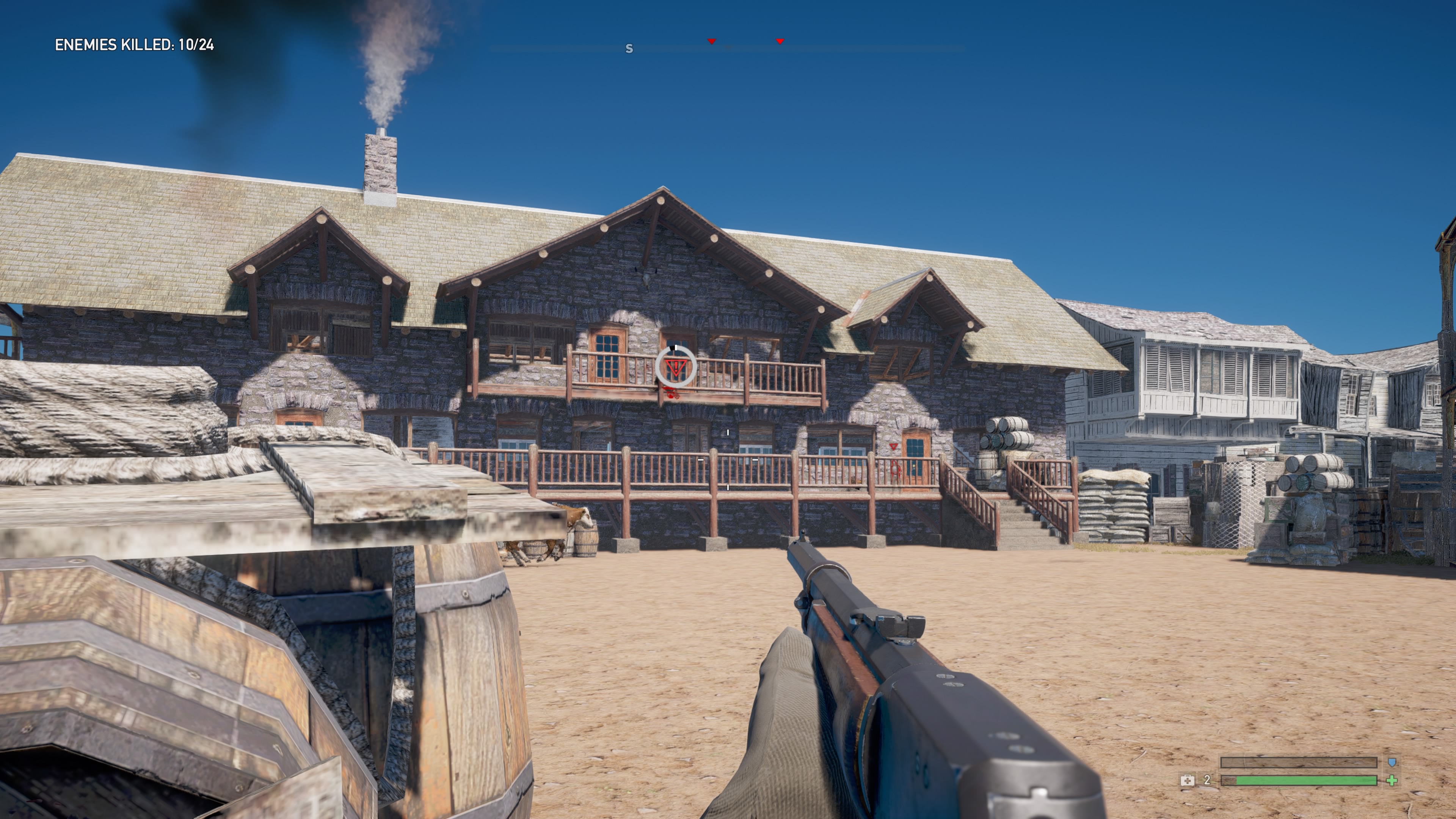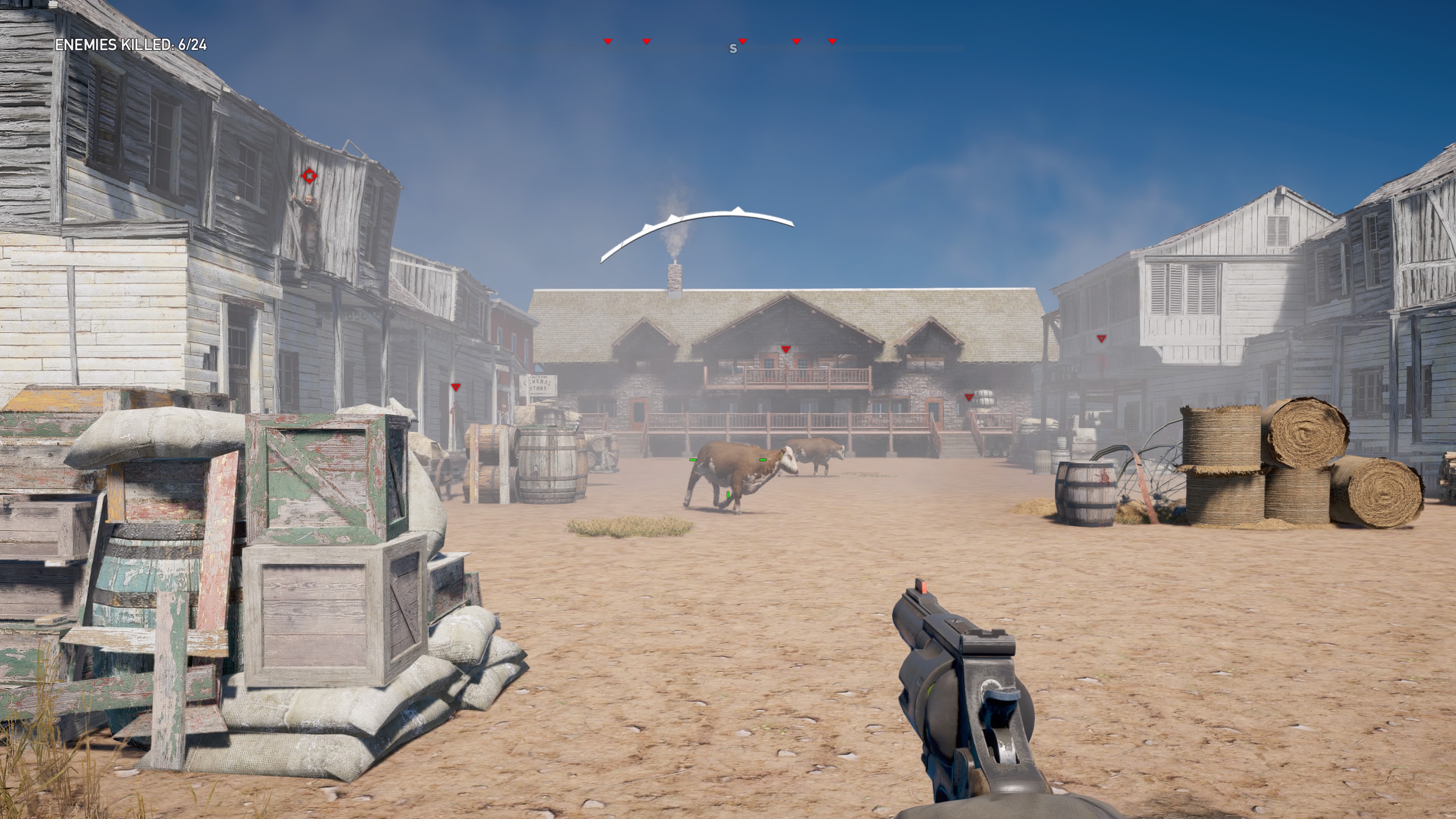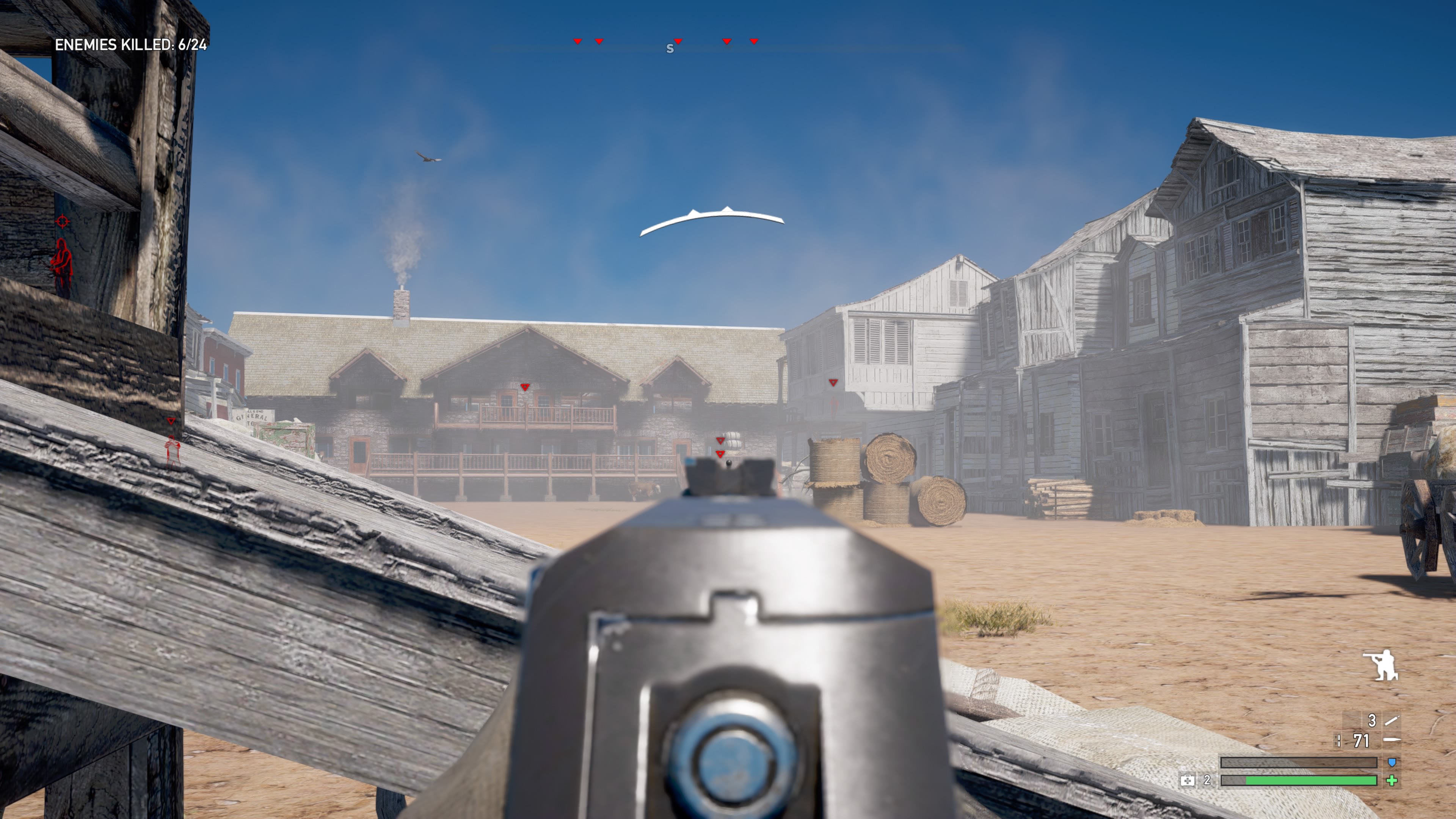 If you’re looking for straight-forward action with a little bit of challenge, this is great map to jump into. Set in an old wild western themed town, you’ll get to pick multiple loadouts with period-appropriate weaponry. It’s a shooting gallery in the best way. All you have to do is blast as many bad hombres as you can. The design of the map is basic — and I mean very basic — but it has just enough detail to remain convincing. This one’s all about the fun design, as more and more gunmen appear down the street, along with a small herd of cattle.