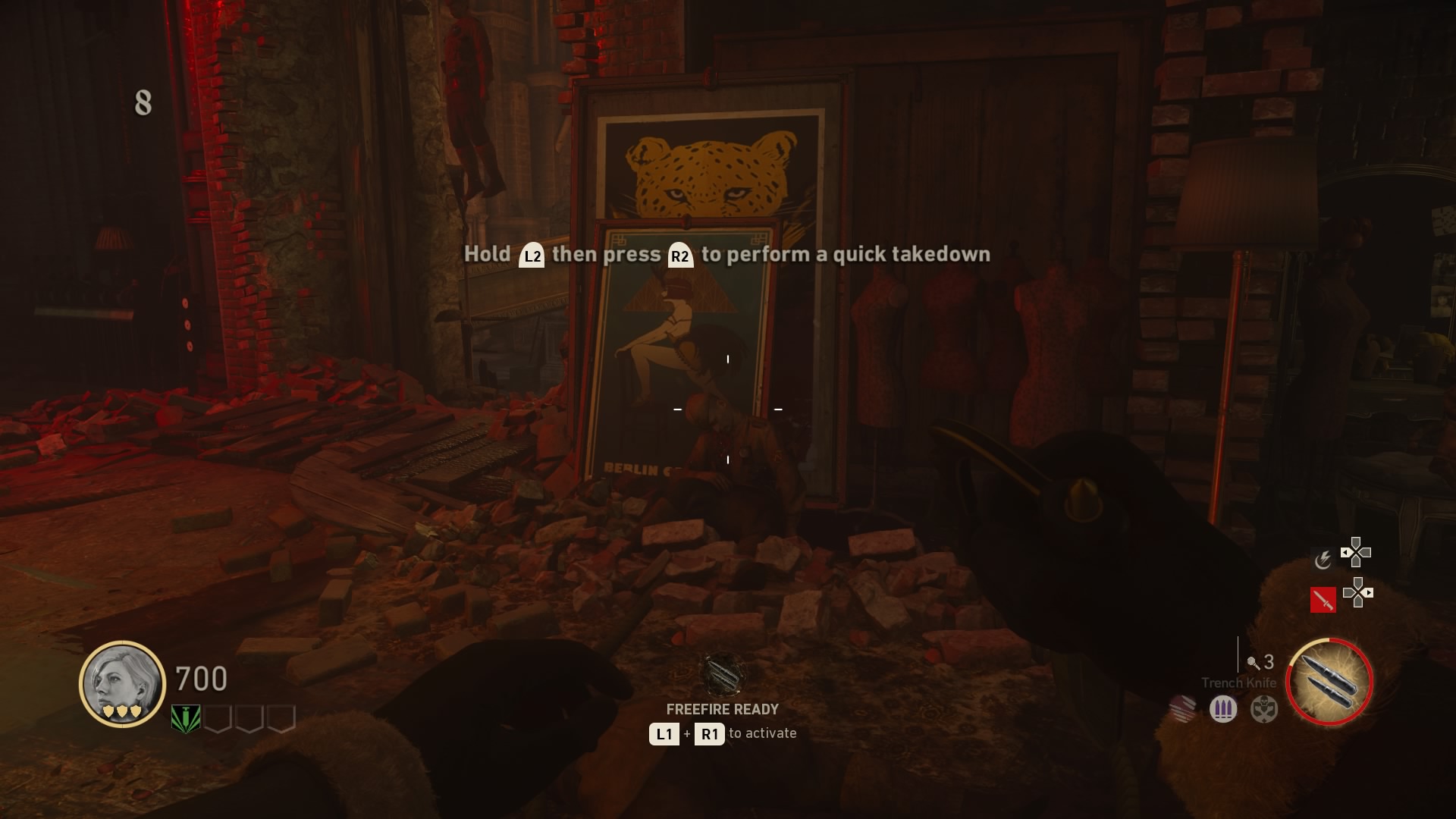 - The Trench Knife is near the backstage door of the cabaret. Hold [L2 / LT] and strike with [R2 / RT] for an instakill stab that will also harvest.