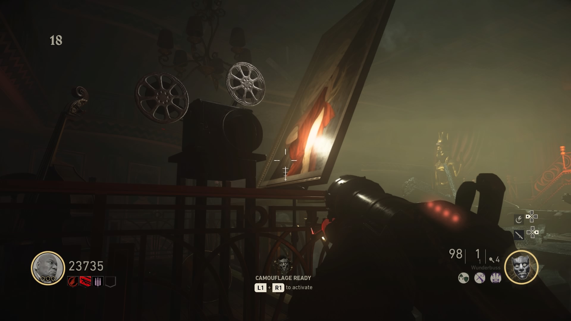 - Last, shoot the projector with the Wunderbuss to activate it. The stage will now display a map with a green marker. You’ll have to find four green marker locations, and count the amount of zombies the clown doll at each location will absorb — after completing one green marker, return to the map to get another. There will be four in total.