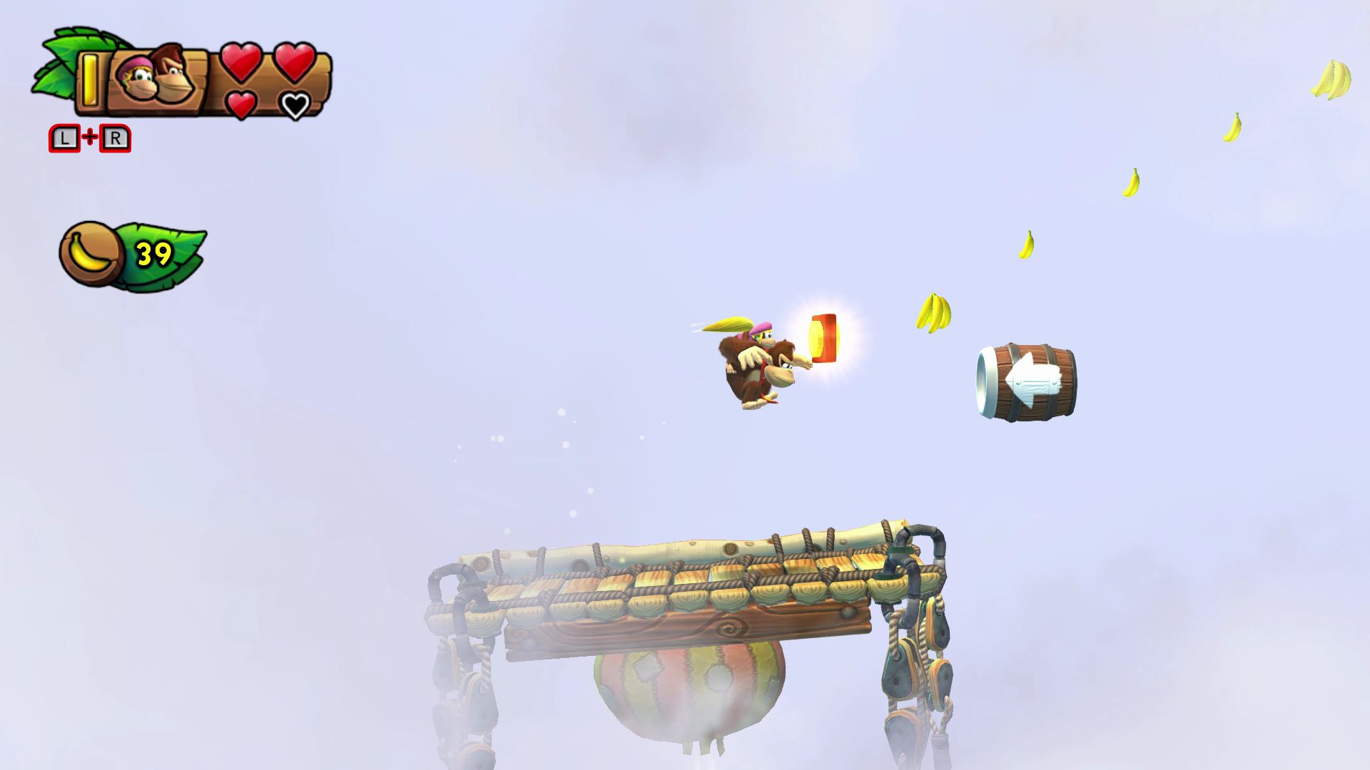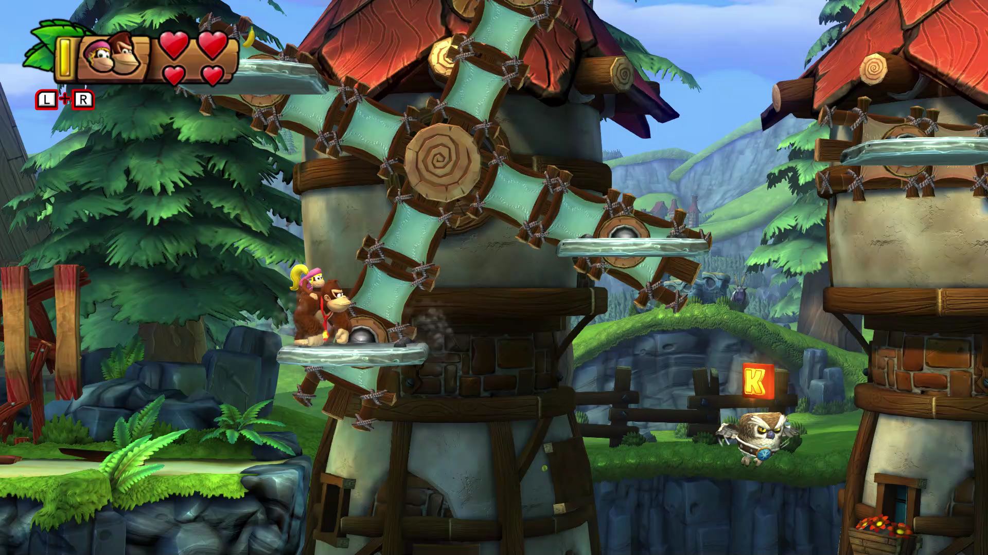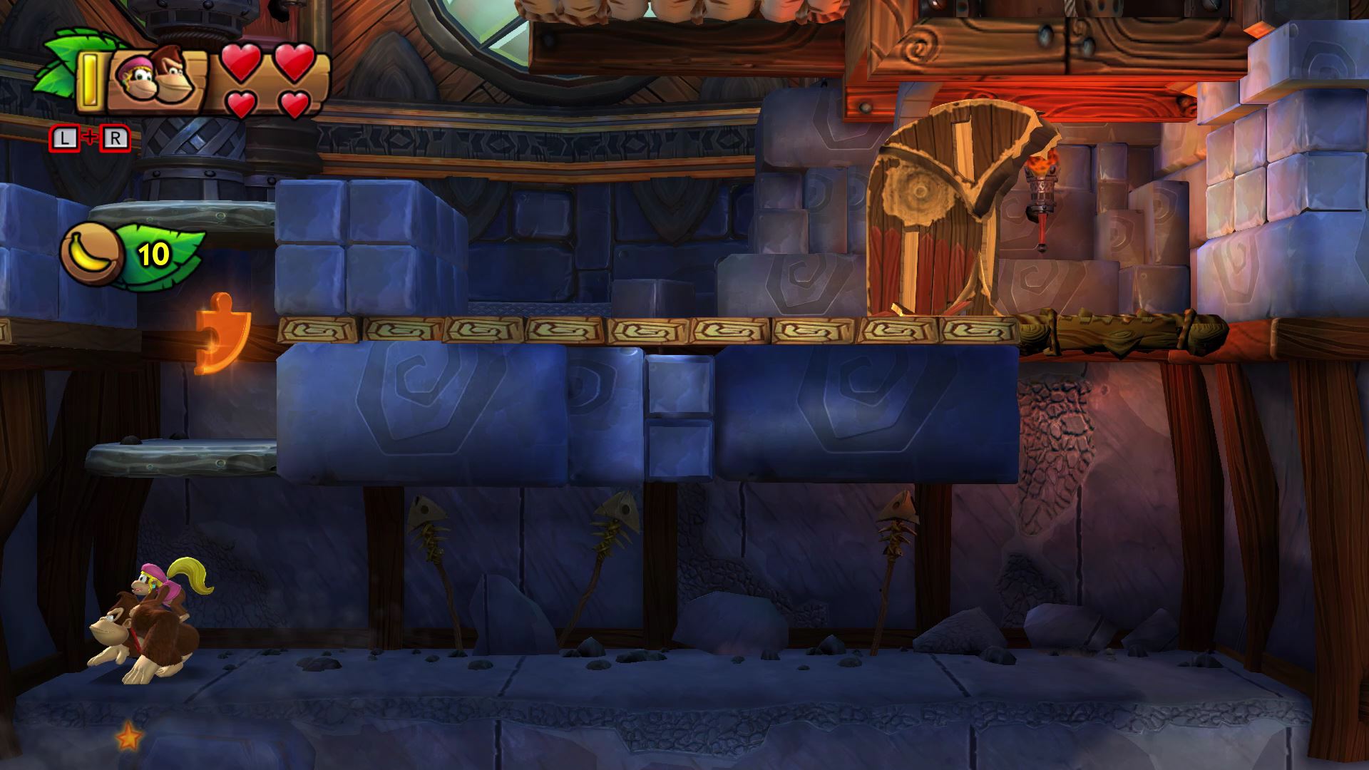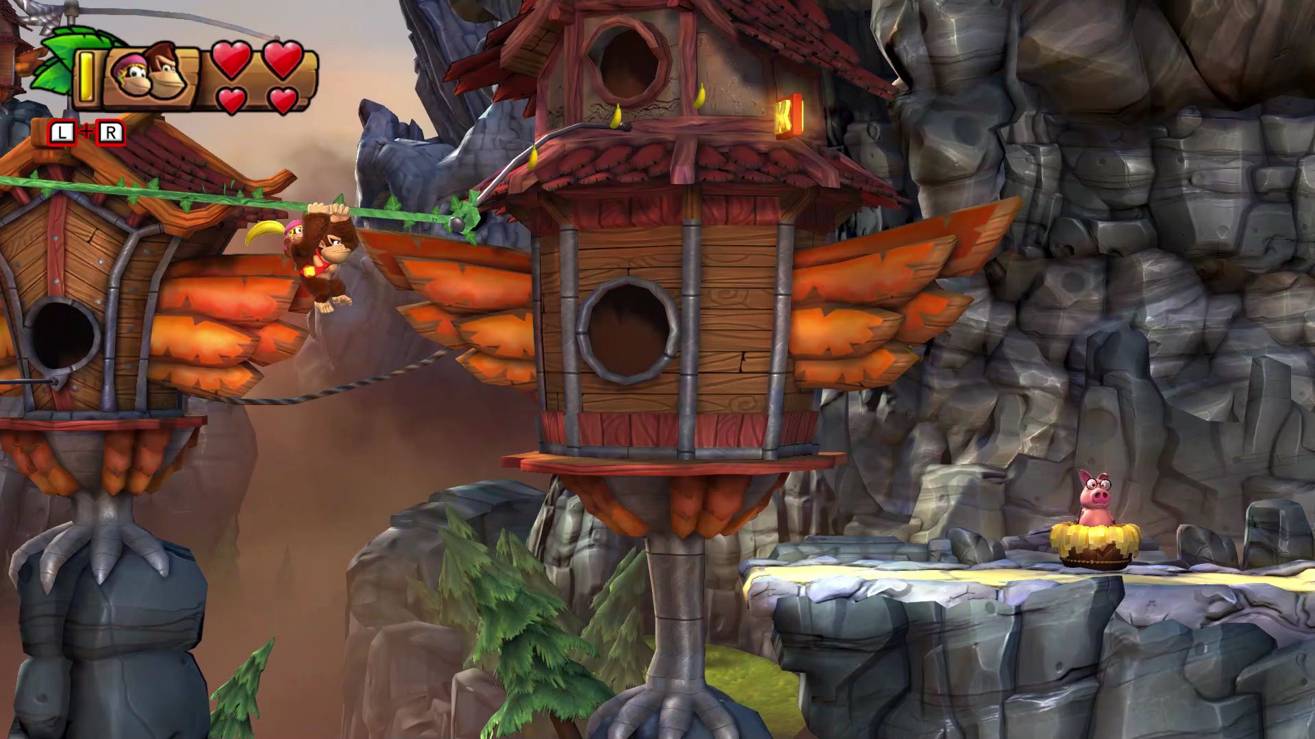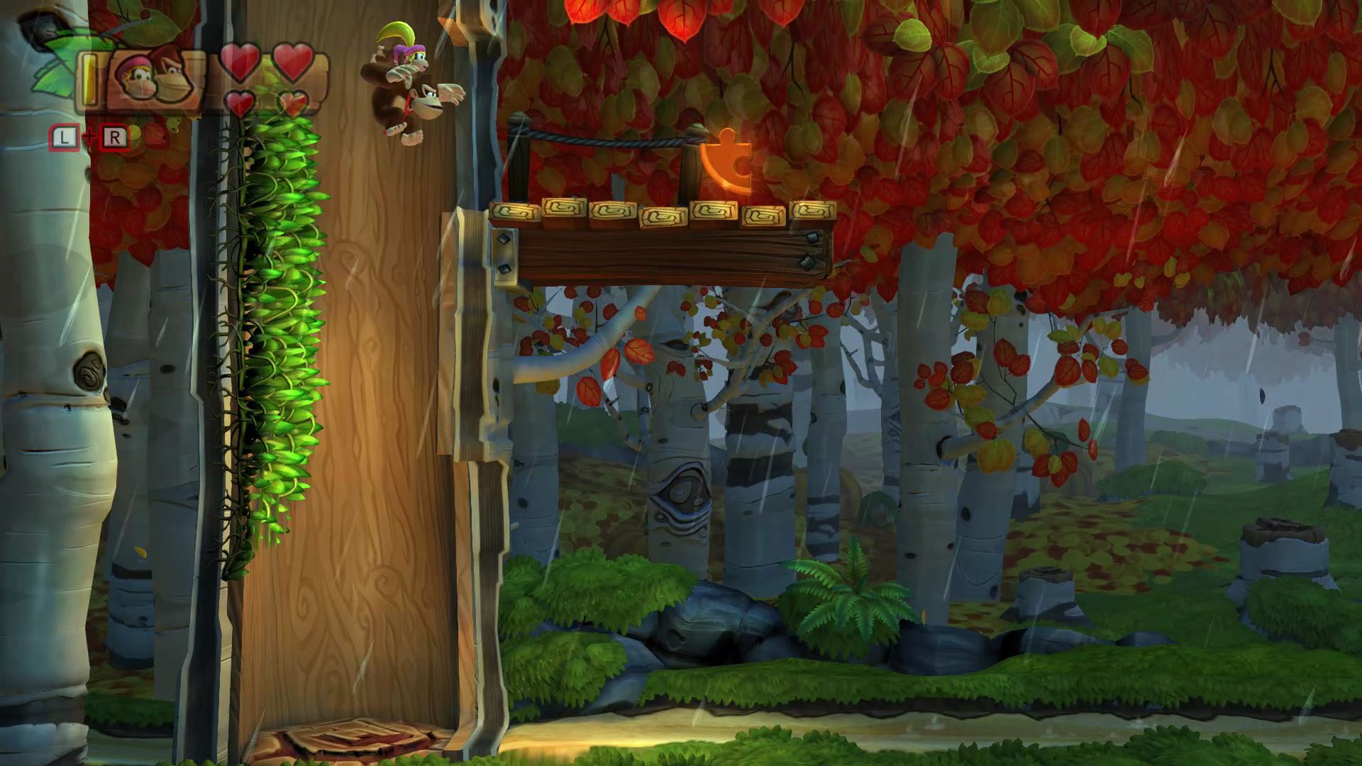 - Puzzle Piece #3: You absolutely need Dixie ahead. After launching and bopping off bird heads, you’ll land on a pillar with a hanging platform to the right. The puzzle piece is directly beneath the platform. Jump under it and use Dixie to reach the safe platform.