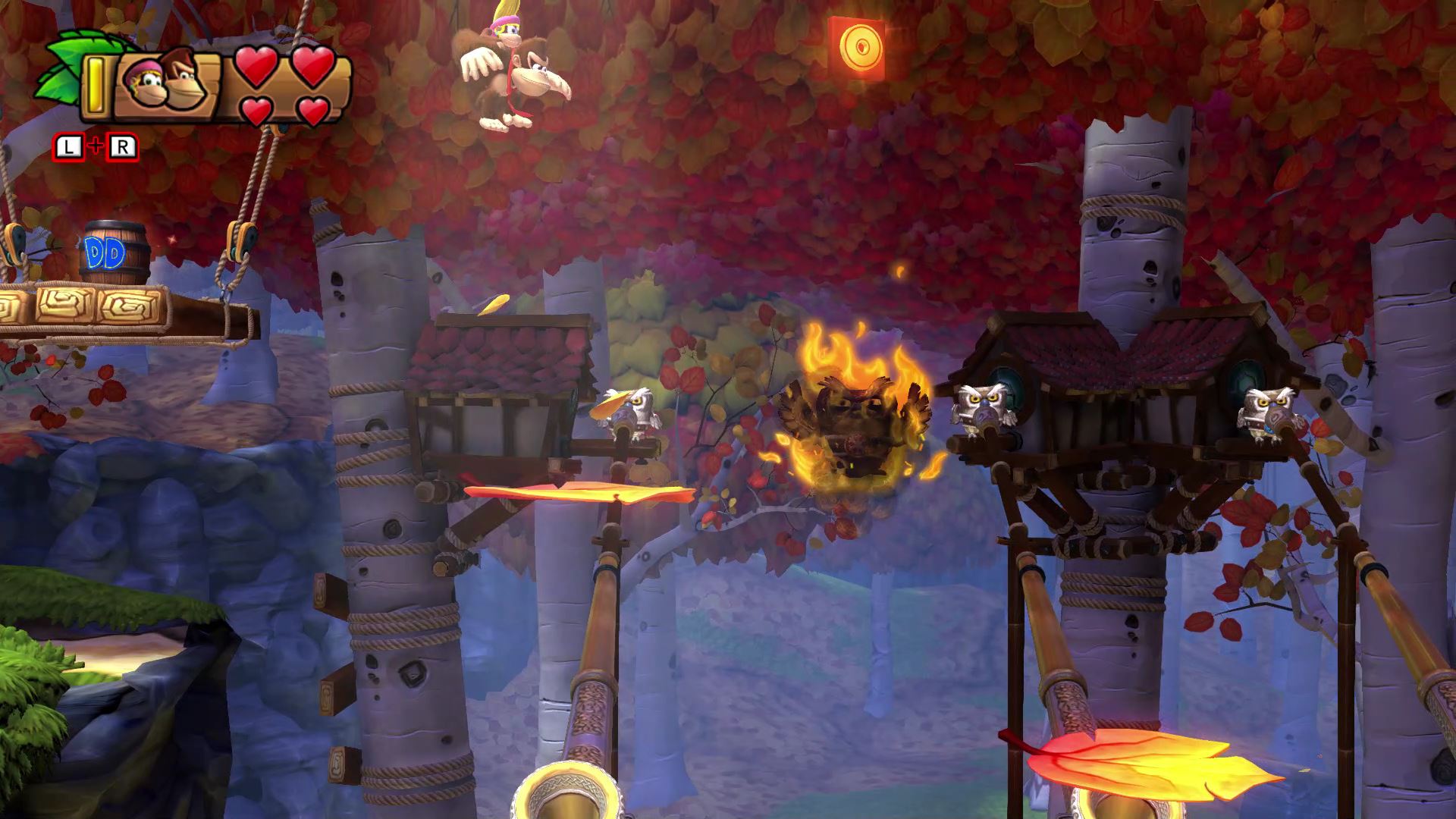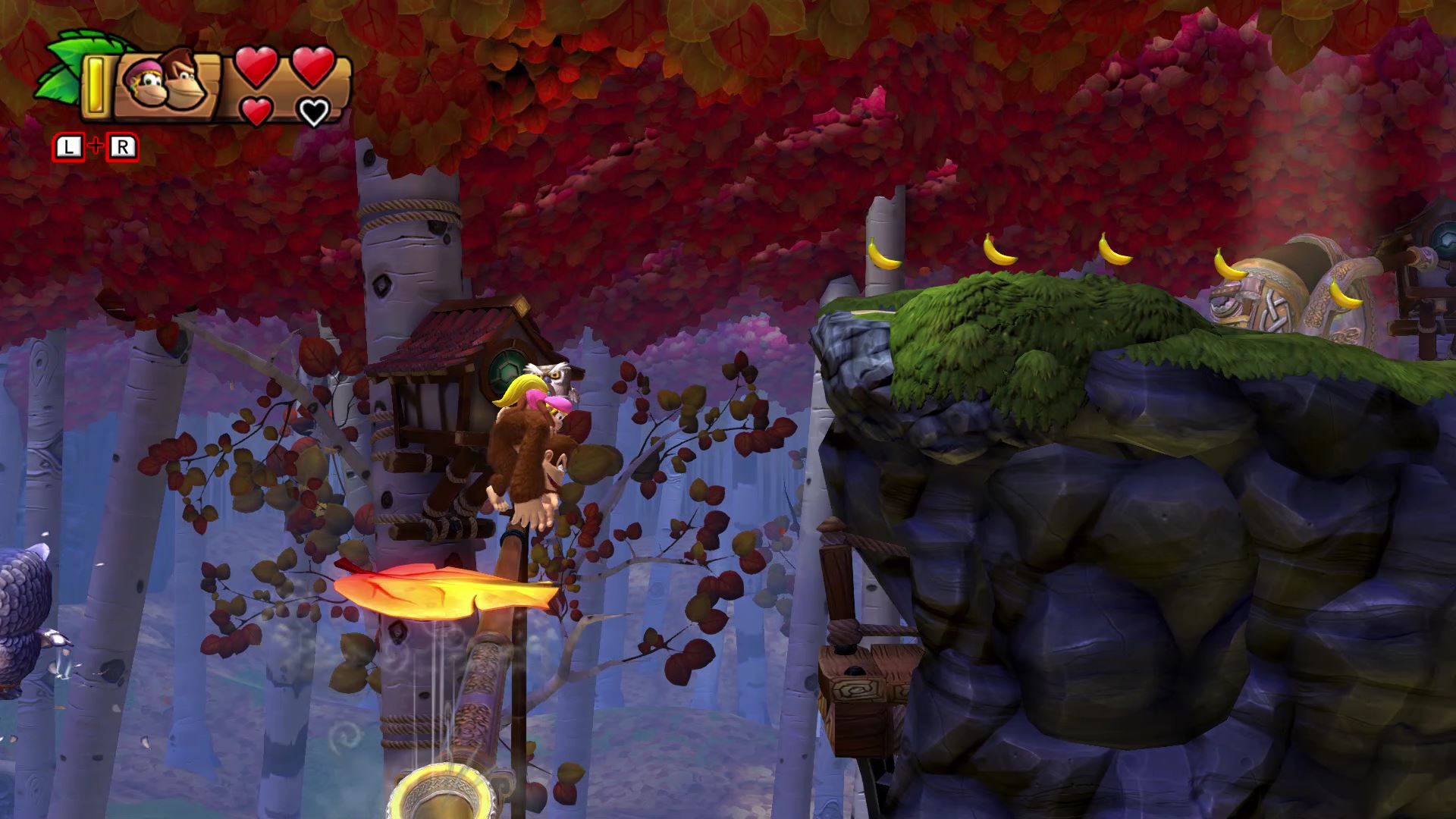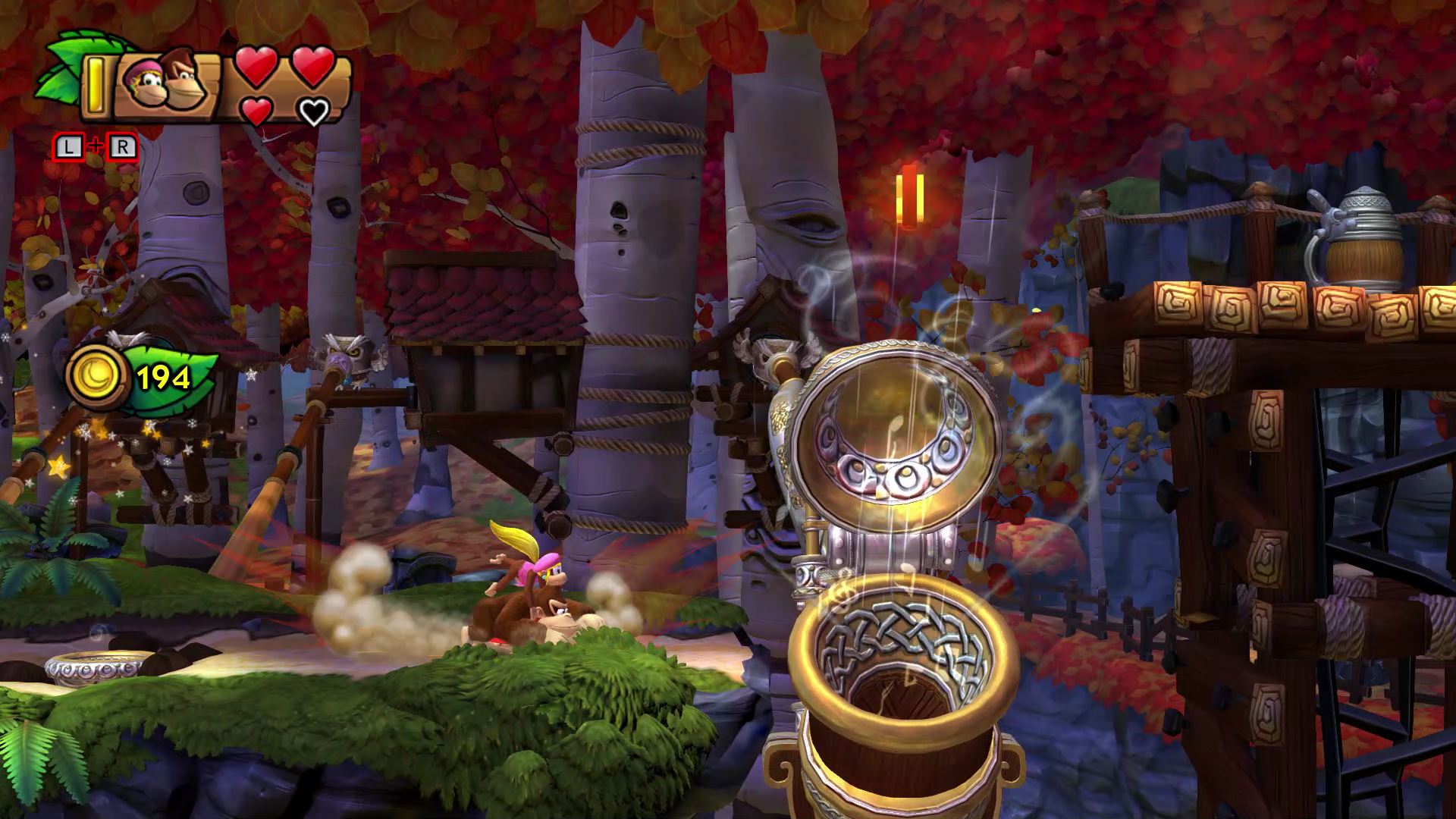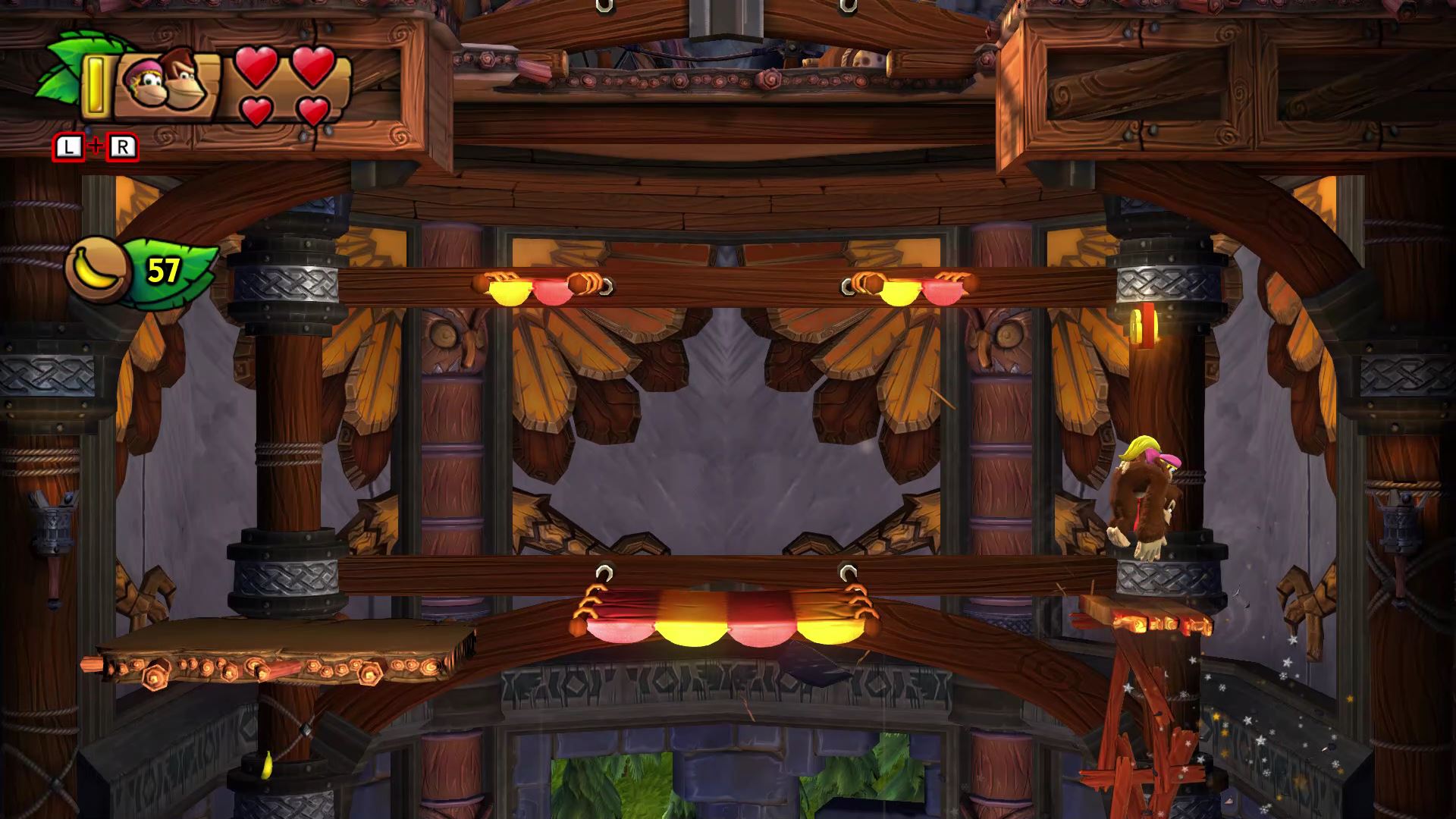 - Puzzle Piece #3: You absolutely need Dixie ahead. After launching and bopping off bird heads, you’ll land on a pillar with a hanging platform to the right. The puzzle piece is directly beneath the platform. Jump under it and use Dixie to reach the safe platform.