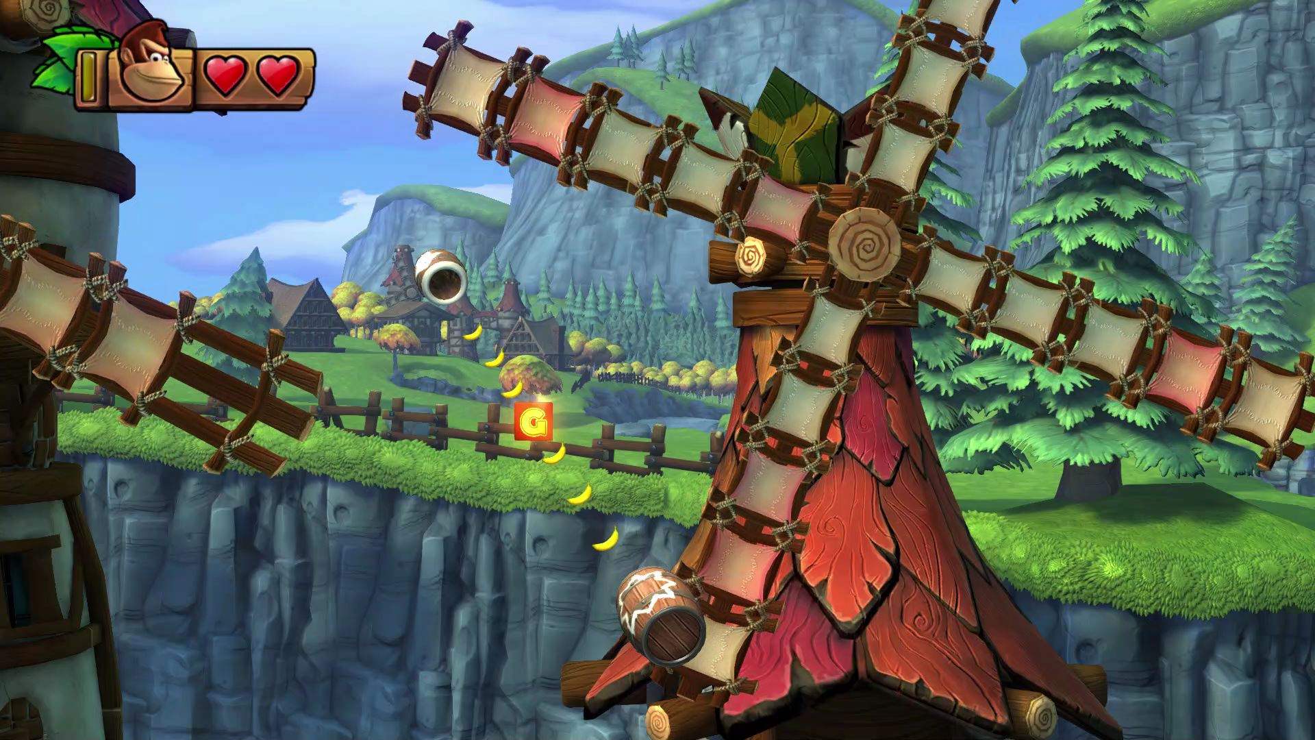 - G Letter: It’s found at the end of the stage, when you’re being launched from a series of cannon barrels. Quickly launch yourself before the windmill wipes the G Letter away. Move fast!