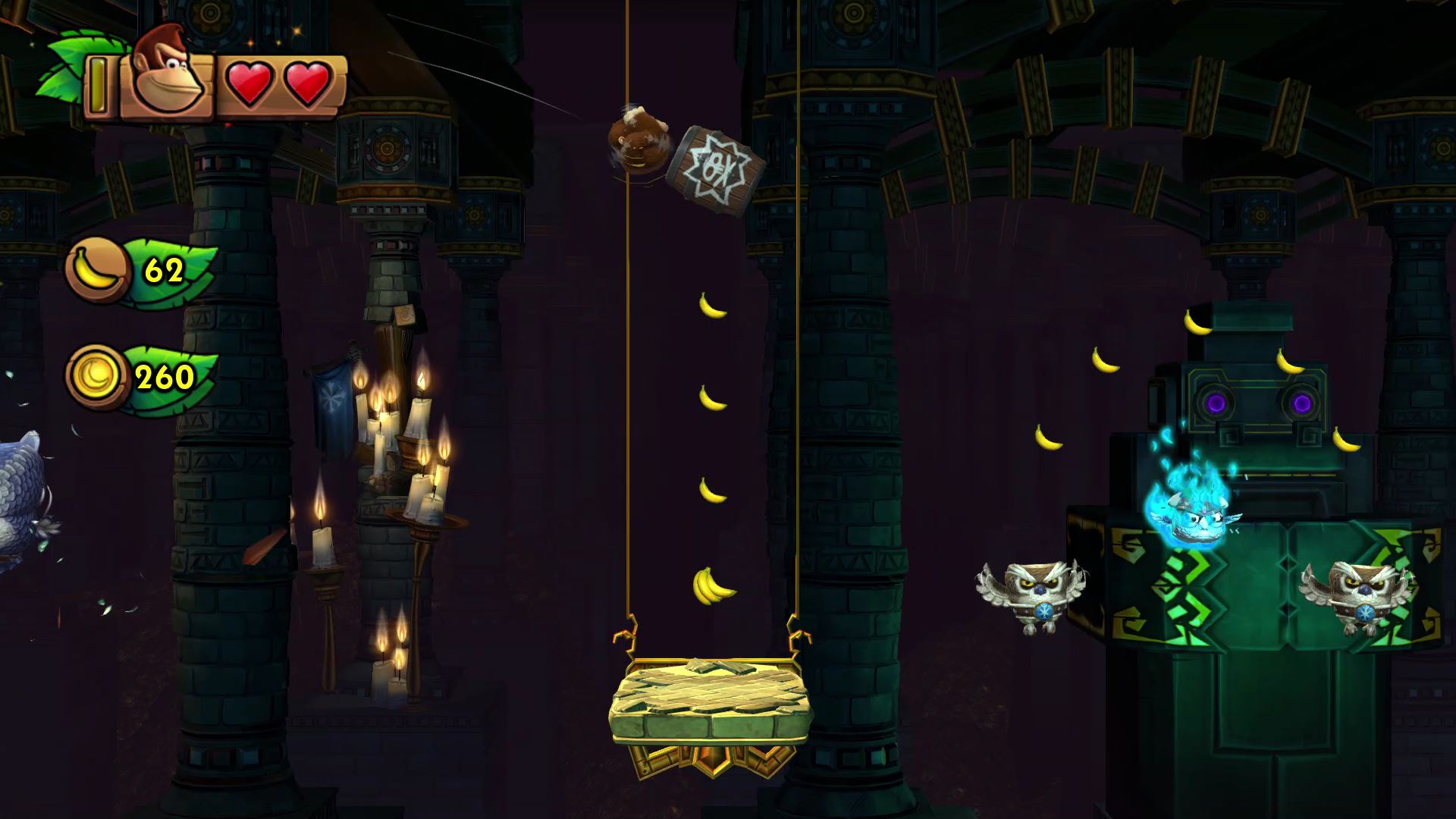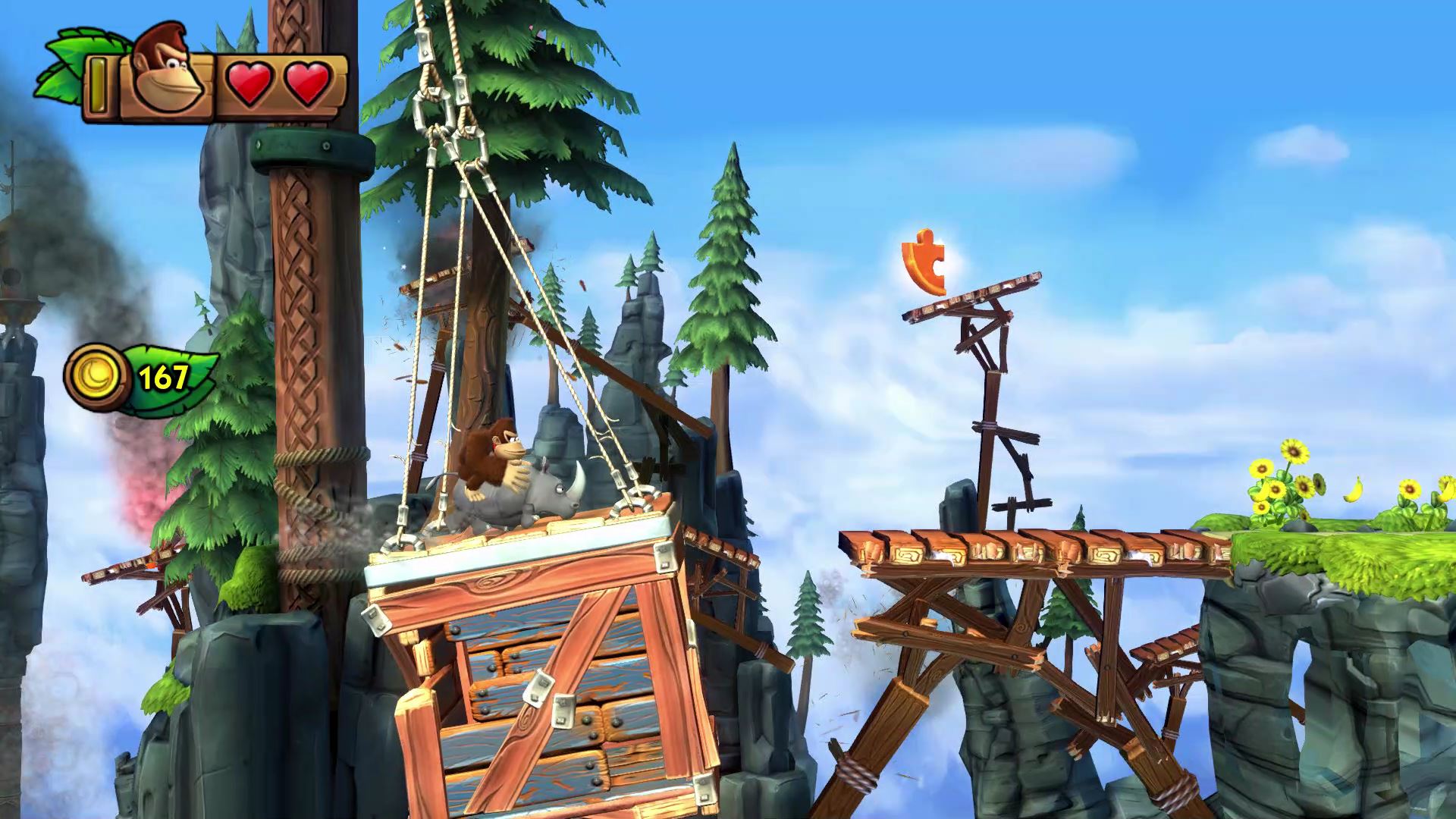 - K Letter: At the zip-line sequence, you’ll ring a bell near the end and summon bananas that point you to the lower zip-line near the end. Ignore them! Stay up high to zip straight to the K.