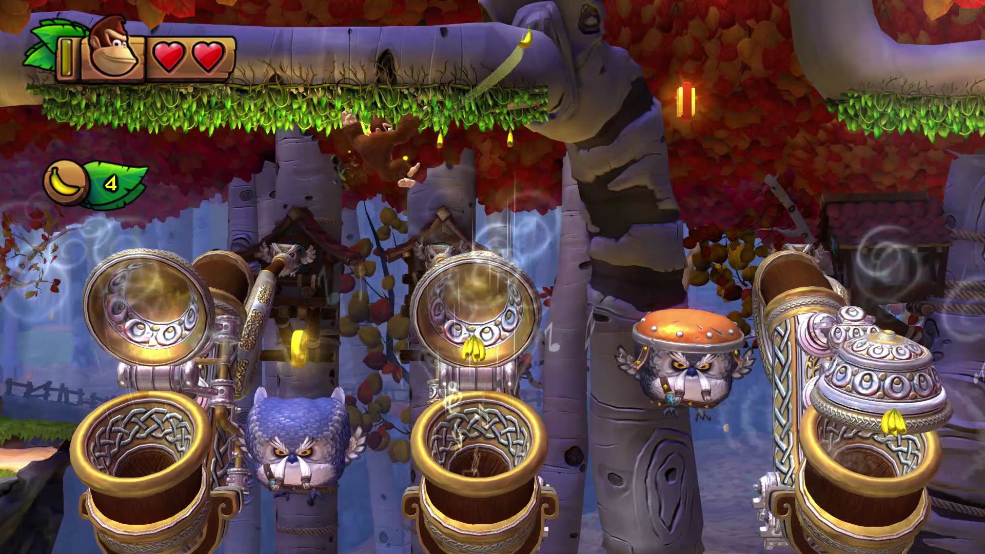 The collectible hunt continues as we enter World 2 of Donkey Kong Country: Tropical Freeze. Autumn Heights is a charmed mountainous island filled with fall delights like piles of dead leaves, snowy peaks, and charming villages full of angry little penguins. Once again, we’re delving into all the treasure locations — KONG coins, puzzle pieces, and secret exits leading to bonus levels.