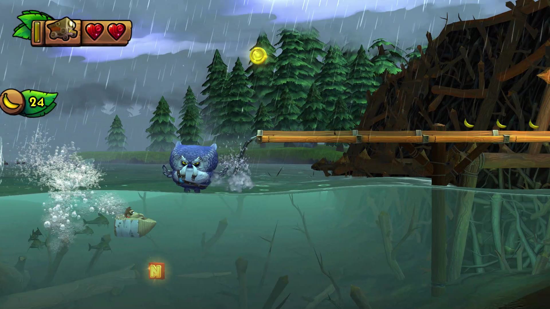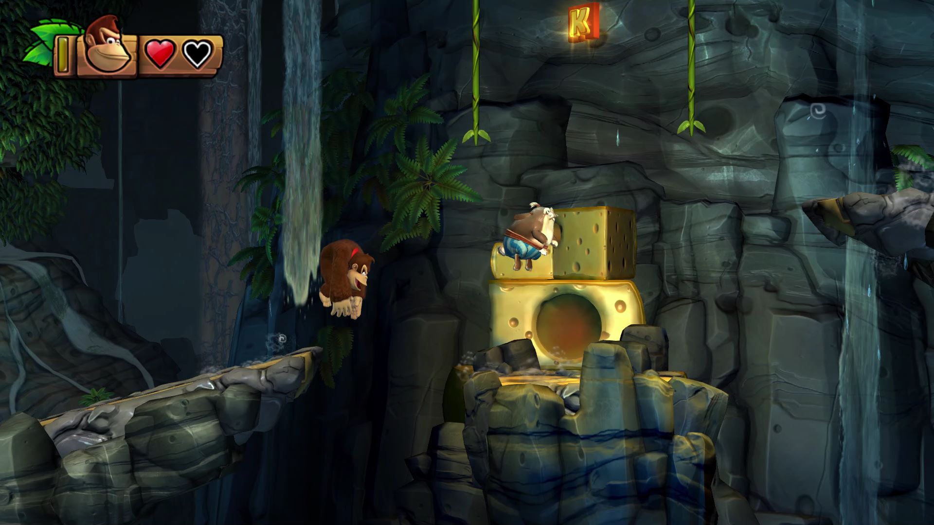 - G Letter: While riding the barrel cannon up the large rocky pillar, spinning around, you’ll see a bunch of bananas appear. The G is in the center. Launch at just the right time to get it!